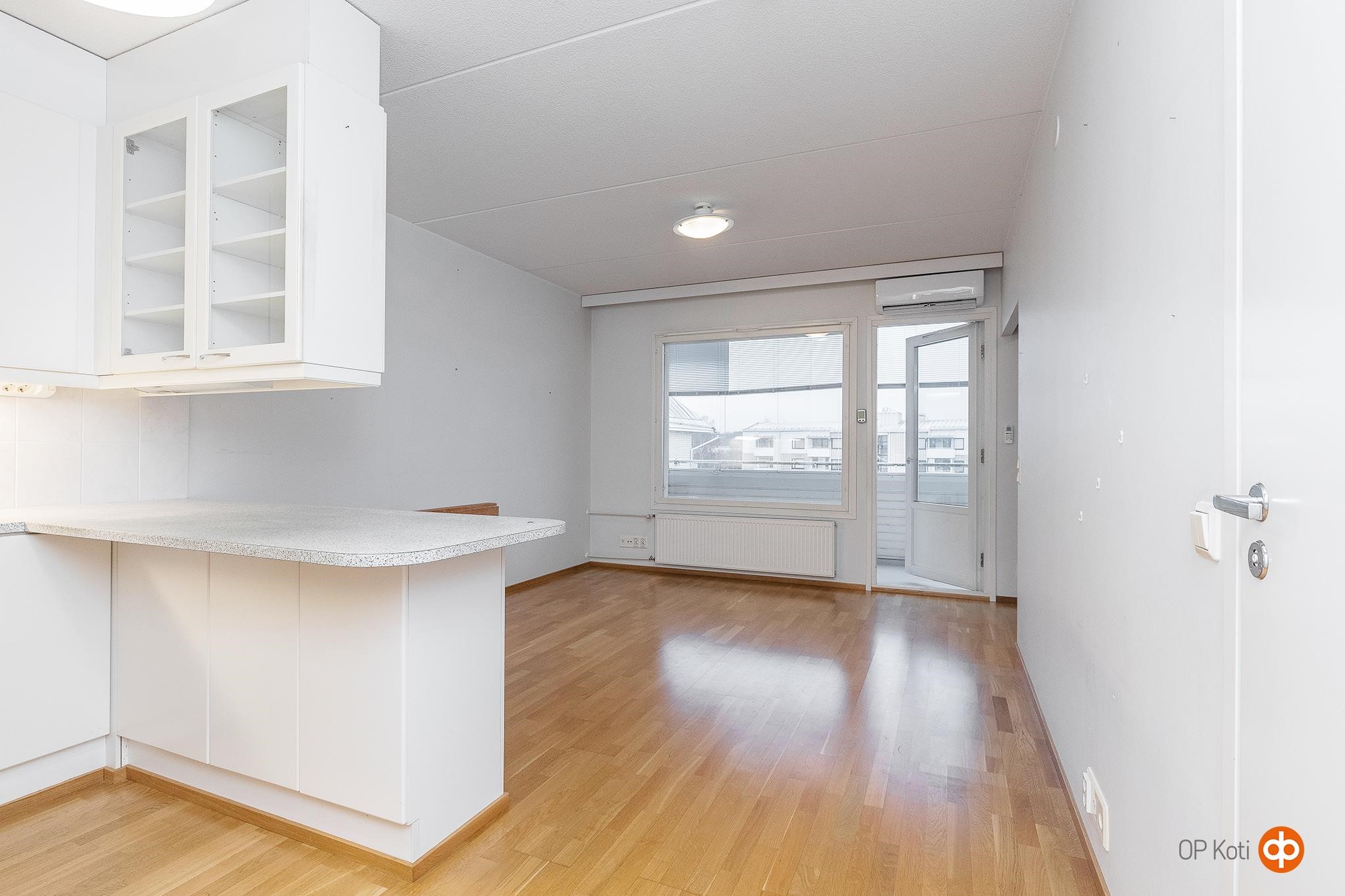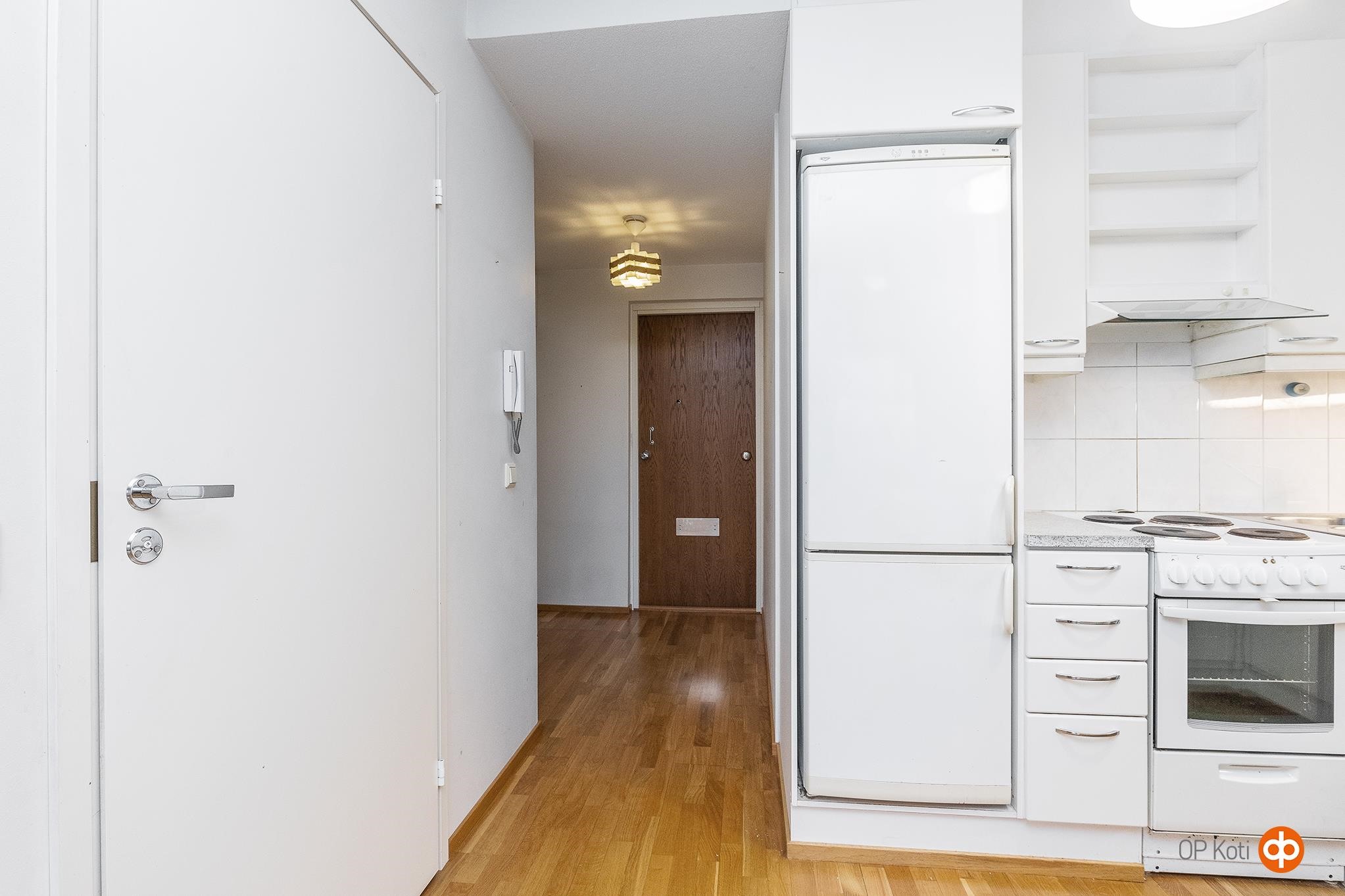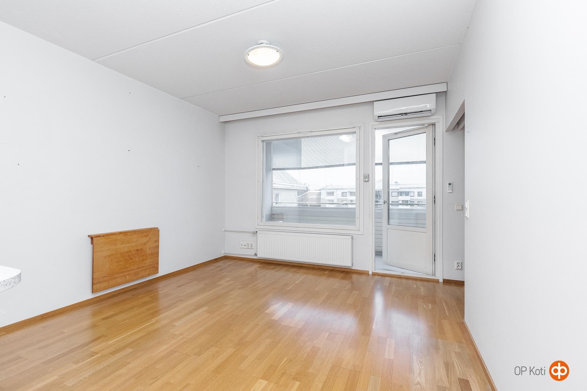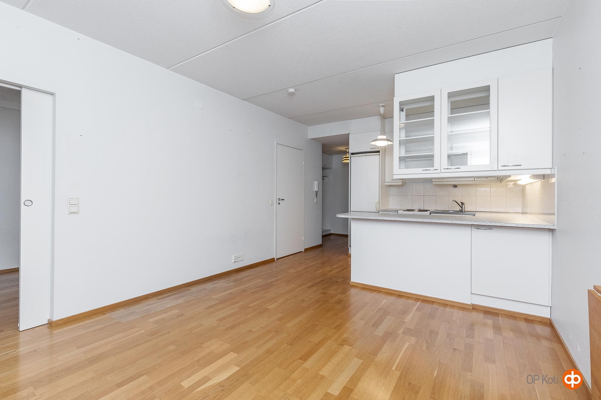 Siistikuntoinen saunallinen kaksio loistavalla sijainnilla hissitalon ylimmässä kerroksessa. Yhtiön yhteiset varastotilat samassa kerroksessa kuin kaupan kohteena oleva asunto. Huoneiston levyinen parveke talon sisäpihan suuntaan, joka riittävän kaukana vilkkaasti liikennöidystä Turuntiestä. Parvekeella hyvin tilaa kesäkukille, viherhyllyille ja parvekekalusteille.