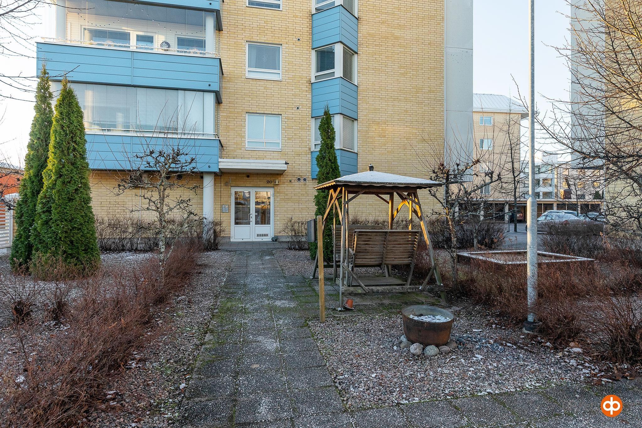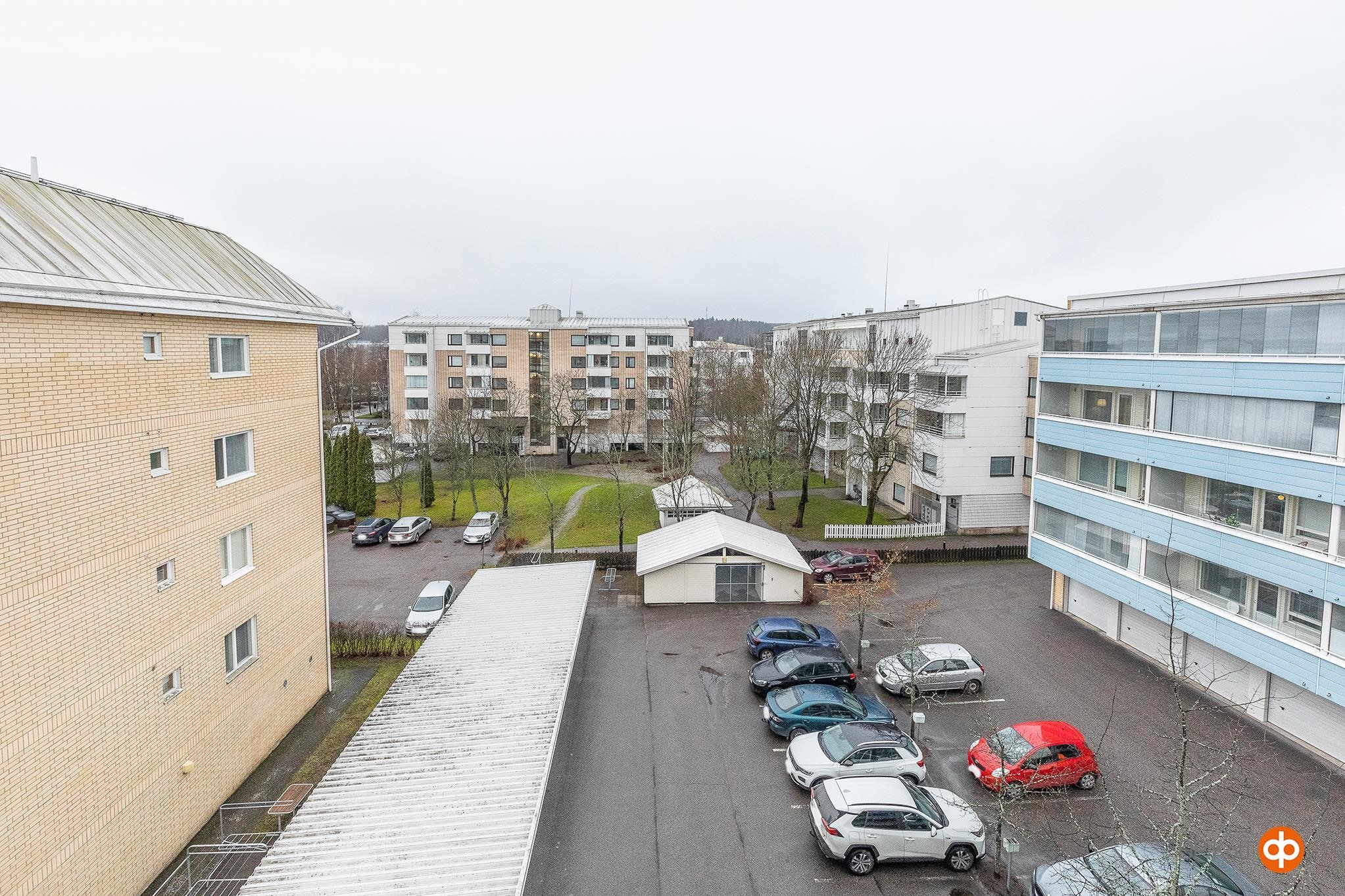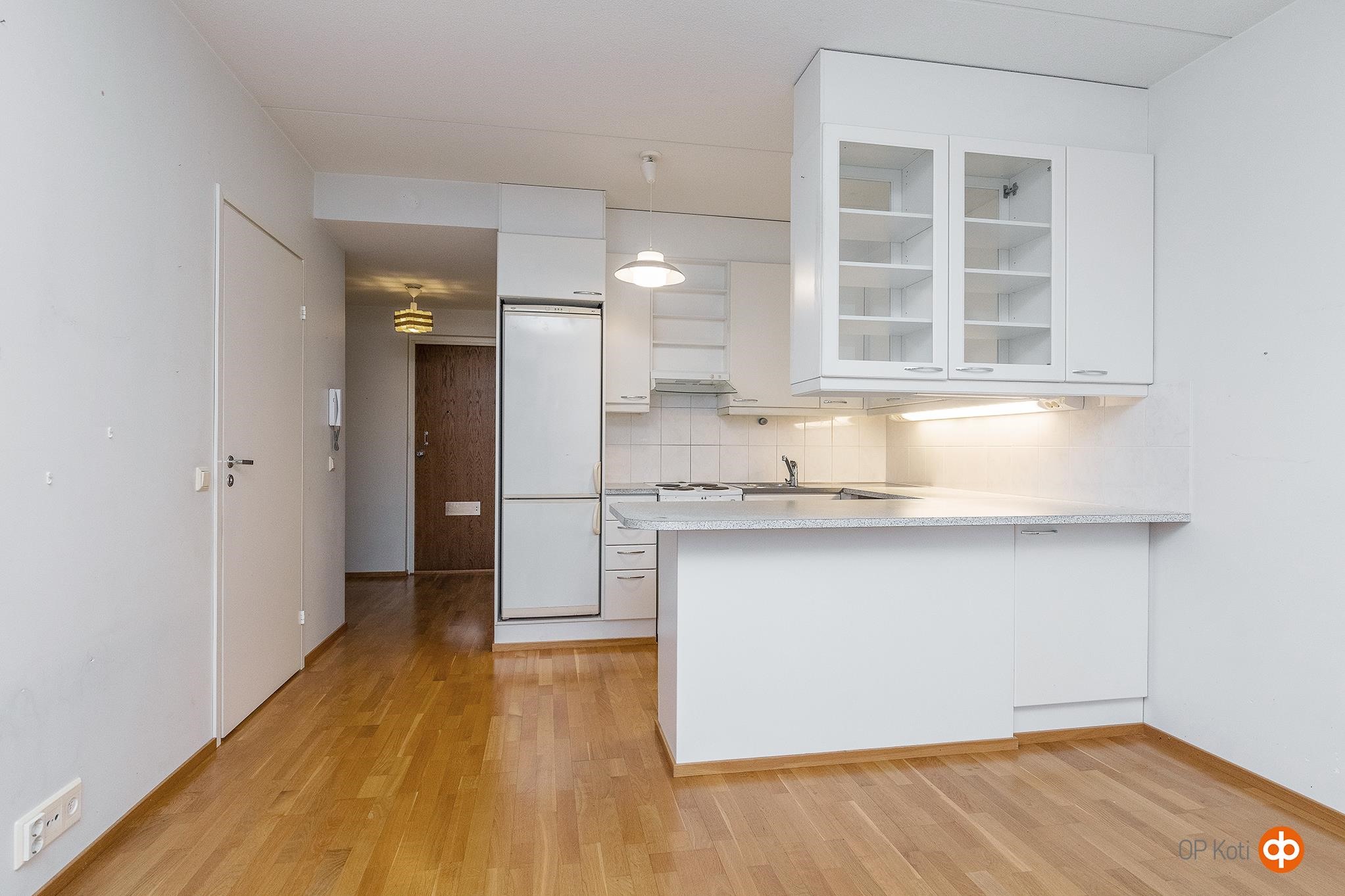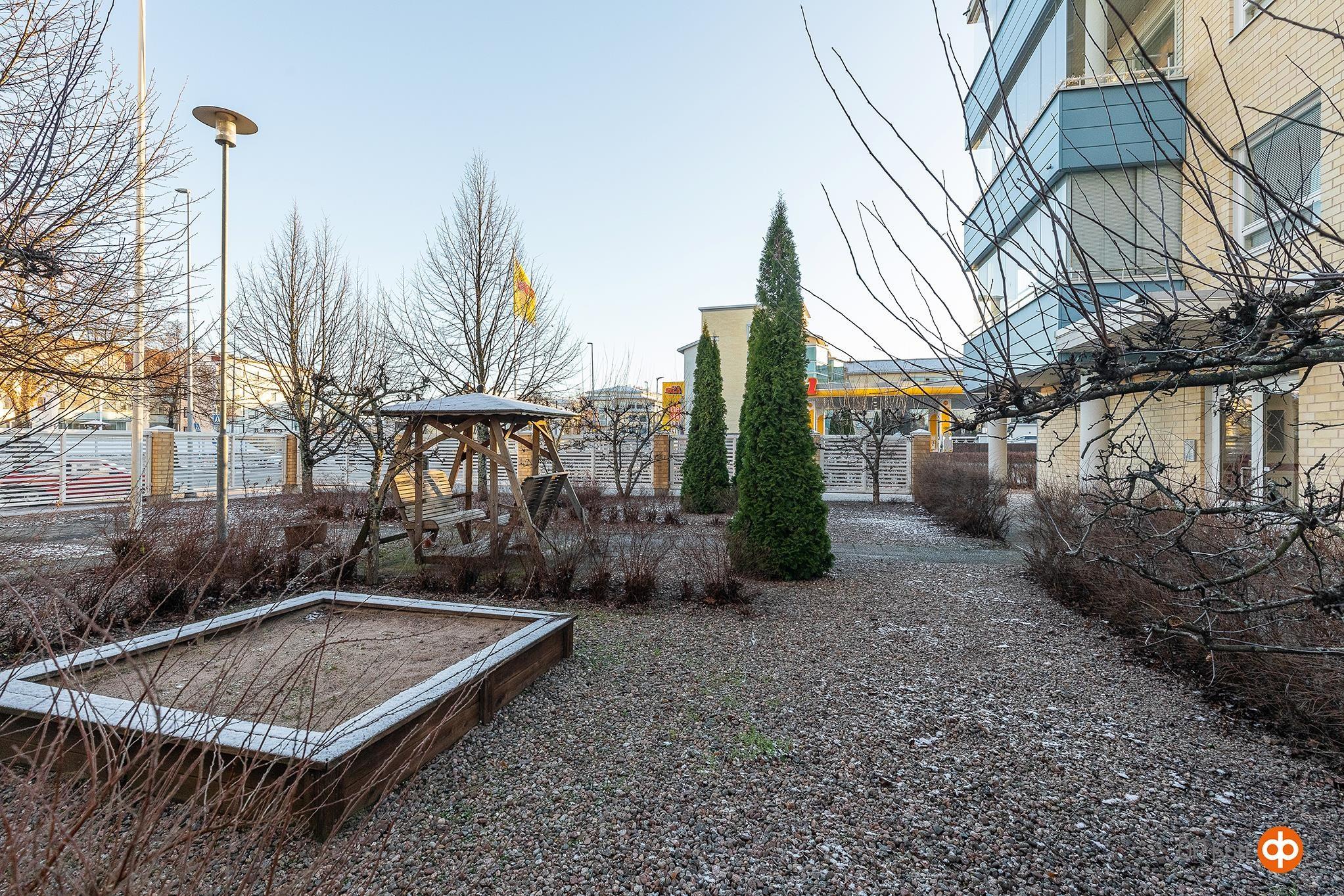 Siistikuntoinen saunallinen kaksio loistavalla sijainnilla hissitalon ylimmässä kerroksessa. Yhtiön yhteiset varastotilat samassa kerroksessa kuin kaupan kohteena oleva asunto. Huoneiston levyinen parveke talon sisäpihan suuntaan, joka riittävän kaukana vilkkaasti liikennöidystä Turuntiestä. Parvekeella hyvin tilaa kesäkukille, viherhyllyille ja parvekekalusteille.