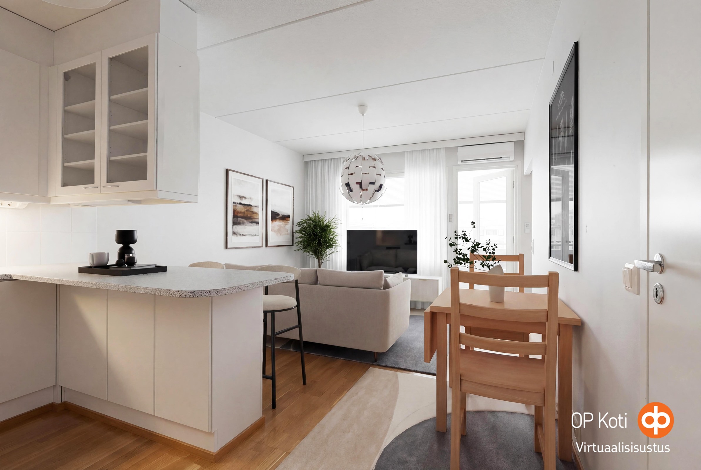 Tähän kotiin voi tutustua myös etänä! Klikkaa itsesi sisään virtuaaliesittelyyn ja astu peremmälle. Voit tutustua asunnon tiloihin 3D-esityksen kautta, aivan kuten olisit paikan päällä.