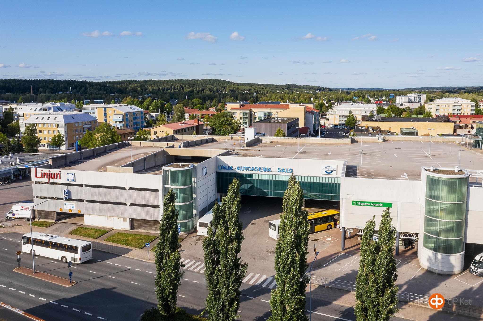 Palvelut: Loistava sijainti aivan Salon ydinkeskustan tuntumassa. Kaikki keskustan palvelut lyhyen kävelymatkan etäisyydellä. Kauppakeskus Linjuriin 200 m, jonka yhteydessa mm. linja-autoasema ja apteekki. Salon juna-asema 500 m. Kauppakeskus Plaza palveluineen 300 m, Salon torille matkaa 600 m. Useita ruokaravintoloita 500 m säteellä. Salon läntinen terveysasema 150 m. Astrum-Keskus liikuntamahdollisuuksineen 850 m. Koulut: Lähellä. Päiväkoti: Lähellä. Keskustan moninaiset palvelut kauppoineen ja ruokaravintoloineen, Salon kuuluisa tori sekä viihtyisä Salonjokivarsi rantoineen ja puistoineen lyhyen kävelymatkan etäisyydellä. Lähellä sijaitseva Astrum-keskus kätkee sisäänsä Salon suurimman liikuntakeskuksen. Liikuntakeskuksesta löytyvät keilarata, kuntosali, simulaattorigolf, biljardi- ja snooker, sulkapallo, pickleball ja suuren suosion saaneet Padel -kentät Salon läntinen terveysasema 250 m. Liikenneyhteydet: Linja-autoasema noin 200 m ja rautatieasema noin 500 m.