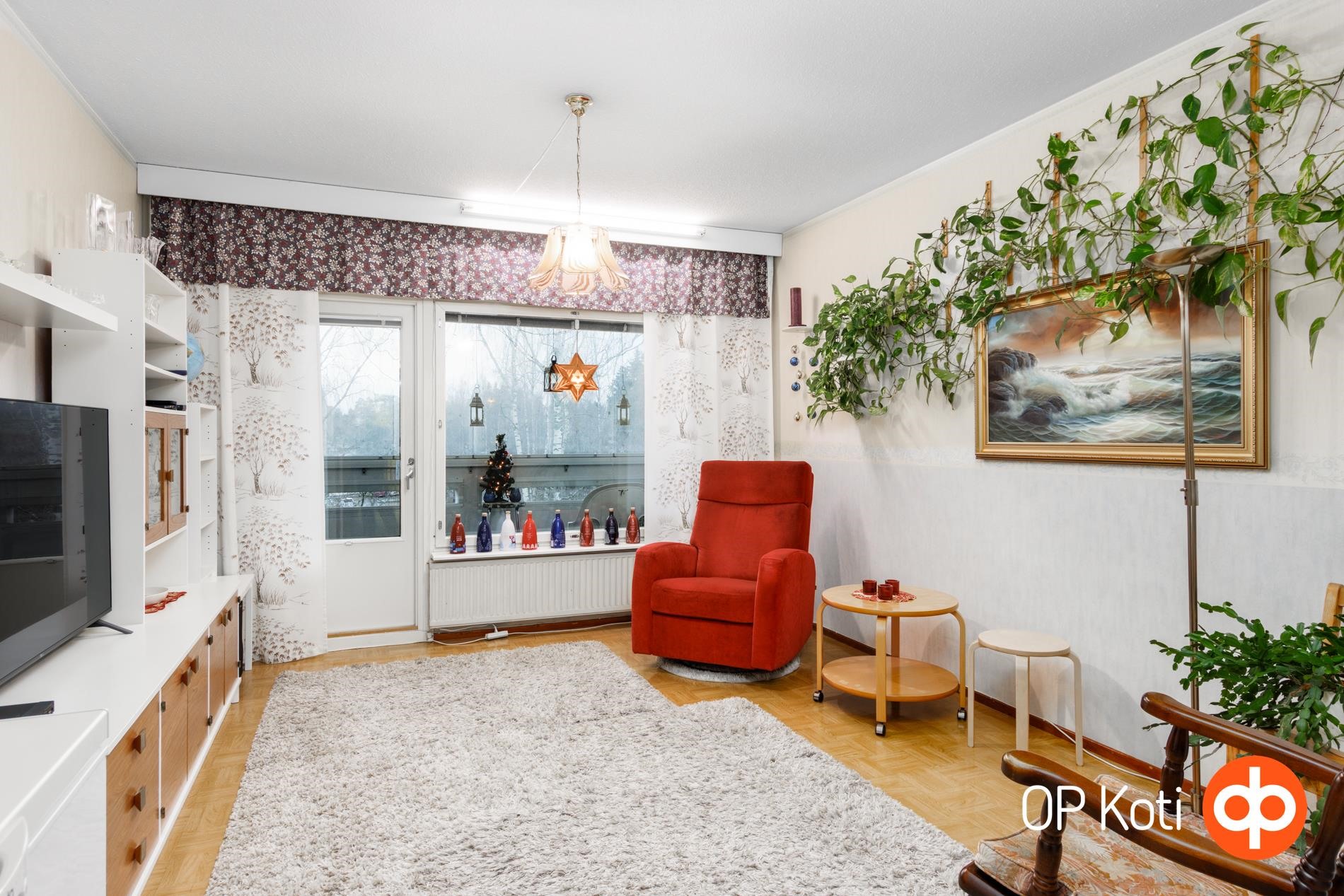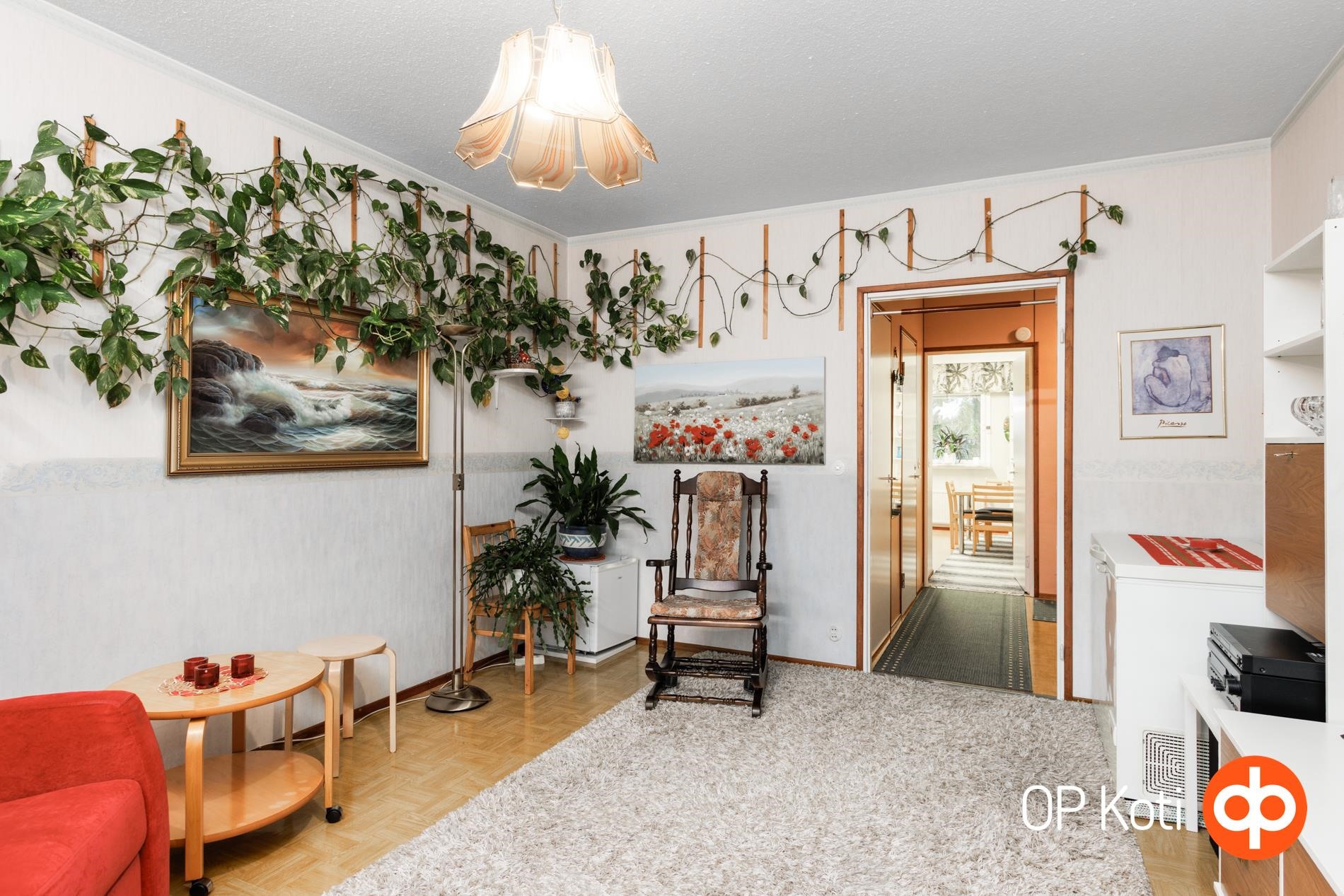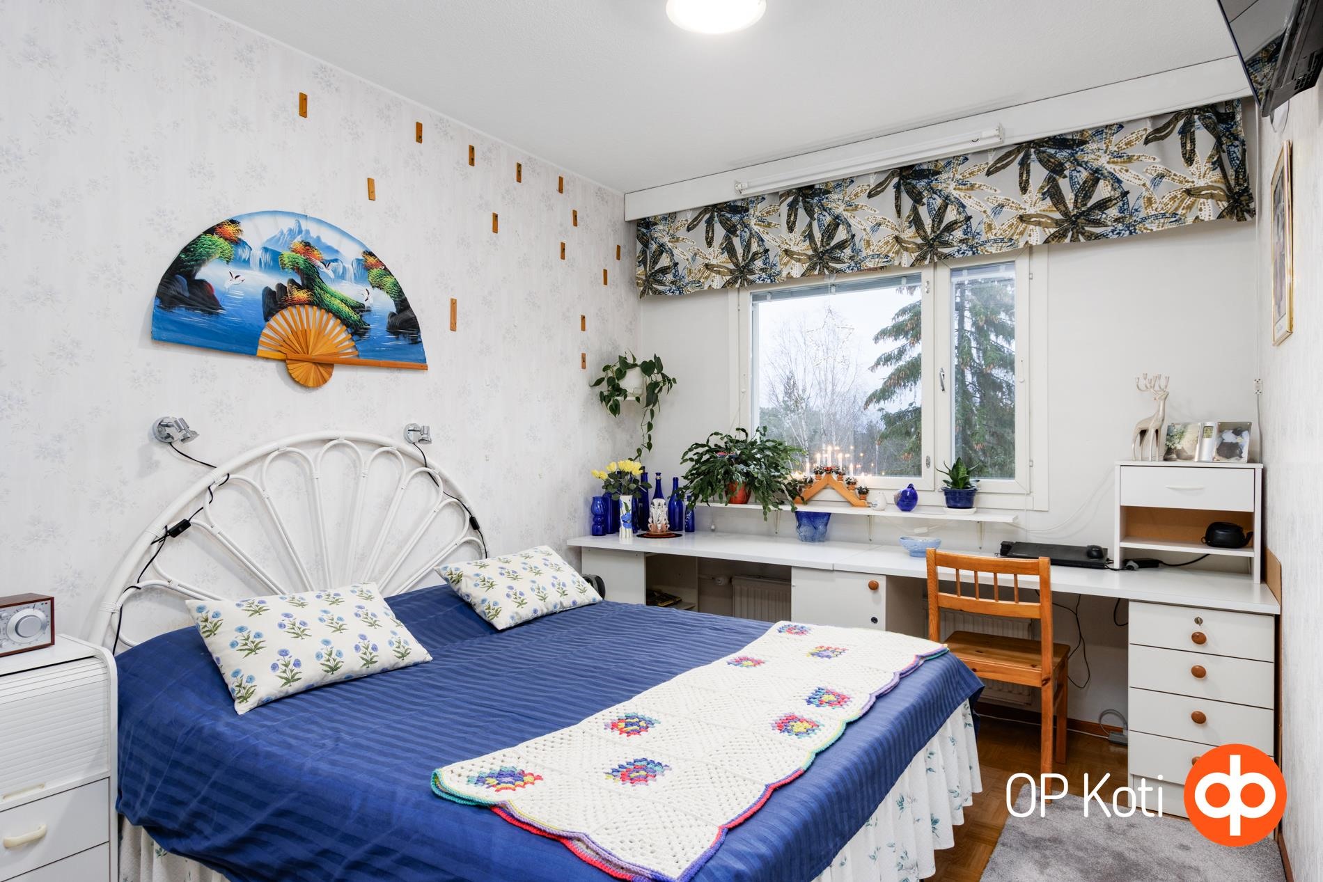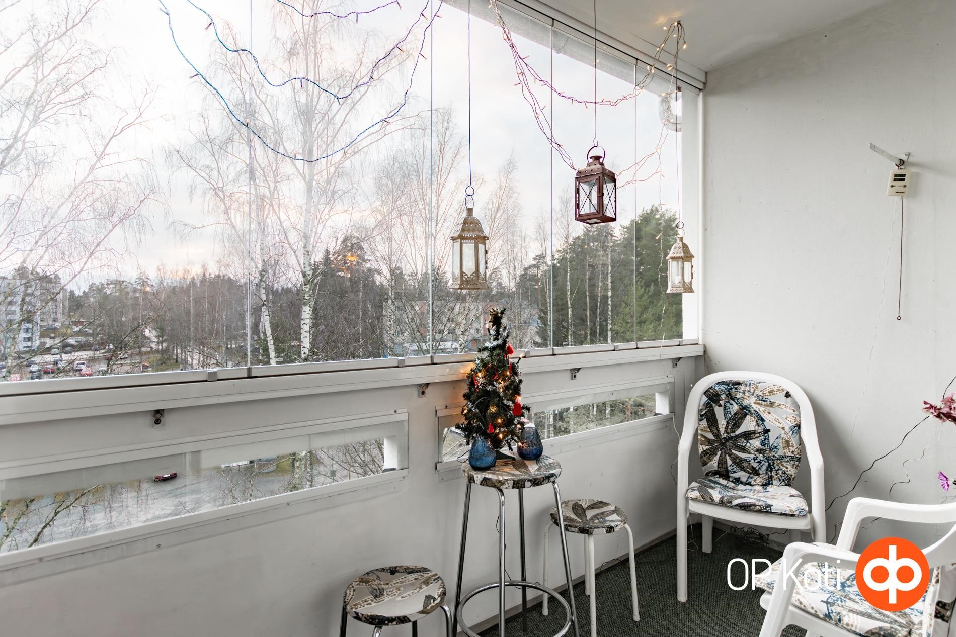 Kodissa on toimiva huonejako: kaksi makuuhuonetta ja tilava olohuone, jonka jatkeena on lasitettu parveke. Parveke tarjoaa mukavan lisätilan oleskeluun pitkälle syksyyn saakka.