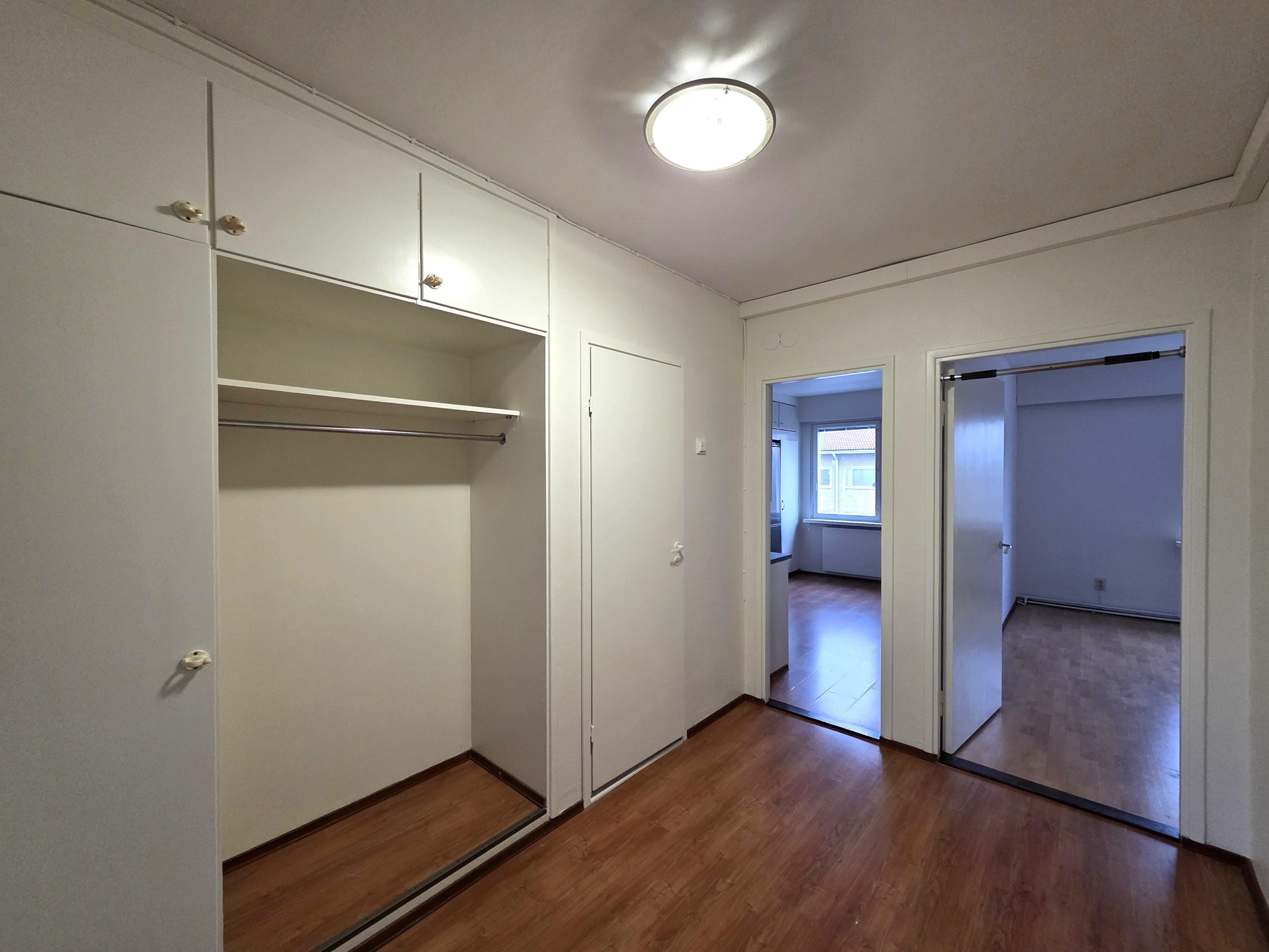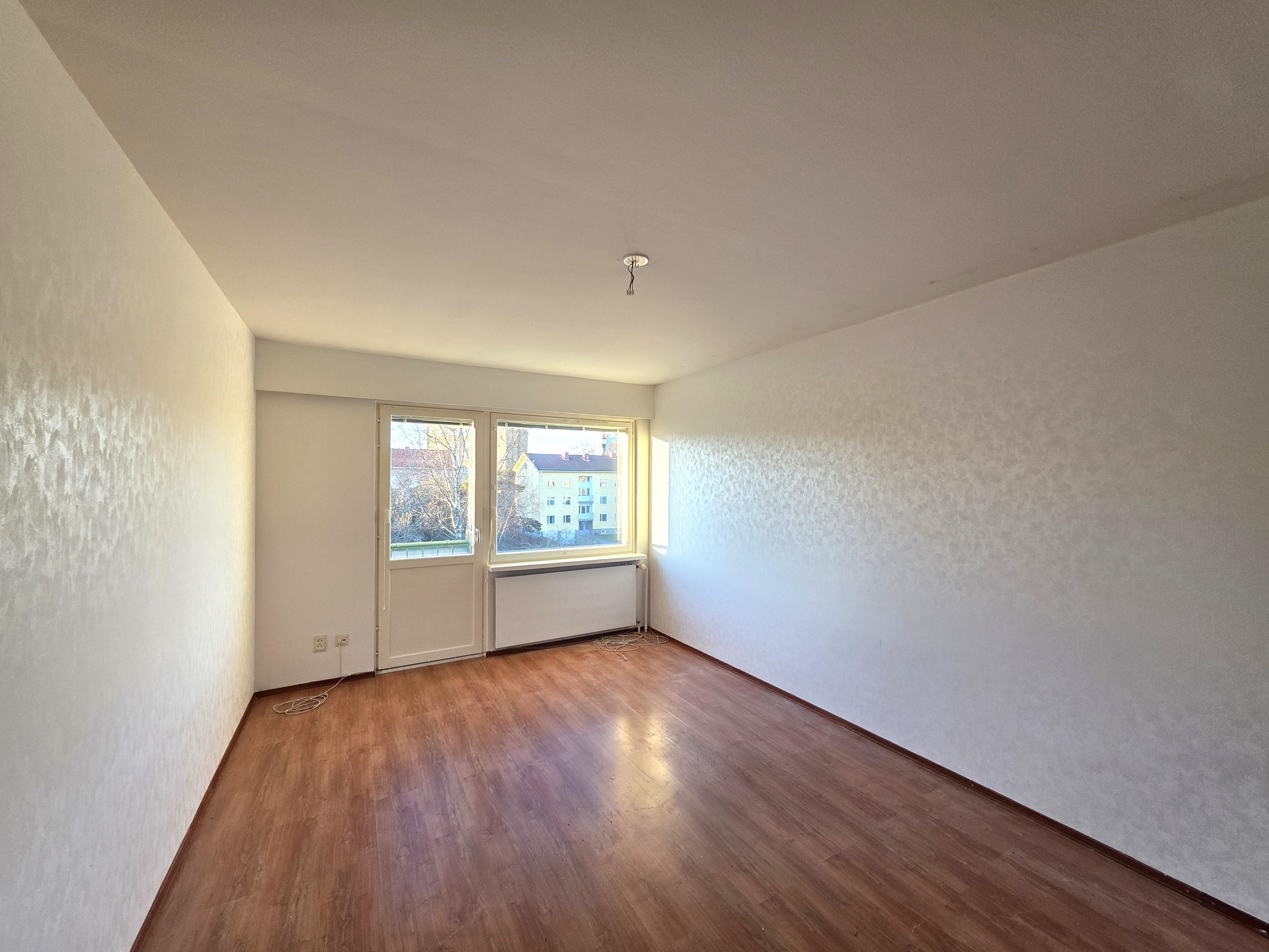 Lattia: laminaatti. Seinät: tapetti.