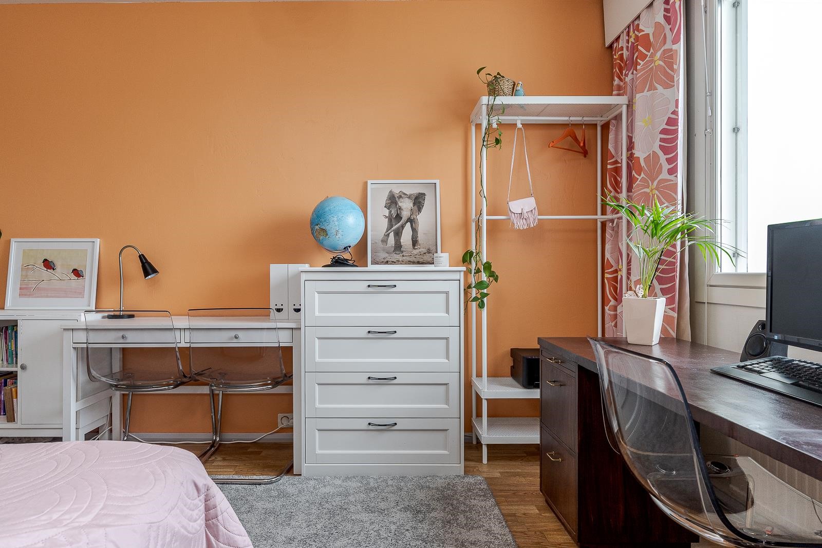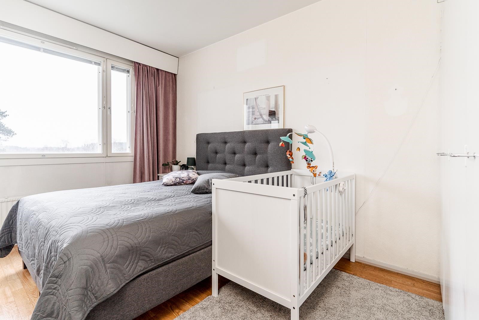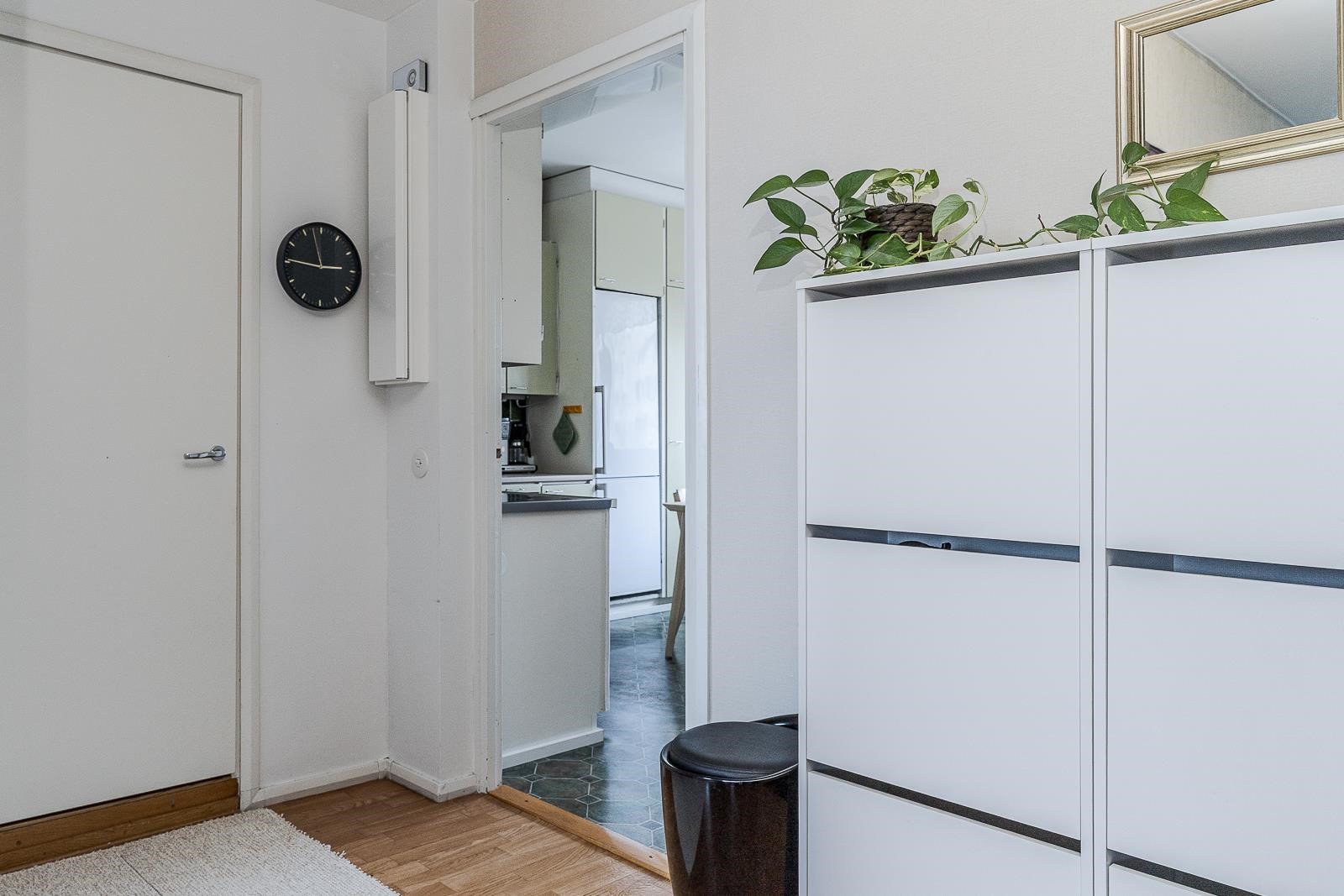 Asunnossa on erillinen keittiö, jossa on kaikki tarvittava ruoanlaittoon. Kolme makuuhuonetta luovat rauhalliset puitteet lepoon, ja erillinen vaatehuone tuo kaivattua säilytystilaa. Erillinen wc helpottaa kiireisiä aamuja.