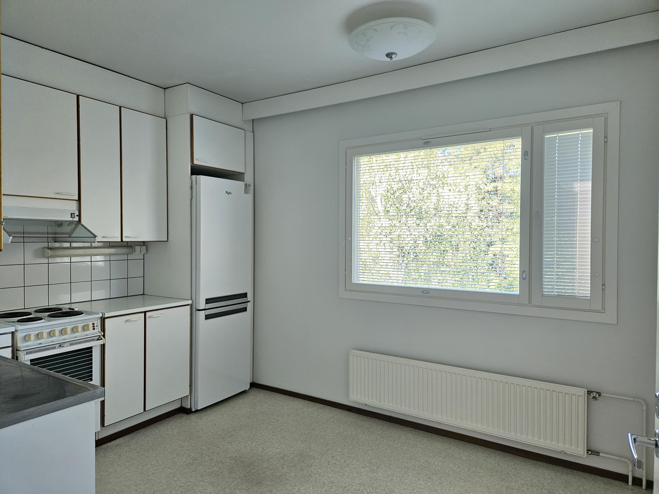 - Keittiö alkuperäiskuntoinen, varusteina kaapistot, jääkaappipakastin, sähköliesi, liesituuletin ja kiinteät valaisimet.