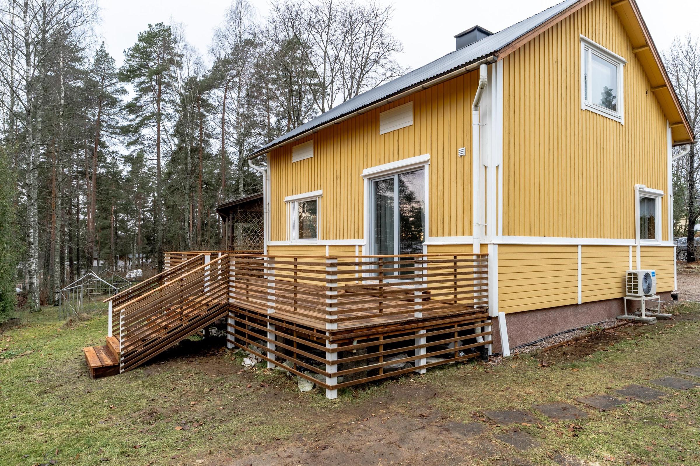- 85 m2Rakennuksesta ei aikakaudelle tyypilliseen tapaan ole saatavilla rakennuslupadokumentteja eikä loppukatselmus- tai muita katselmuspöytäkirjoja. Tämän vuoksi esitteen pinta-alatiedot voivat poiketa todellisesta. Esitteellä olevat tiedot pinta-alasta perustuvat nykyiseltä omistajalta saatuihin tietoihin.