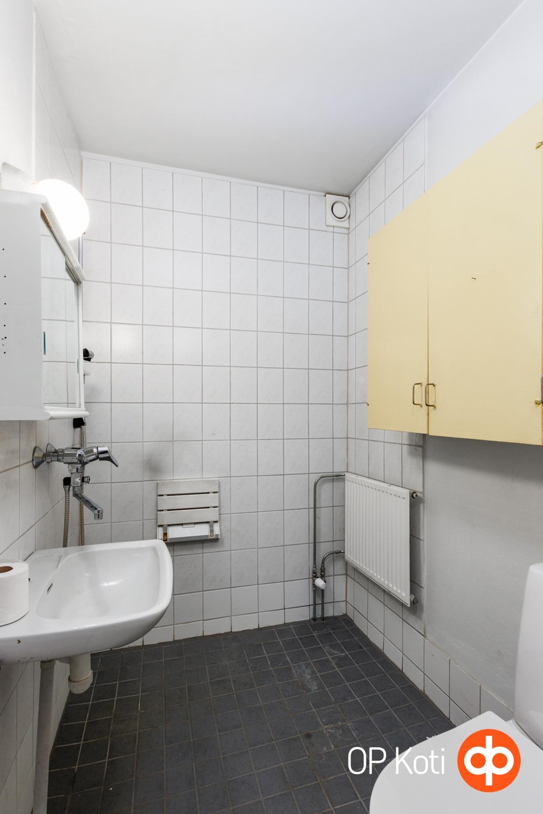 - Kylpyhuone, suihku, peilikaappi, allaskaappi, pesukoneliitäntä, kiinteät valaisimet.