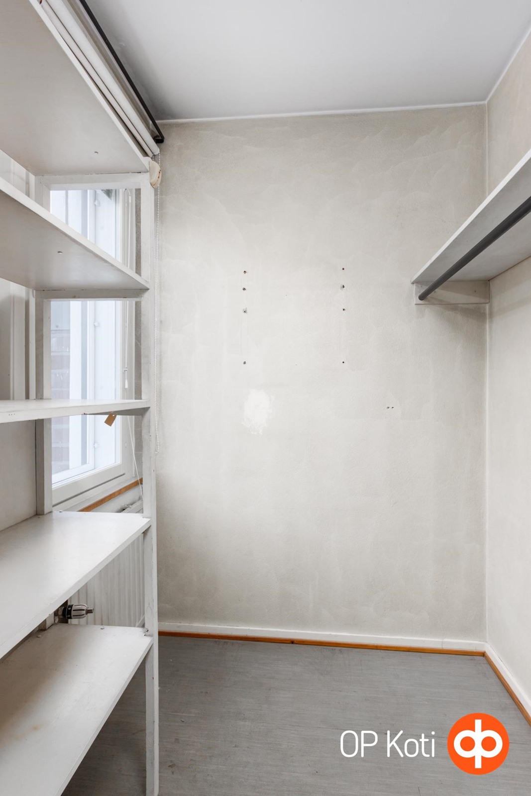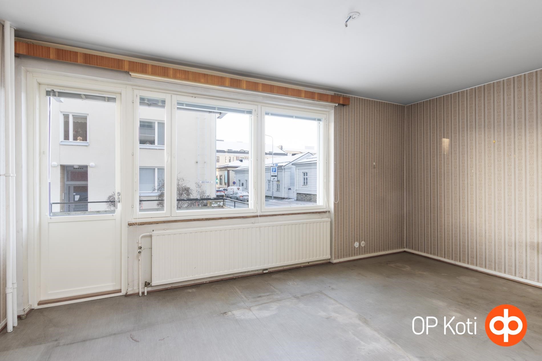 Ensimmäisen kerroksen kulmahuoneisto, jonka ikkunoista tulvii valoa sisään. Tämä asunto on peruskuntoinen ja soveltuu remontoitavaksi erinomaisesti! Neliöt on suunniteltu nerokkaasti, joten olohuone ja makuuhuone ovat mukavan tilavia. Olohuoneesta käynti parvekkeelle.