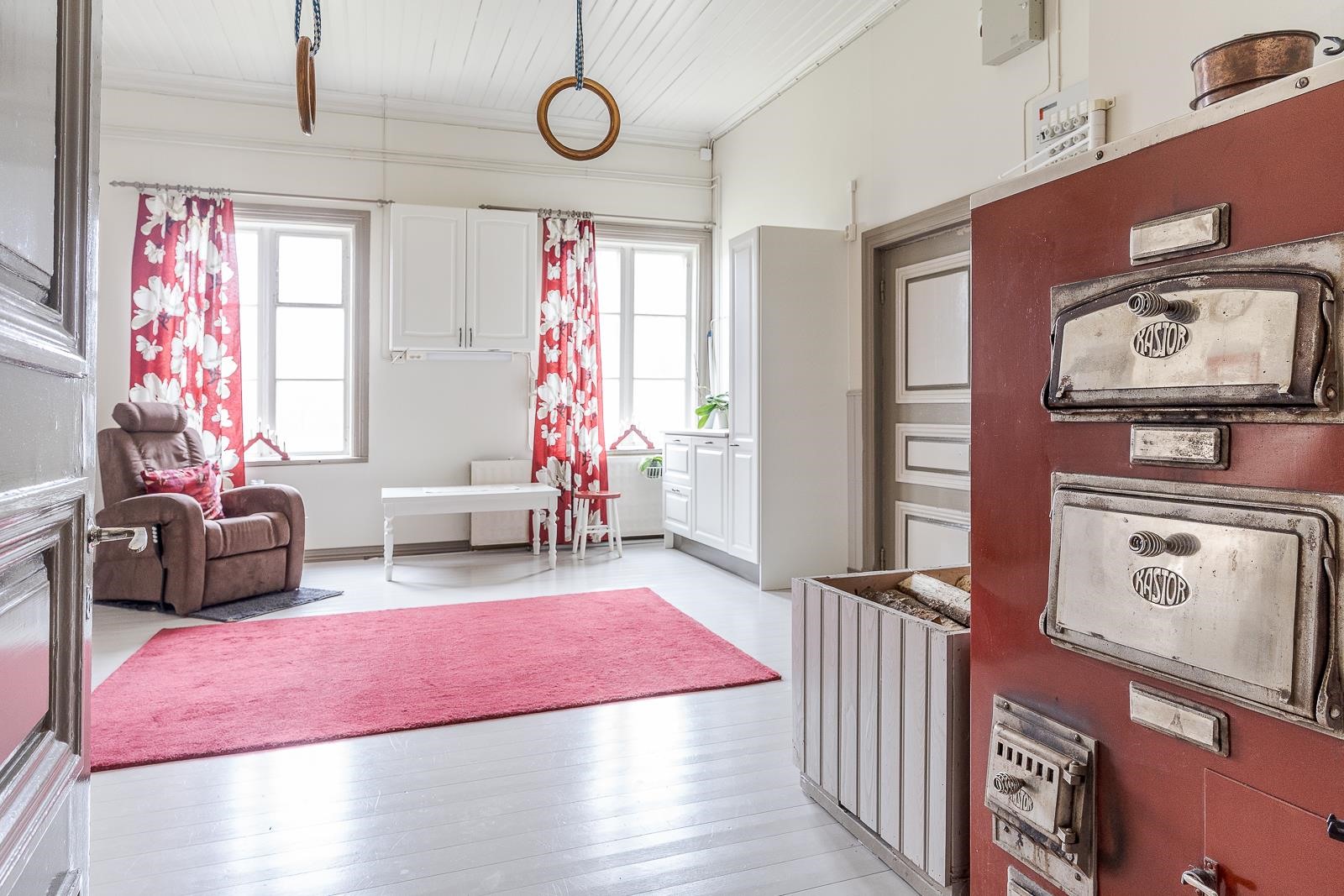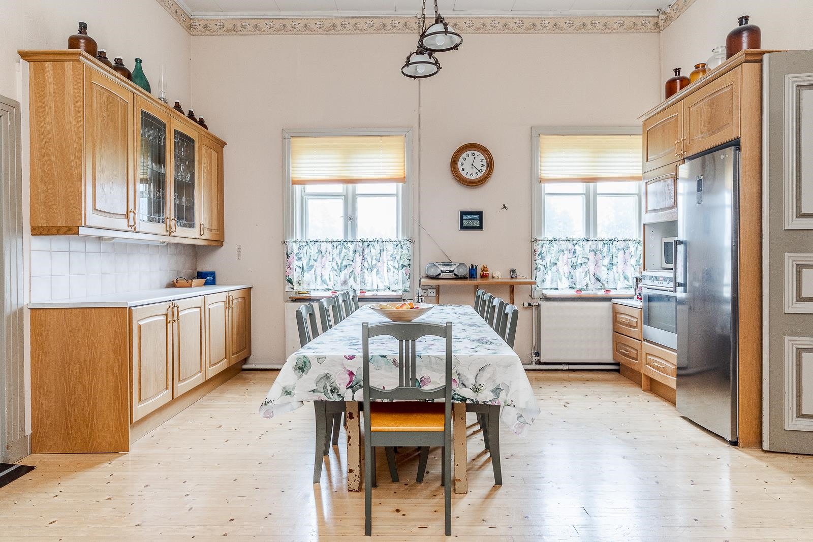 - Jääkaappi rosteri, erillisuuni, liesitaso, liesituuletin, astianpesukone rosteri, kaapistot, kiinteät valaisimet. Keittiö uusittu kokonaan 1992, keittiössä takka.