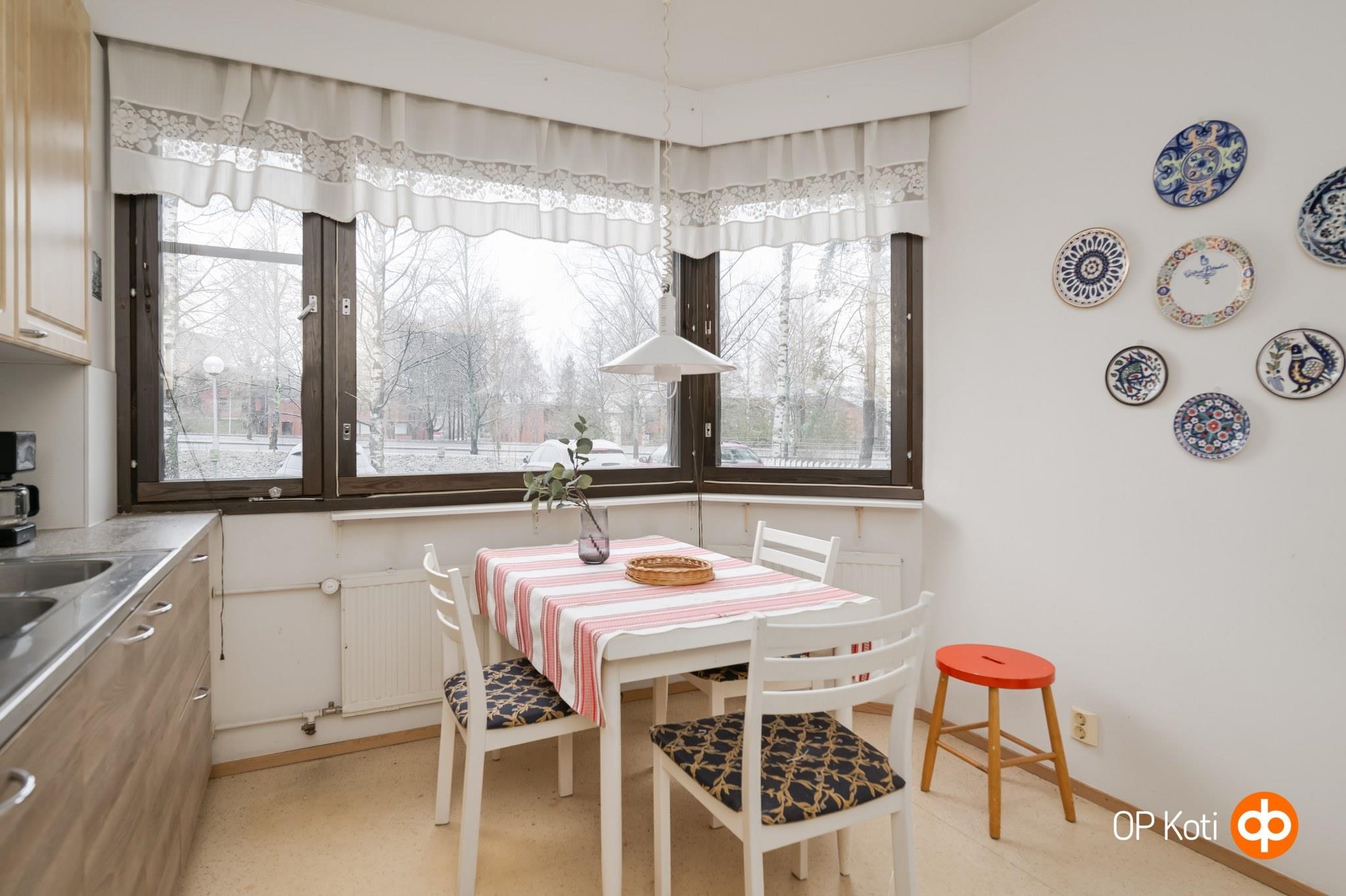 .Etsitkö rauhallista ja viihtyisää kotia Jyväskylän Taulumäen-alueelta? Tämä 66 m²:n peruskuntoinen asunto tarjoaa sinulle mahdollisuuden nauttia mukavasta asumisesta, jossa yhdistyvät toimiva pohjaratkaisu ja käytännöllisyys. Lasitettu parveke tuo lisämukavuutta ja tarjoaa ihanaa näkymää sisäpihalle. Asunto sijaitsee talon ensimmäisessä kerroksessa ja sinne on esteetön kulku. Keittiö on tilava ja siellä on mukavasti kaappitilaa. Kylpyhuone on laatoitettu ja oma saunakin asunnosta löytyy. Säilytystilat löytyvät kellarista ja huoneistossa on myös kaapeli-TV ja tietoliikenneyhteys. Keskustan palvelut ovat käden ulottuvilla: ruokakaupat, koulut ja Tuomiojärvenranta ovat vain lyhyen kävelymatkan päässä. Paikallisliikenteen yhteydet ovat erinomaiset. Asunto Oy Jyväskylän Koskenkuja 1:n taloyhtiö on omalla tontilla ja hyvin hoidettu. Kaukolämpö ja vesikiertoinen patterilämmitys takaavat edulliset lämmityskustannukset. Taloyhtiössä on tehty lukuisia kunnostuksia, jotka varmistavat kiinteistön pitkäikäisyyden. Tartu tilaisuuteen ja tule tutustumaan tähän viehättävään kotiin!