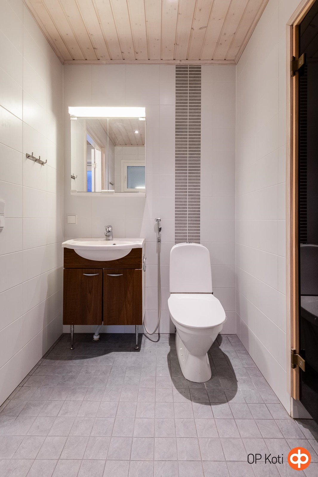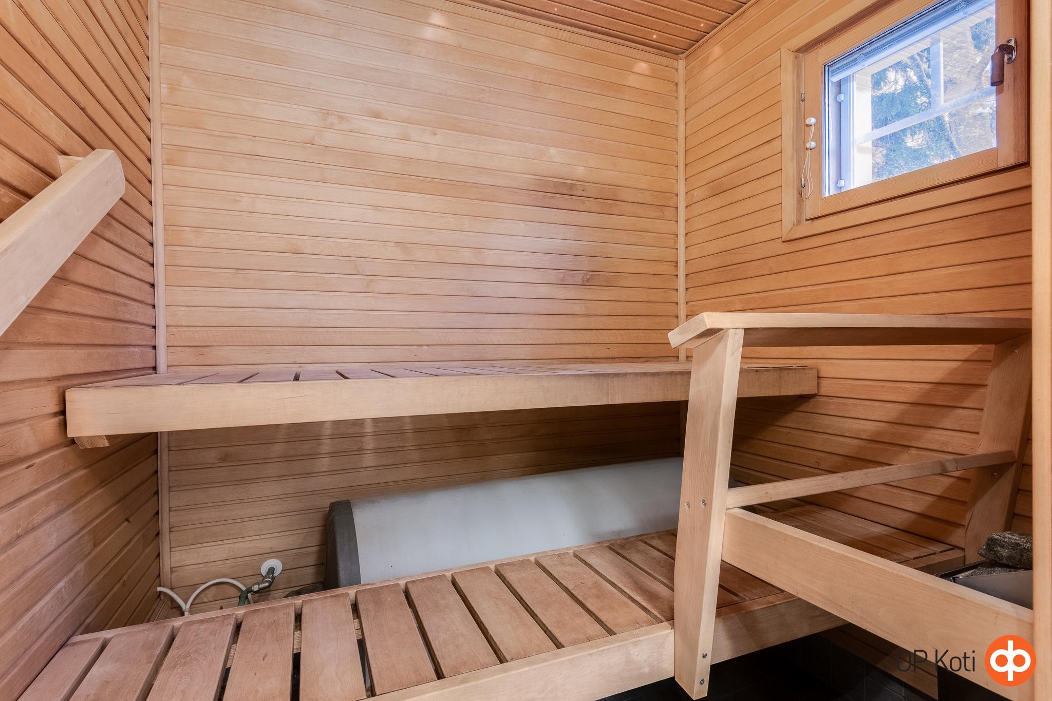 - Sauna, sähkökiuas, kylpyhuone, suihku, peilikaappi, kaapit, allaskaappi, pesukoneliitäntä, lattialämmitys, kiinteät valaisimet.