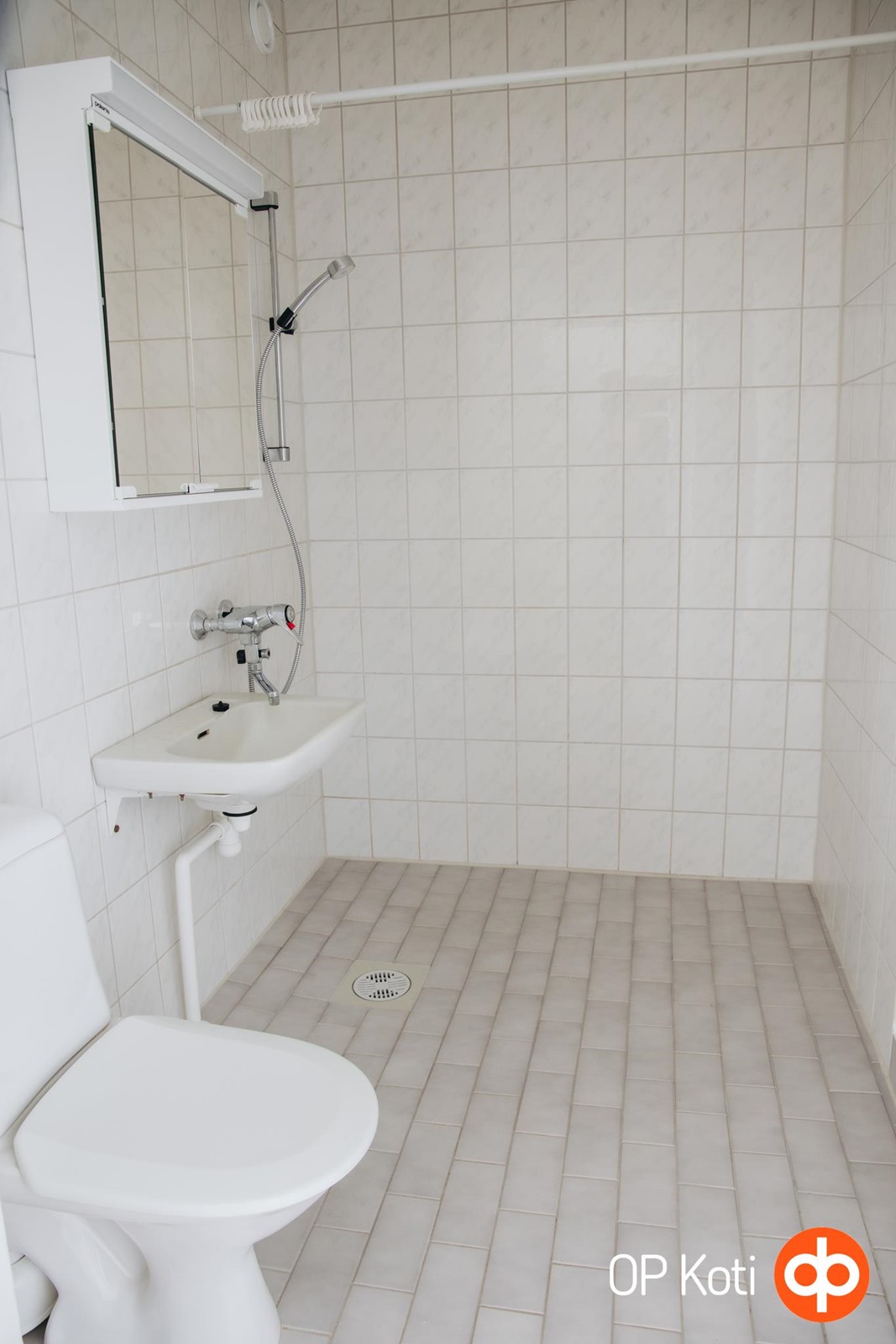 - Kylpyhuone, suihku, peilikaappi, kiinteät valaisimet.