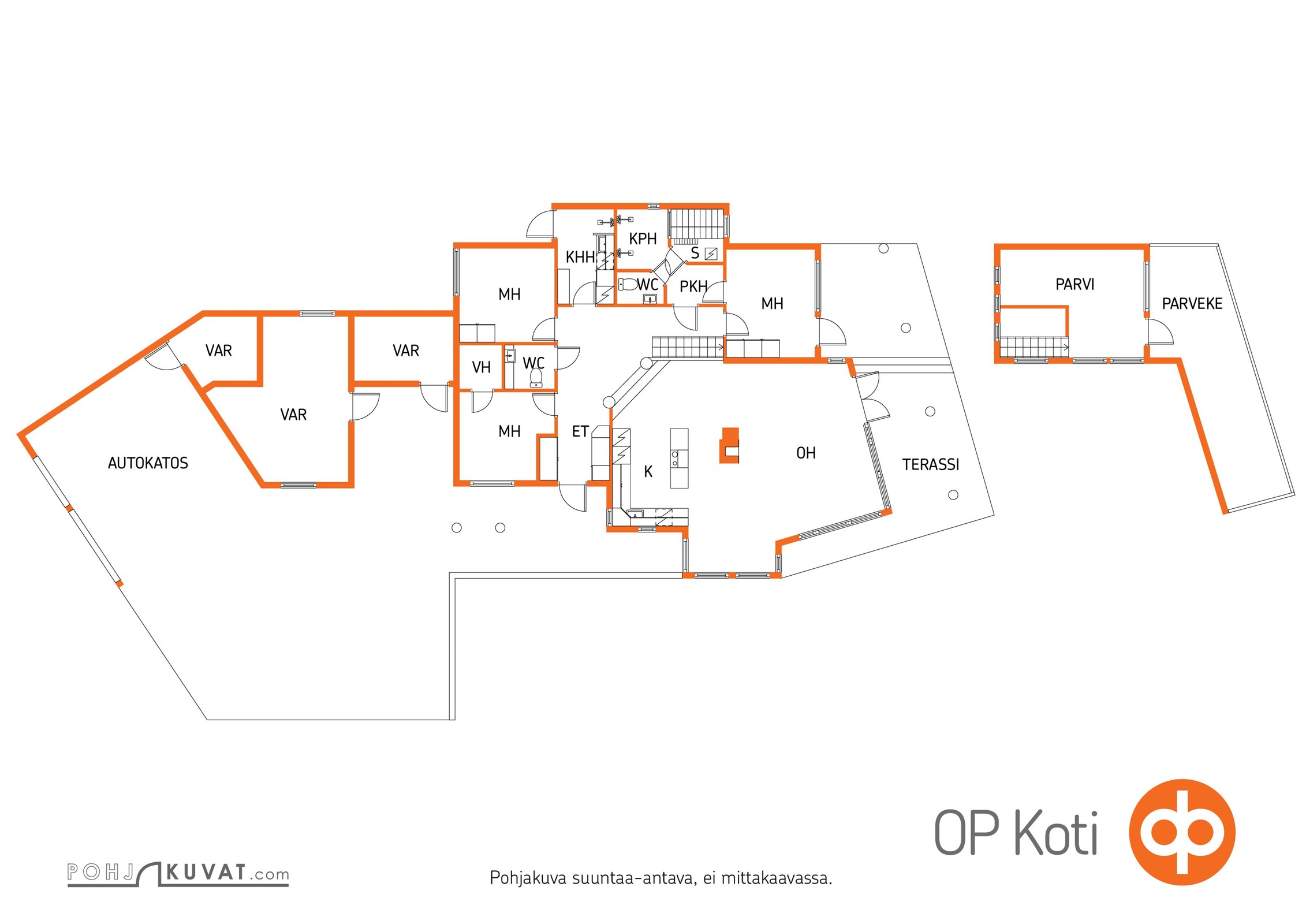 - K, oh, 3mh, khh, kph, s, 2 x erill. wc, työhuone