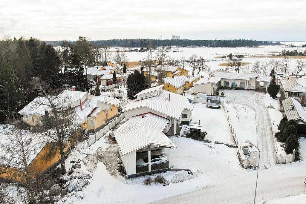 Sähkölämmitystä ohjaava älytermostaattijärjestelmä pitää asumiskustannukset hallinnassa ja varmistaa miellyttävän lämpötilan ympäri vuoden. Suuret ikkunat tuovat upean merellisen maiseman osaksi arkea, ja kesäisin pääset uimaan vain 200 metrin päässä sijaitsevalle uimarannalle.