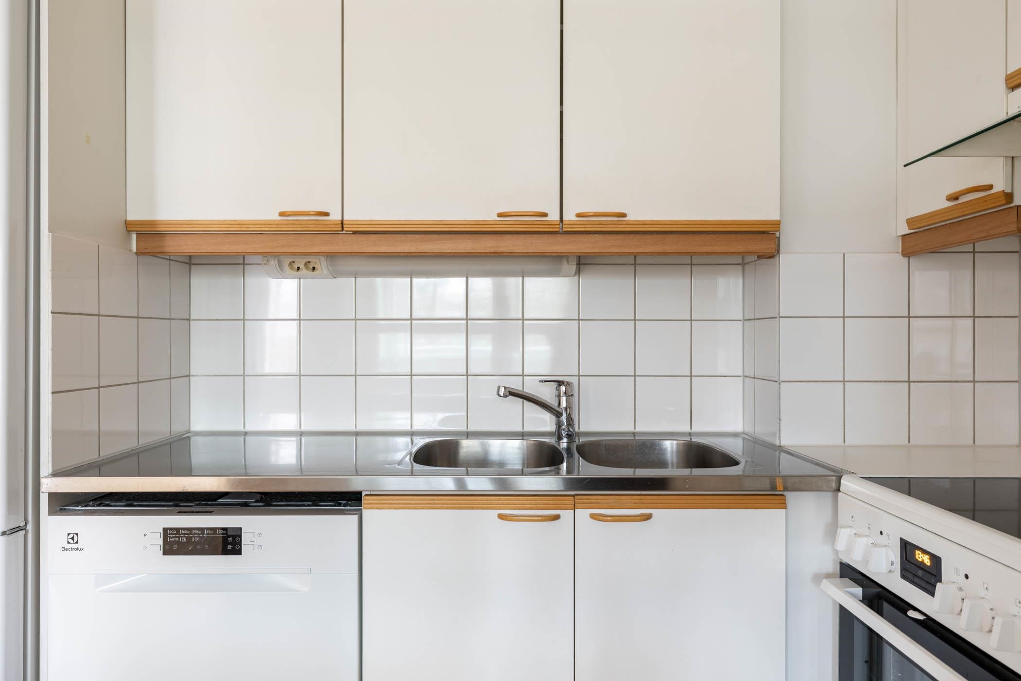 - Keittiön varusteina on jääkaappipakastin, keraaminen liesi, liesituuletin, mikroaaltouuni sekä astianpesukone.