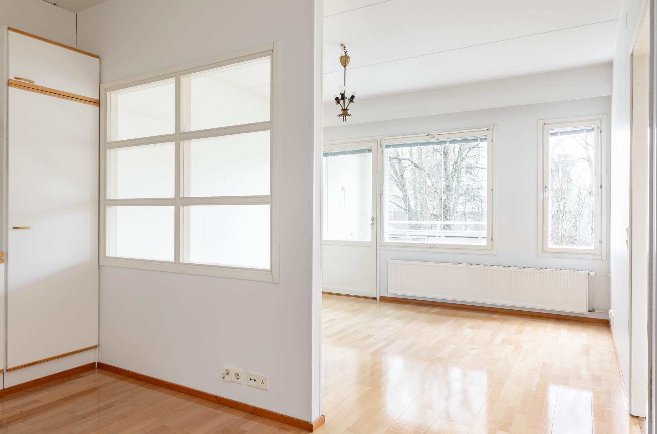 Tervetuloa tutustumaan tähän 49,5-neliöiseen kaksioon, joka sijaitsee rauhallisella paikalla Siirtolapuutarhankadulla. Asuntoon on tehty pintaremontti vuonna 2025, ja kokonaisuus on siisti sekä heti muuttovalmis. Olohuoneesta on käynti lasitetulle parvekkeelle, josta avautuvat vehreät ja puistomaiset näkymät. Arkea ja asumismukavuutta täydentää ehdottomasti asunnon oma sauna.