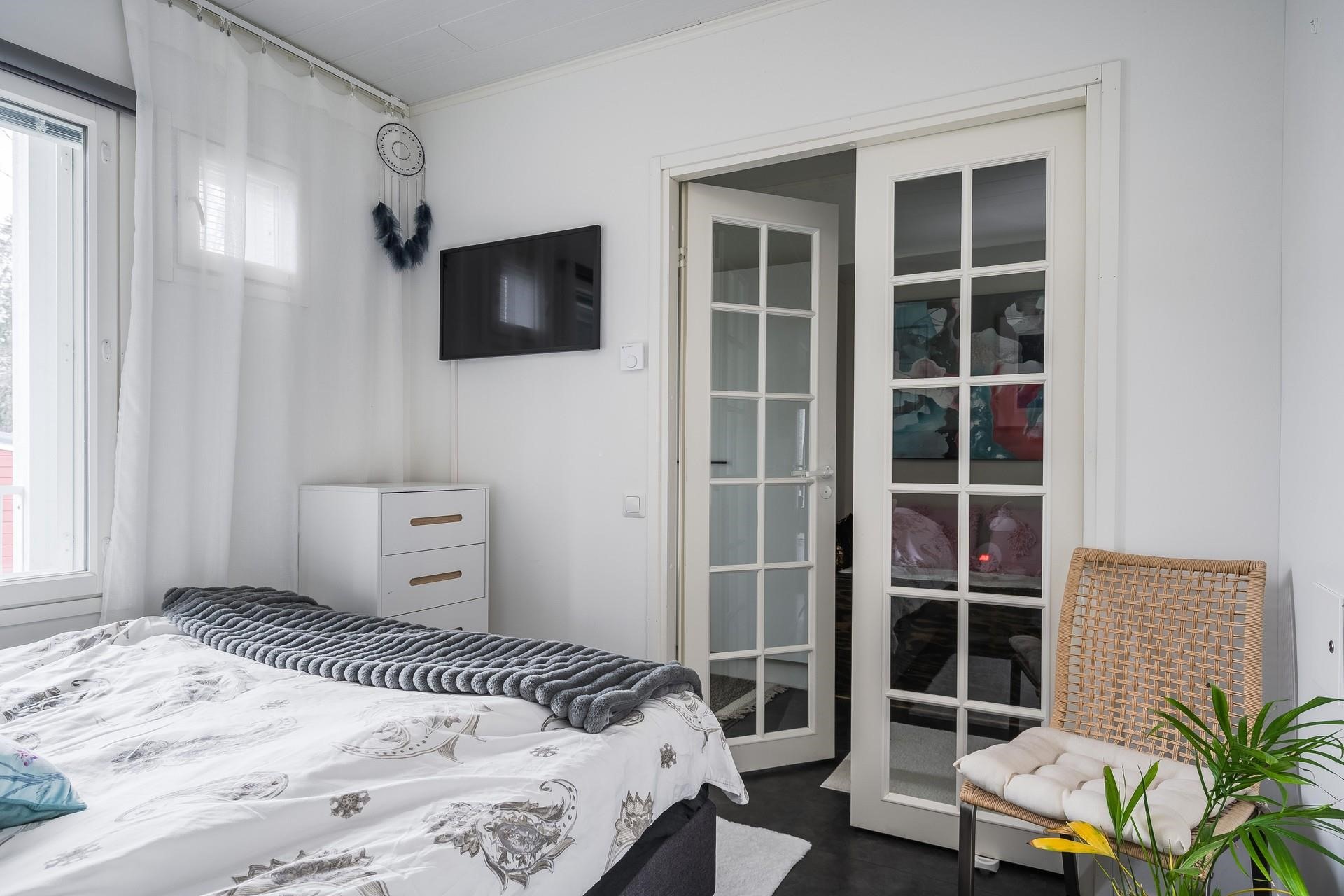 Keittiön kodinkoneet on päivitetty lähivuosina, Asunnossa on mukavasti kaappitilaa säilytykseen. Sauna on moderni ja tunnelmallinen. Tilava makuuhuone antaa väljyyttä kalusteratkaisuihin.
