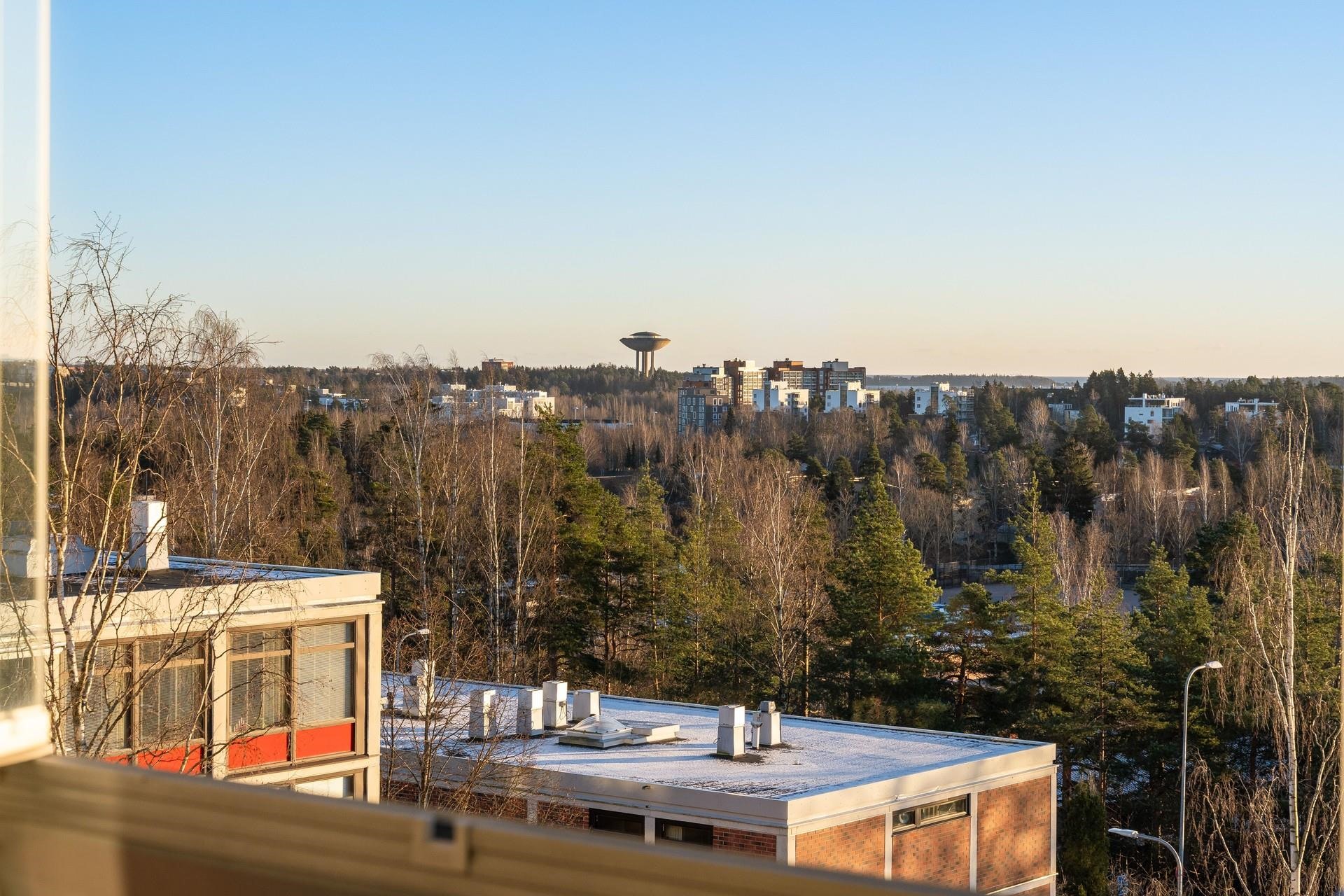 - Upeat näkymät noin etelään korkealta kattojen yli merelle asti olohuoneesta. Makuuhuoneista avarat näkymät pohjoiseen.