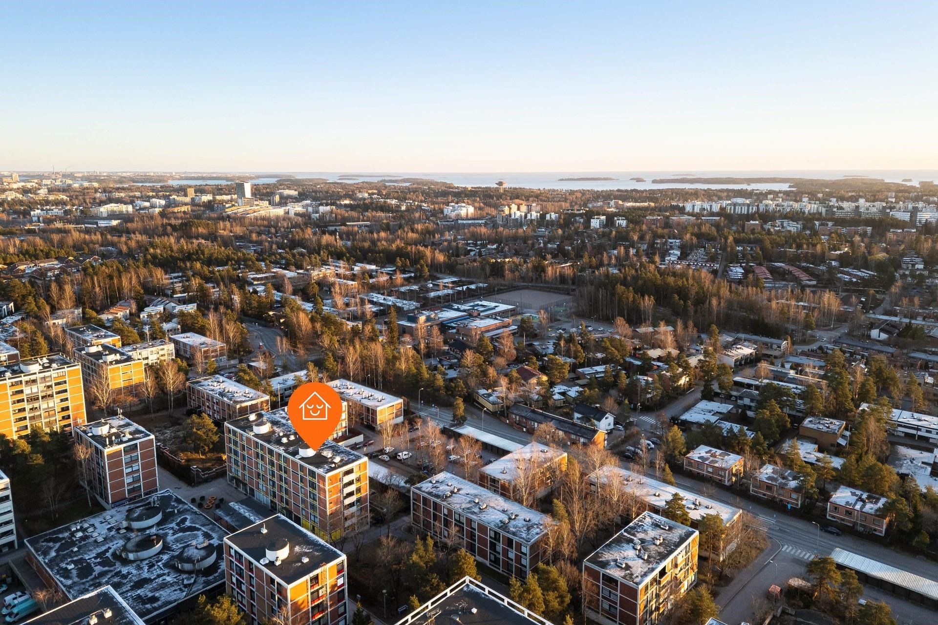 Kävelyetäisyydeltä löytyvät kaupat, koulut, päiväkodit, ja erinomaiset liikenneyhteydet. Autoilijoille nopeat yhteydet Länsiväylälle ja Kehä II:lle. Lähistöltä löytyy myös paljon luontoa ja hyvät ulkoilualueet.