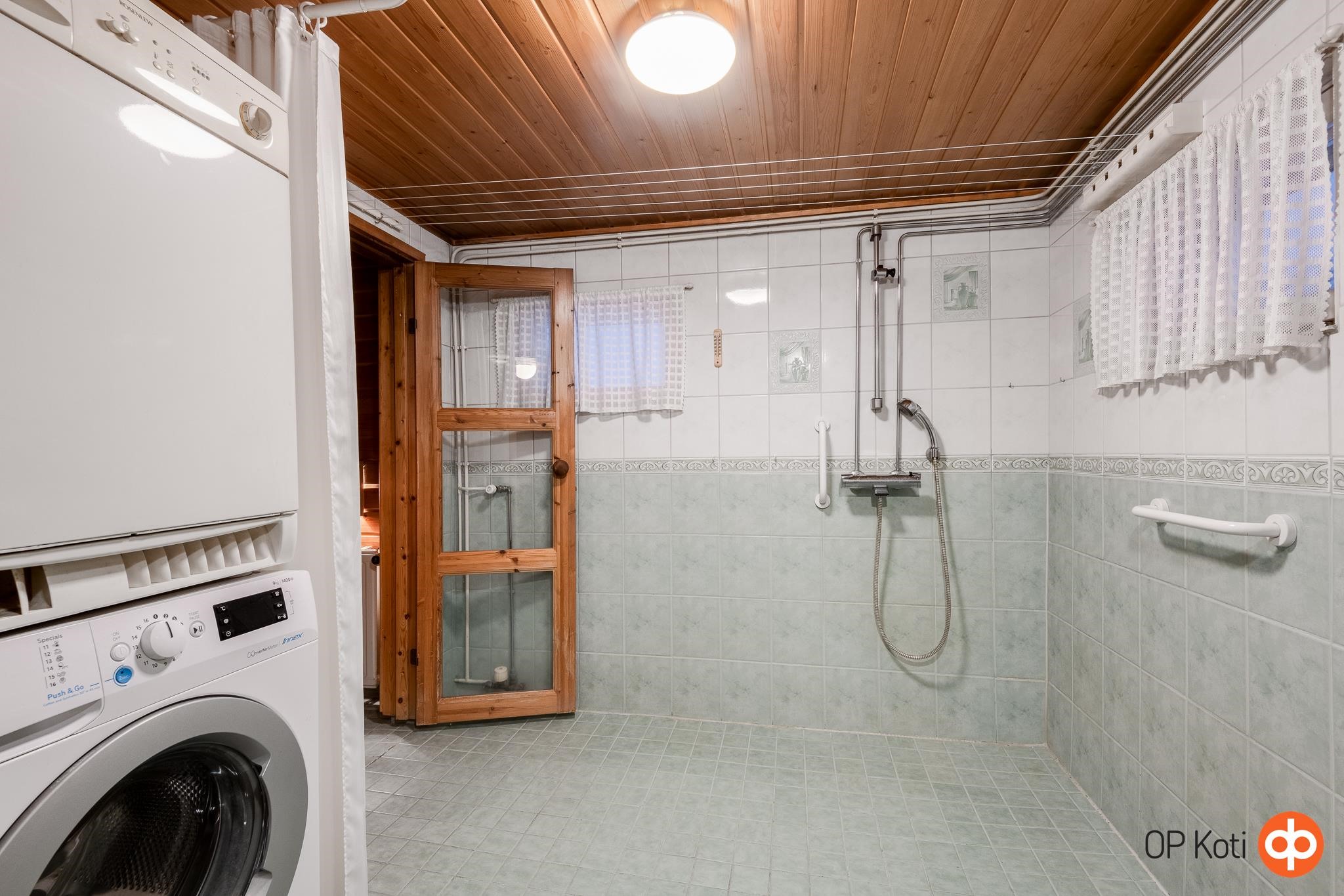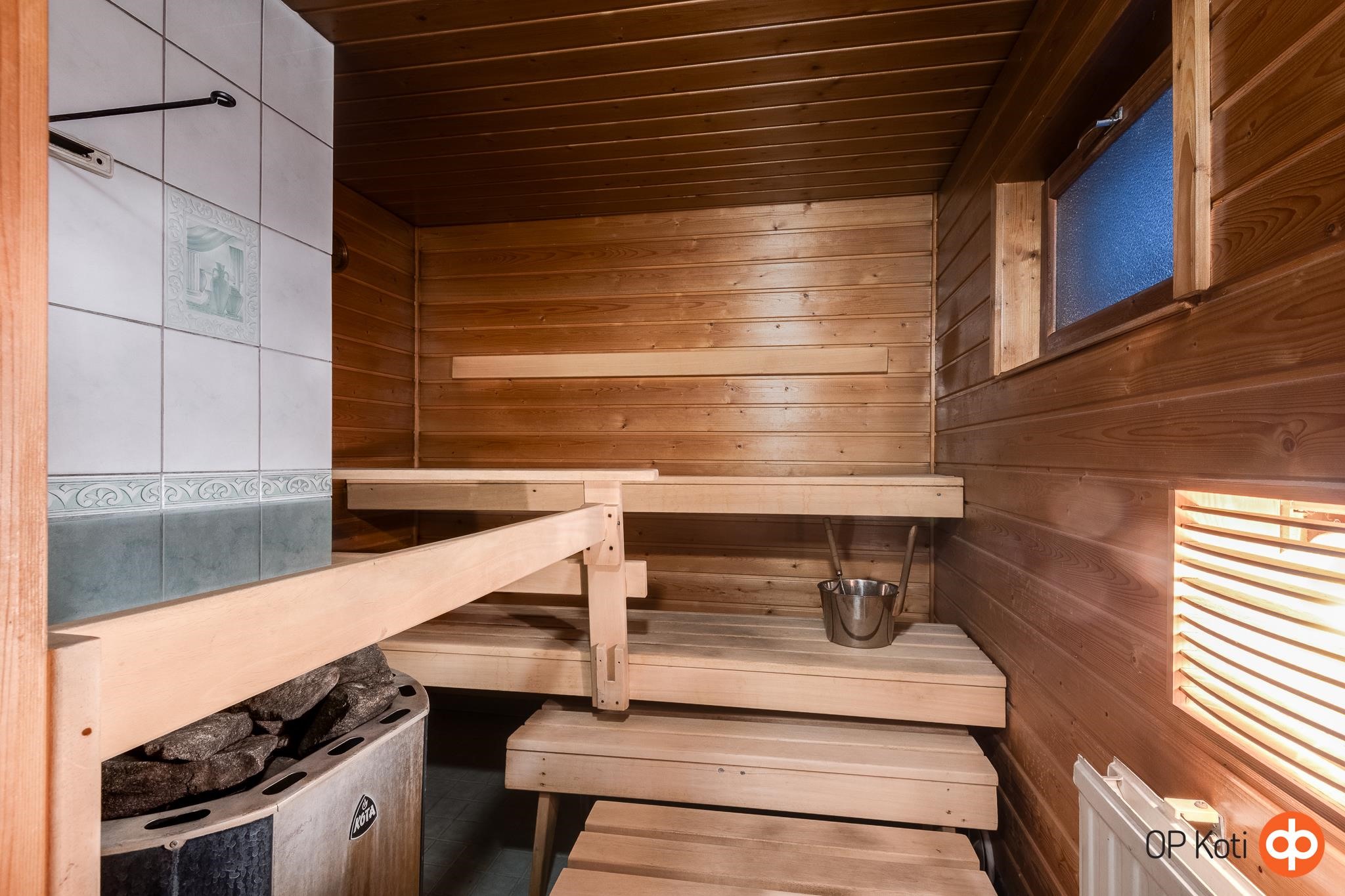 - Sauna, puukiuas, erillinen wc, suihku, peilikaappi, allaskaappi, pesukoneliitäntä, lattialämmitys, kiinteät valaisimet.