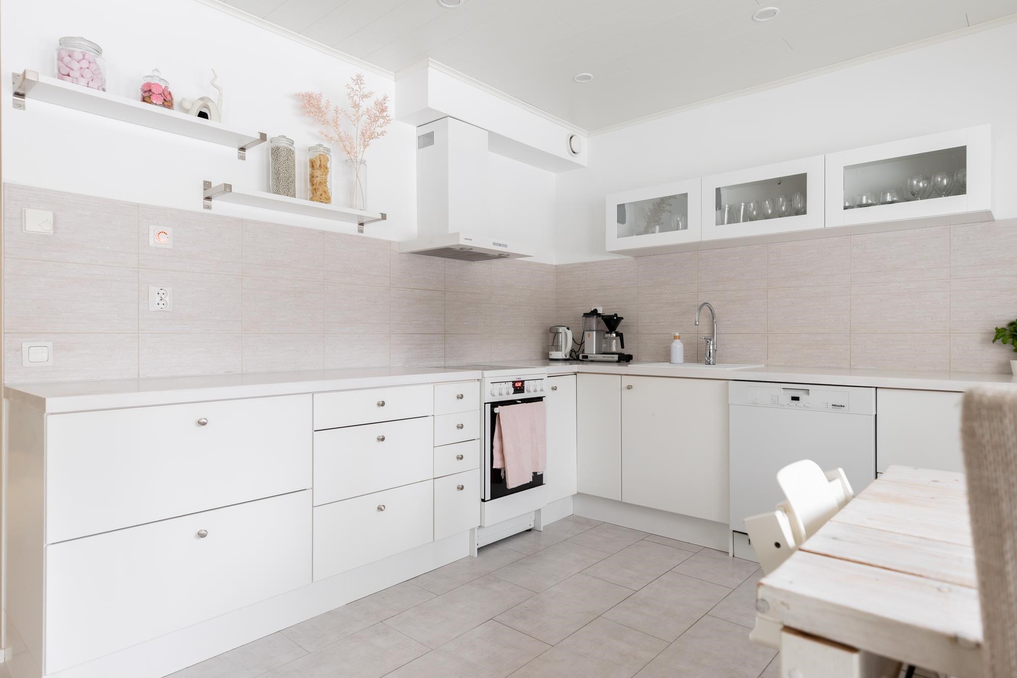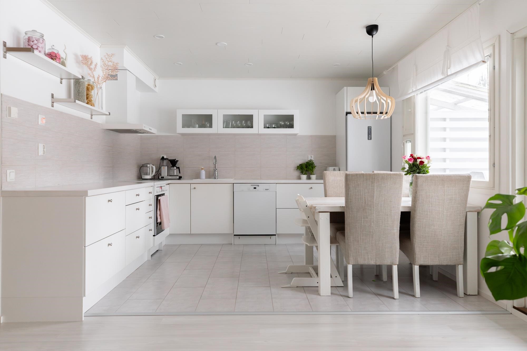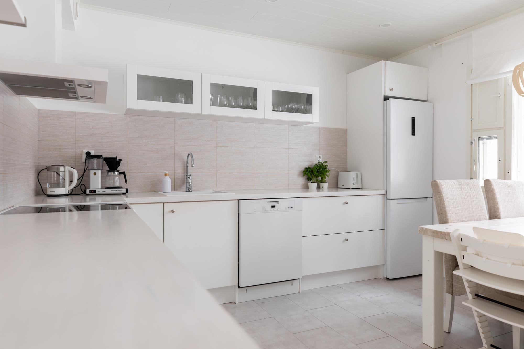 - Jääkaappipakastin, induktioliesi, liesituuletin, astianpesukone, kaapistot, kiinteät valaisimet.