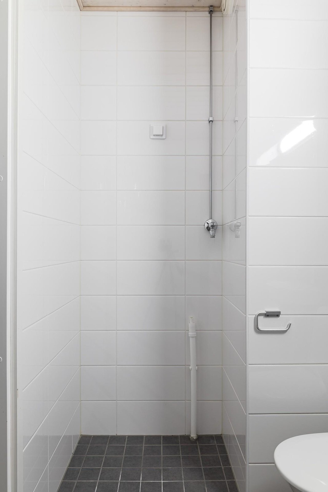 - Kylpyhuone (wc-istuin, allas, peilikaappi, suihkuseinä, suihku, pyyhekuivain, suihku), pesukoneliitäntä, kiinteät valaisimet.
