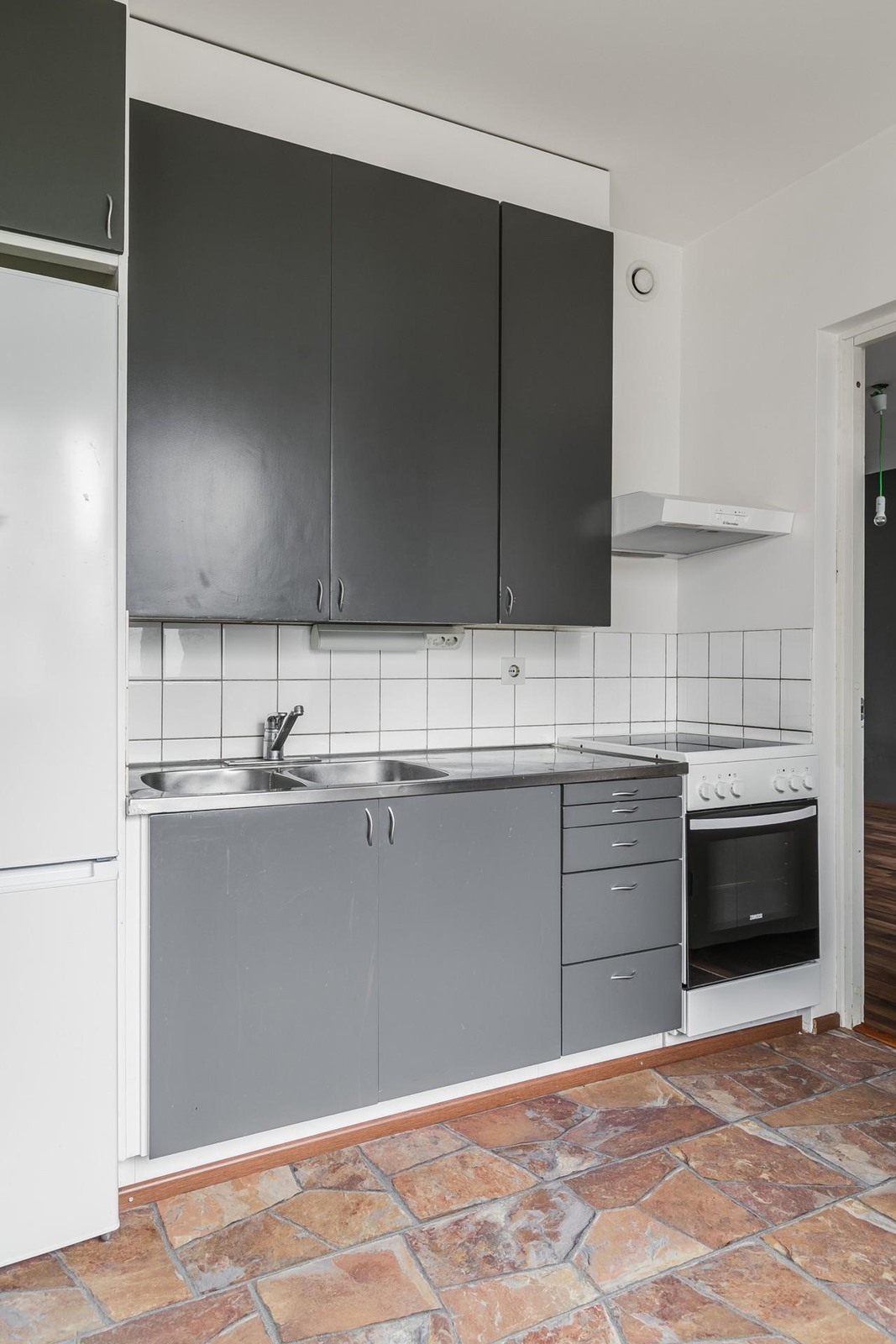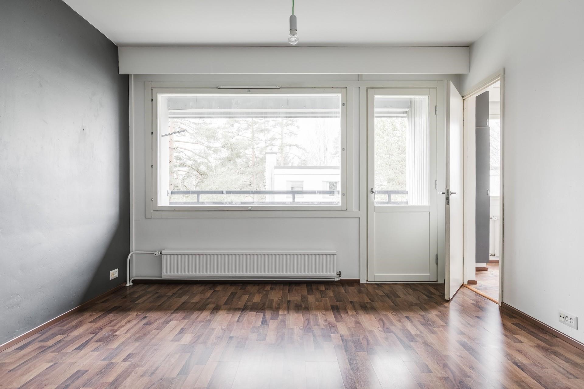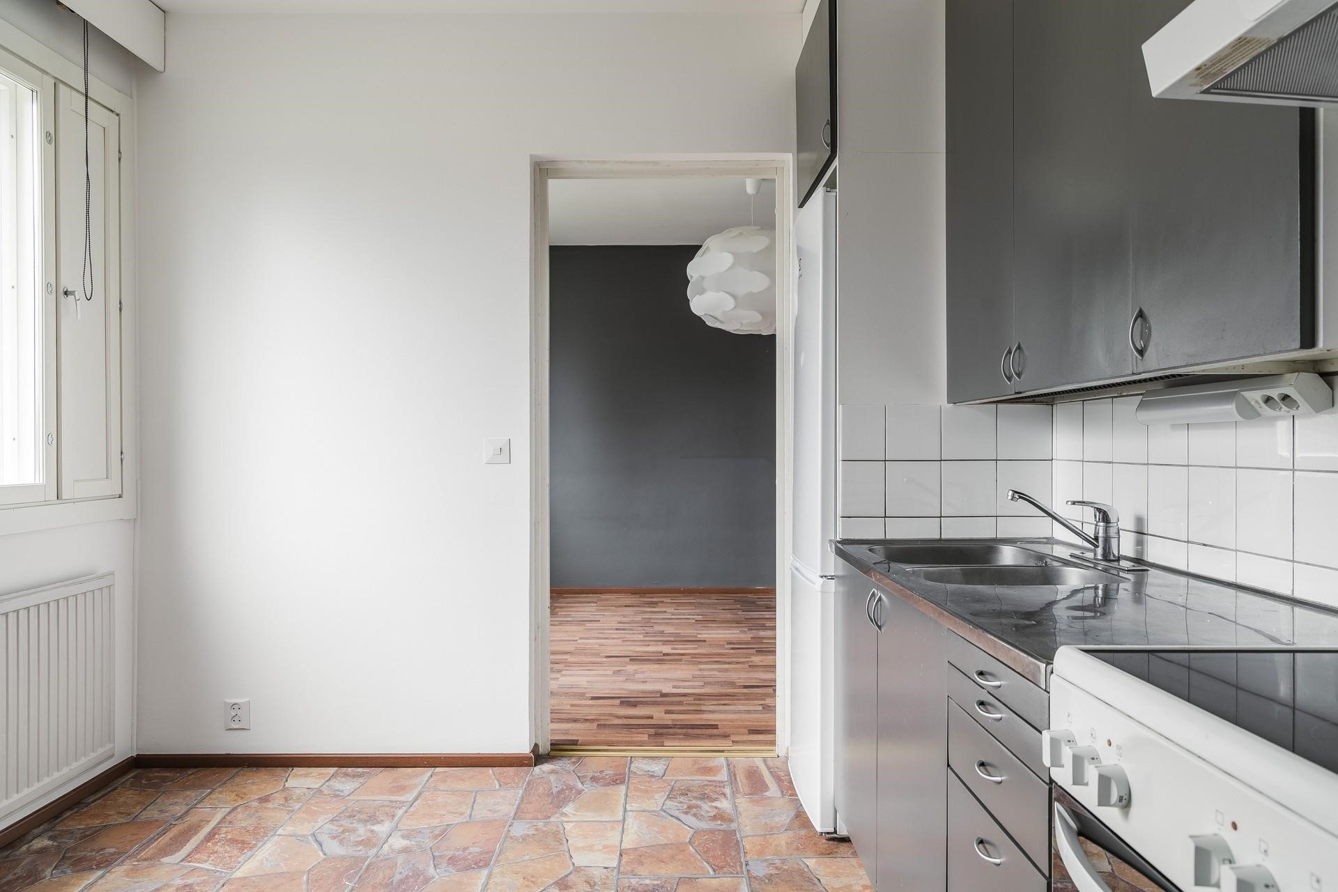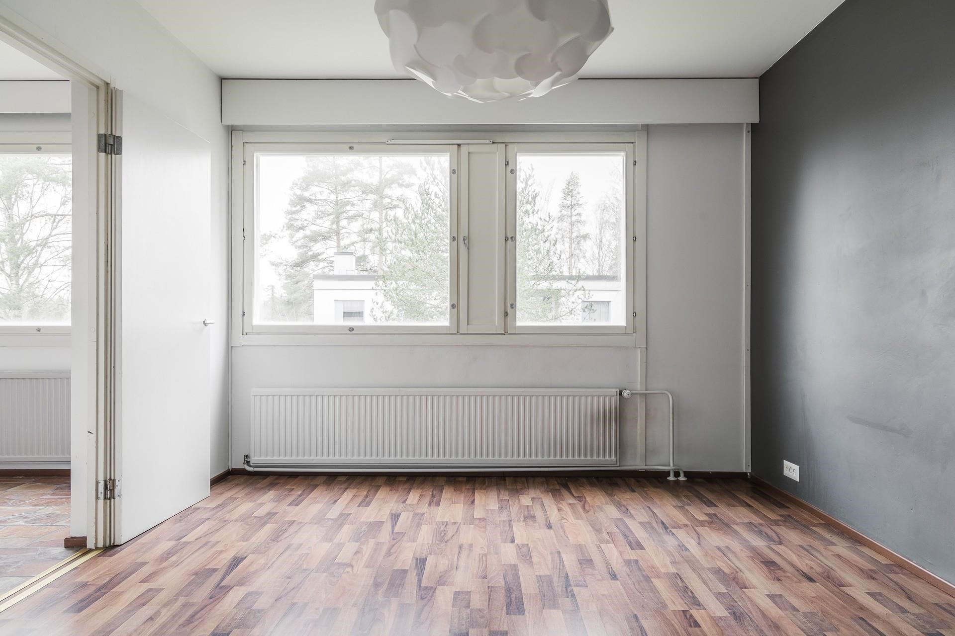 Keittiö: lattia laminaatti, seinät maali, välitila laattaa. Olohuone: lattia laminaatti, seinät maali. Makuuhuone 1: lattia laminaatti, seinät maali. Kylpyhuone: lattia ja seinät laattaa. Eteinen: lattia muovimatto, seinät maali.