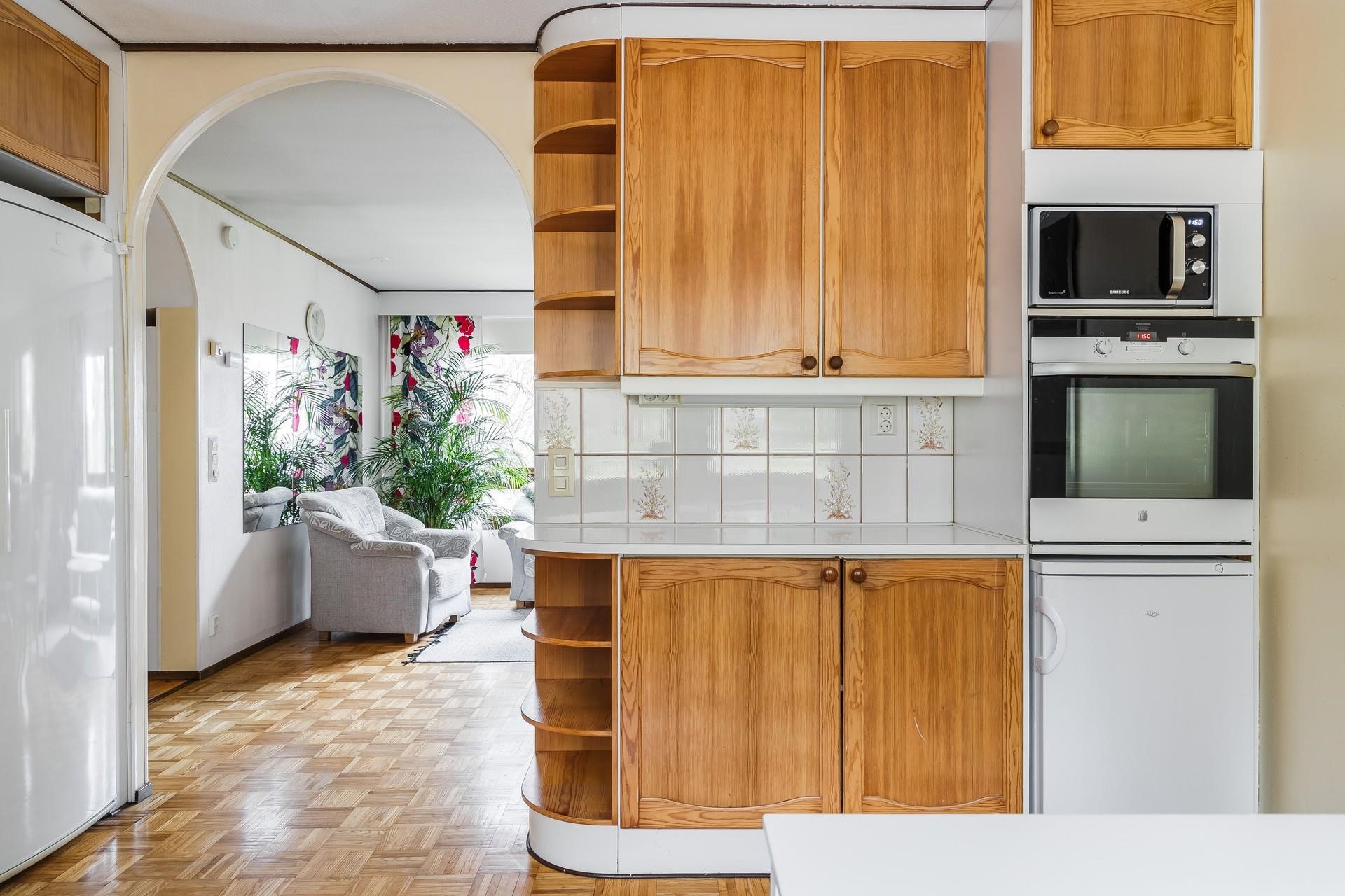 - Jääkaappi Electrolux 2023, pakastekaappi UPO 2024, erillisuuni, keraaminen liesi, liesituuletin, mikroaaltouuni, astianpesukone, kaapistot, kiinteät valaisimet.
