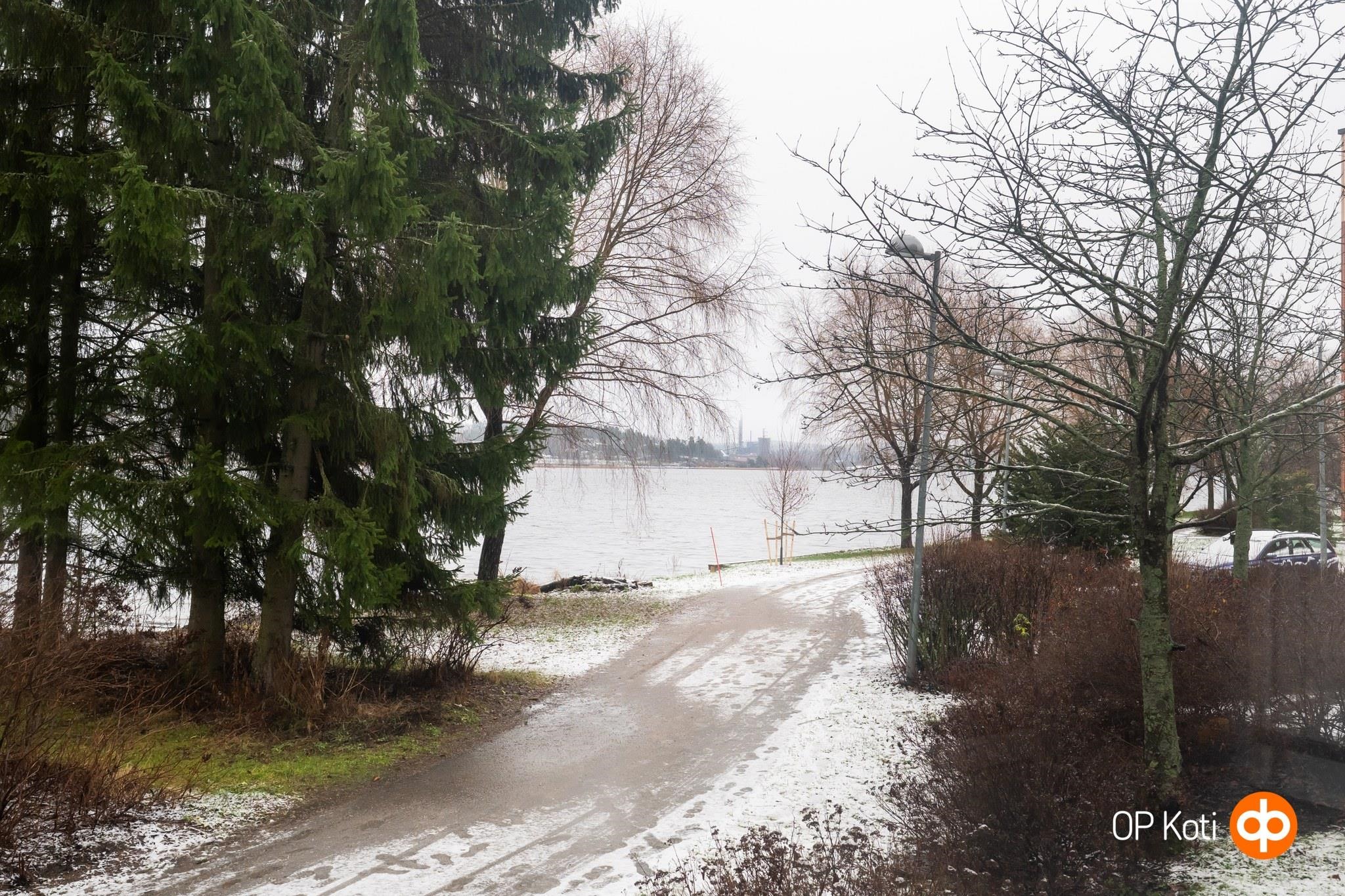 - Olohuoneesta, ruokailutilasta, makuuhuoneesta ja parvekkeelta näkymä järvelle