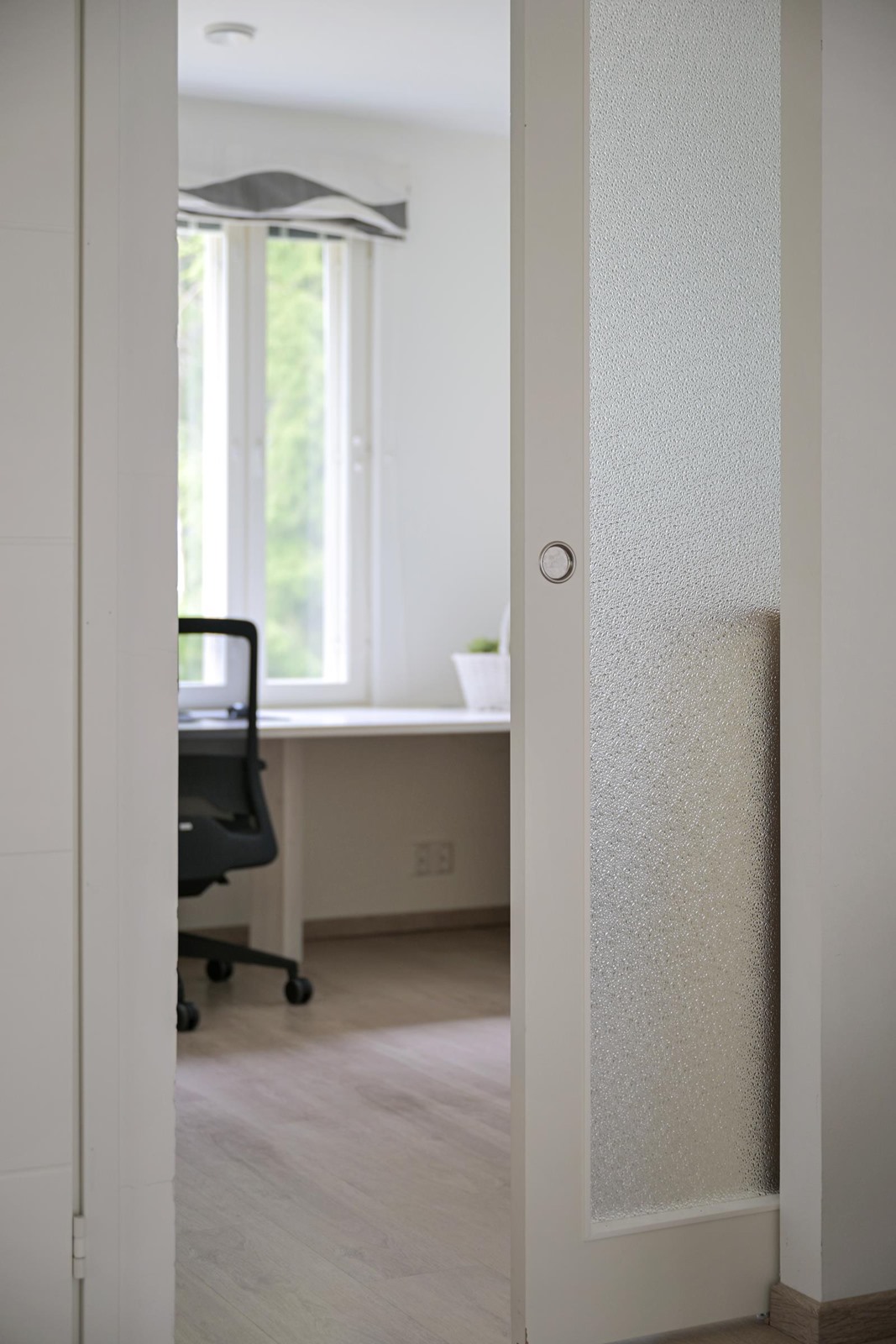 Keittiö: Laminaattipintainen lattia, maalatut seinäpinnat. Olohuone: Laminaattipintainen lattia, maalatut seinäpinnat. Makuuhuone 1: Laminaattipintainen lattia, maalatut/tapetoidut seinäpinnat. Makuuhuone 2: Laminaattipintainen lattia, maalatut/tapetoidut seinäpinnat. Makuuhuone 3: Laminaattipintainen lattia, maalatut/tapetoidut seinäpinnat. Kodinhoitohuone: Laatoitettu lattia, seinät laatta-maalipintaiset. Sauna: Laatoitettu lattia, paneloidut seinäpinnat. Kylpyhuone: Laatoitetut lattia-ja seinäpinnat. Eteinen: Laatoitettu lattia, seinät maalattu. Wc: Laatoitettu lattia-ja seinäpinnat. Kuraeteinen: Laatoitettu lattia, seinät maalipintaiset (altaan yläpuolella laatoitettu alue). Makuuhuone 4: Laminaattipintainen lattia, maalatut/tapetoidut seinäpinnat. Työhuone: Laminaattipintainen lattia, maalatut/tapetoidut seinäpinnat.