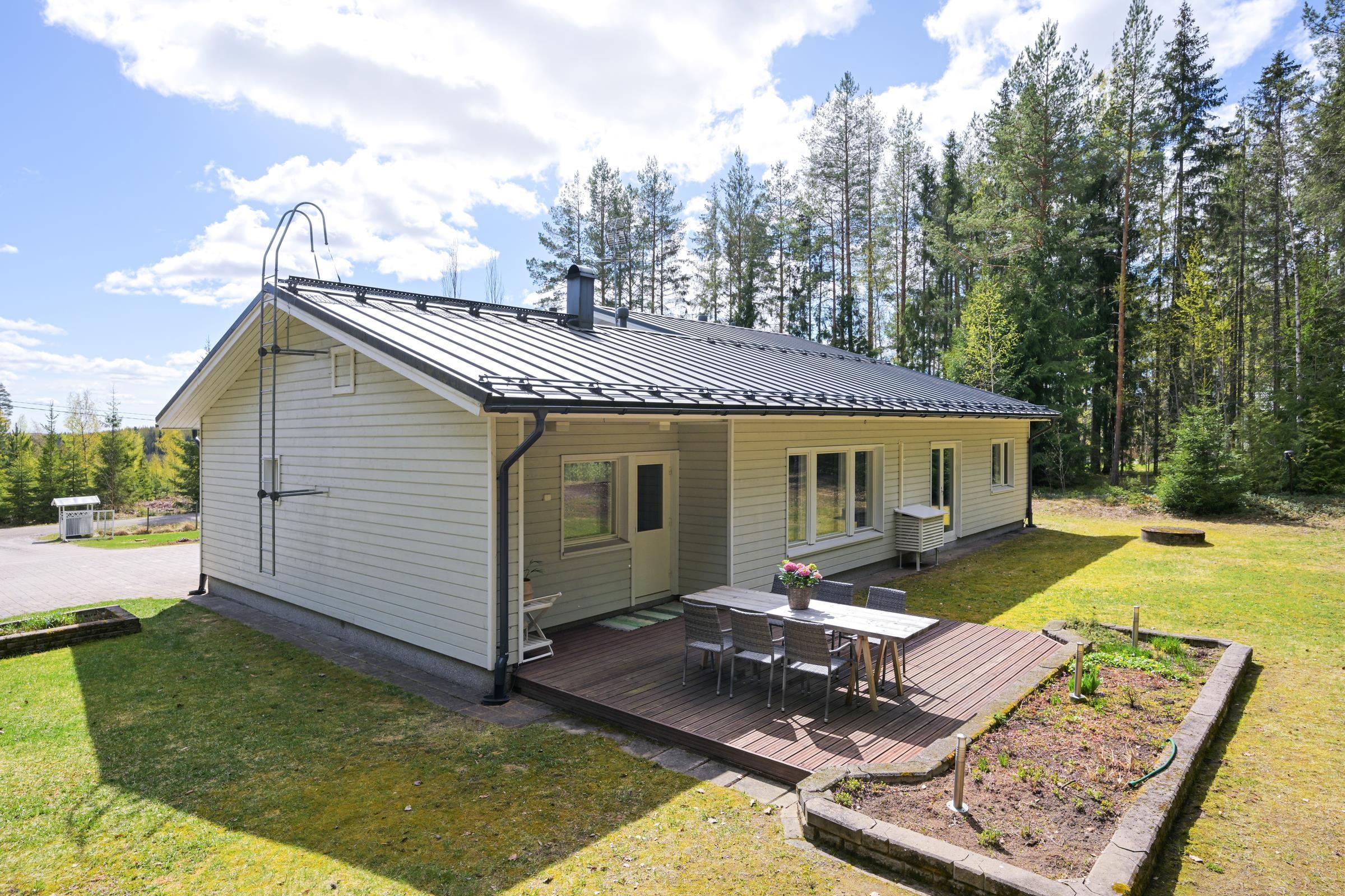 Pihapiiri tarjoaa omaa rauhaa ja tilaa, metsään rajoittuva tontti 6 800m2, istutuksia ja tilava terassi, jossa on helppo nauttia kesäpäivistä.