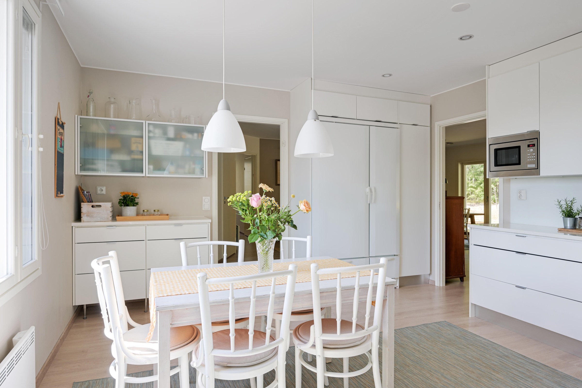 Lisäksi käytössäsi on autotalli ja varastot, jotka tuovat runsaasti säilytystilaa. Sisätiloissa on käyttöullakko, kaksi vaatehuonetta ja hyvin kaapistoja.