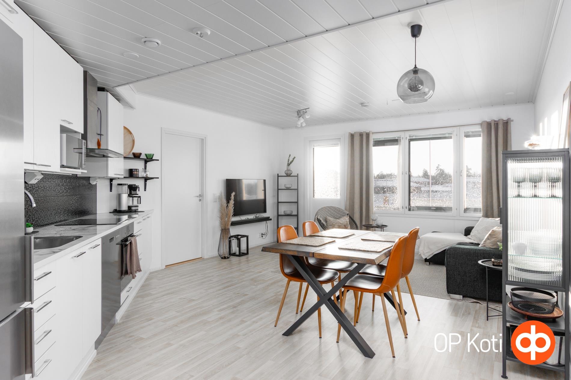 Asunnossa on nuorekas ilme ja tyylikkäät, ajattomat pintamateriaalit. Koko huoneistossa on helppohoitoiset ja modernit vinyylilattiat.
