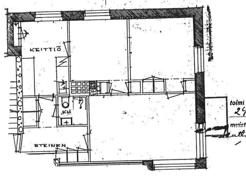 - Jenkkikaappi, lattialiesi, liesituuletin, astianpesukone, kaapistot, kiinteät valaisimet.
