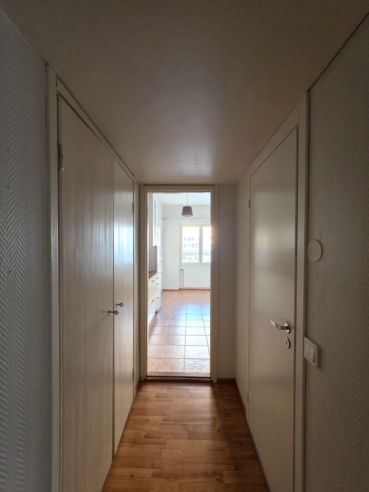 Asunnossa on 70,5 m² pinta-alaa, ja se sijaitsee kerrostalon toisessa kerroksessa. Makuuhuoneiden lisäksi löydät tilavan keittiön, josta löytyy kaikki tarvittavat varusteet kuten jenkkikaappi ja astianpesukone, sekä kaapistot. Kylpyhuone on uusittu putkiremontin yhteydessä ja varustettu lattialämmityksellä sekä pesukoneliitännällä. Lattiat ovat laminaattia ja keittiössä laattaa, seinät on tapetoitu tai maalattu.