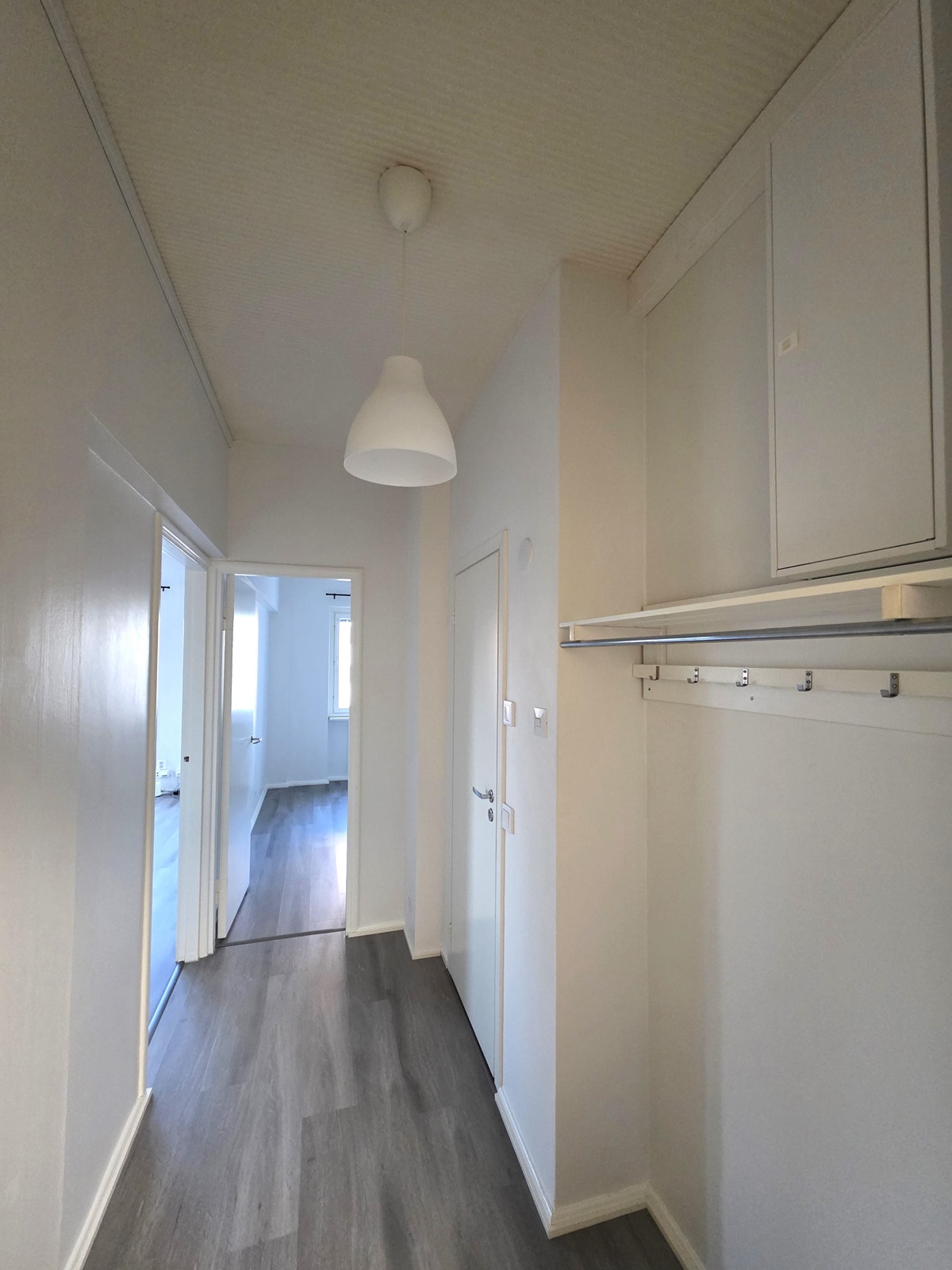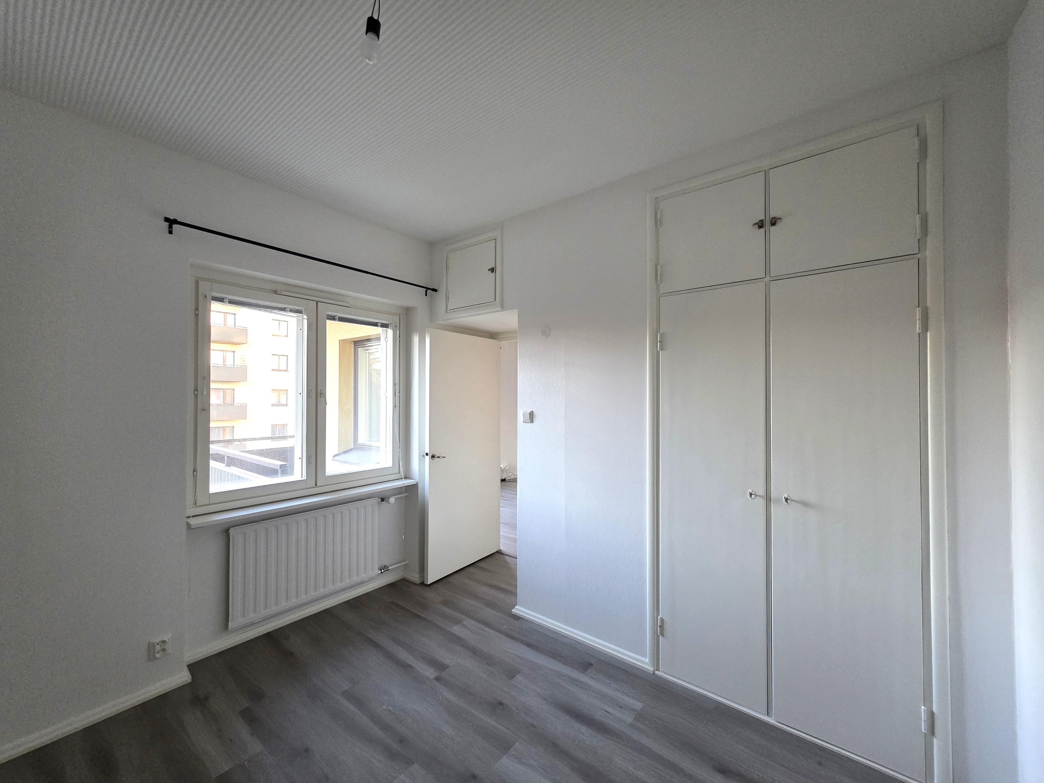 Lattiat: vinyylilankku. Seinät: tapetti ja maali.