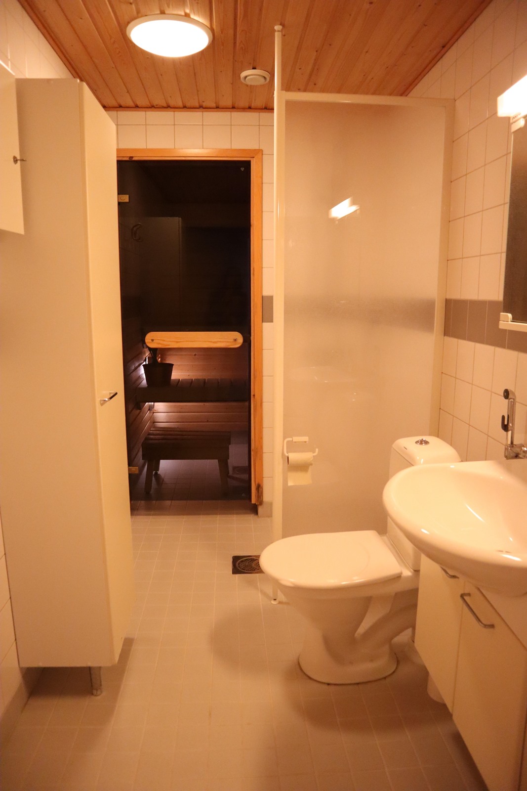 - Sauna, sähkökiuas kiuas uusittu 2019, kylpyhuone, peilit, allaskaappi, pesukoneliitäntä, lattialämmitys.