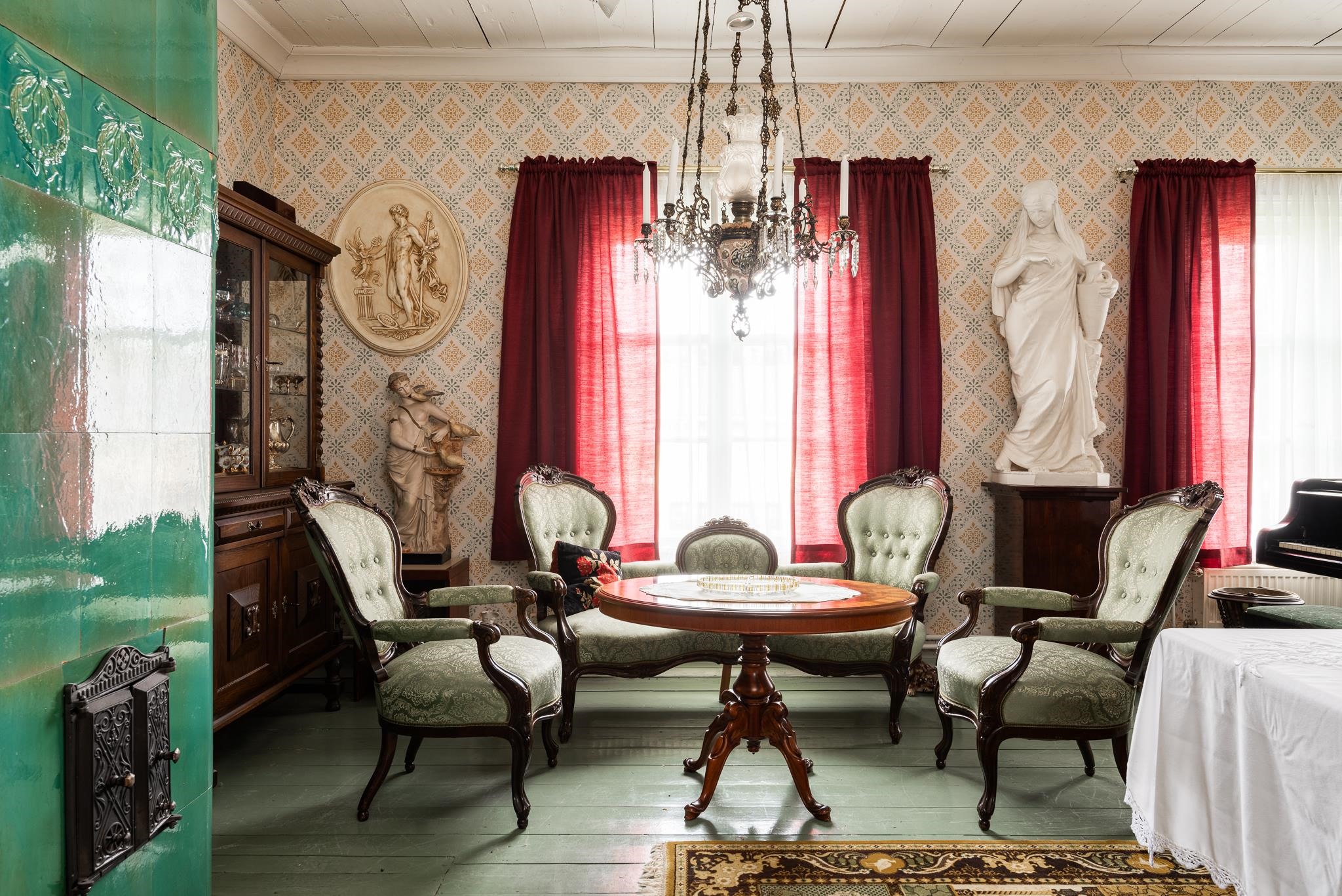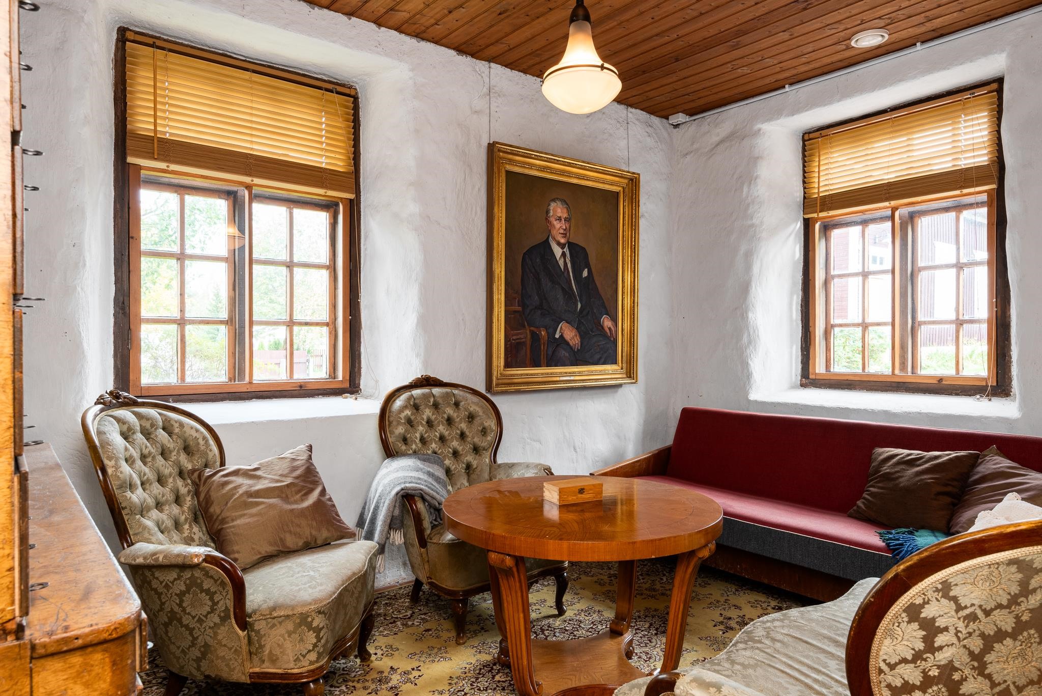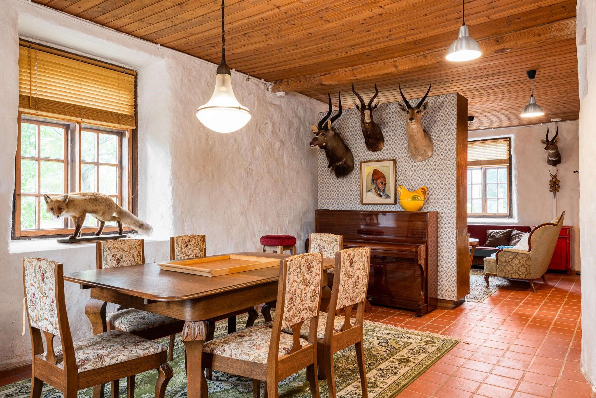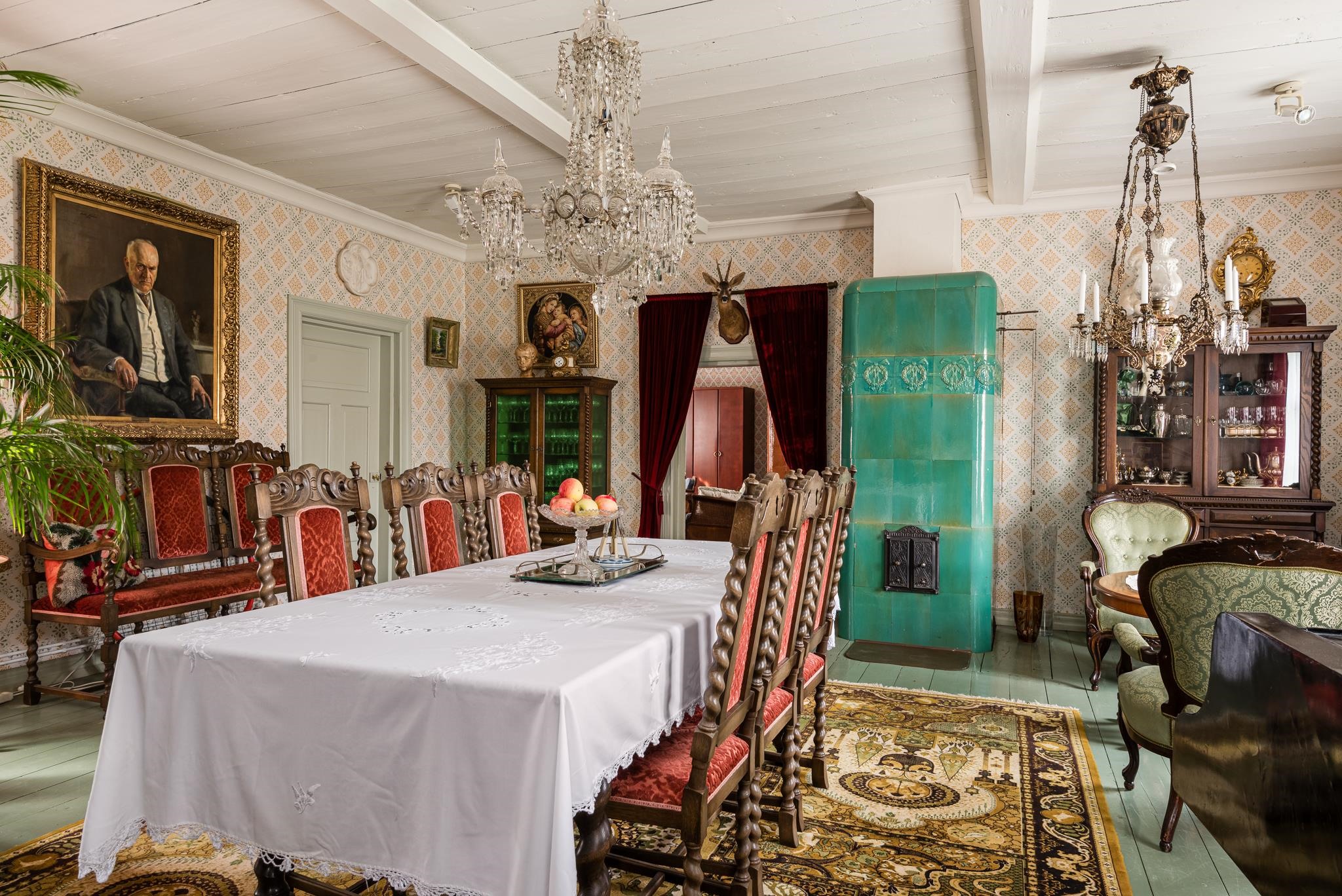 Bonuksena pienemmästä talousrakennuksesta löytyy vieraille täyden palvelun renkitupa - oma huone ja kylpyhuone. Rakennuksessa on myös paljon muita, kylmiä tiloja, kaikki aikakautensa asussa.
