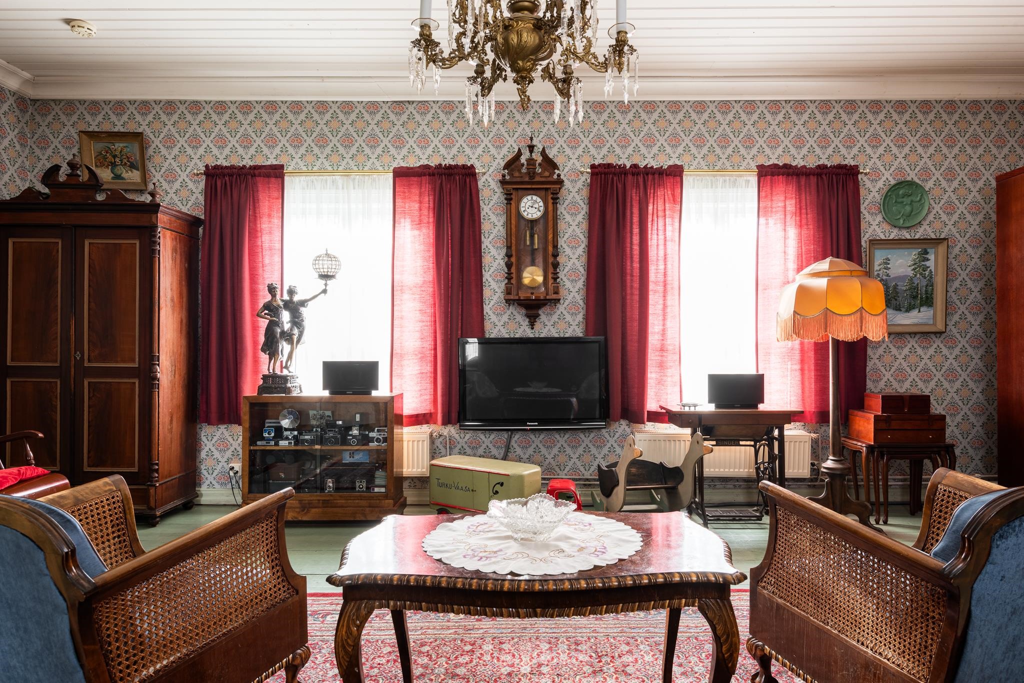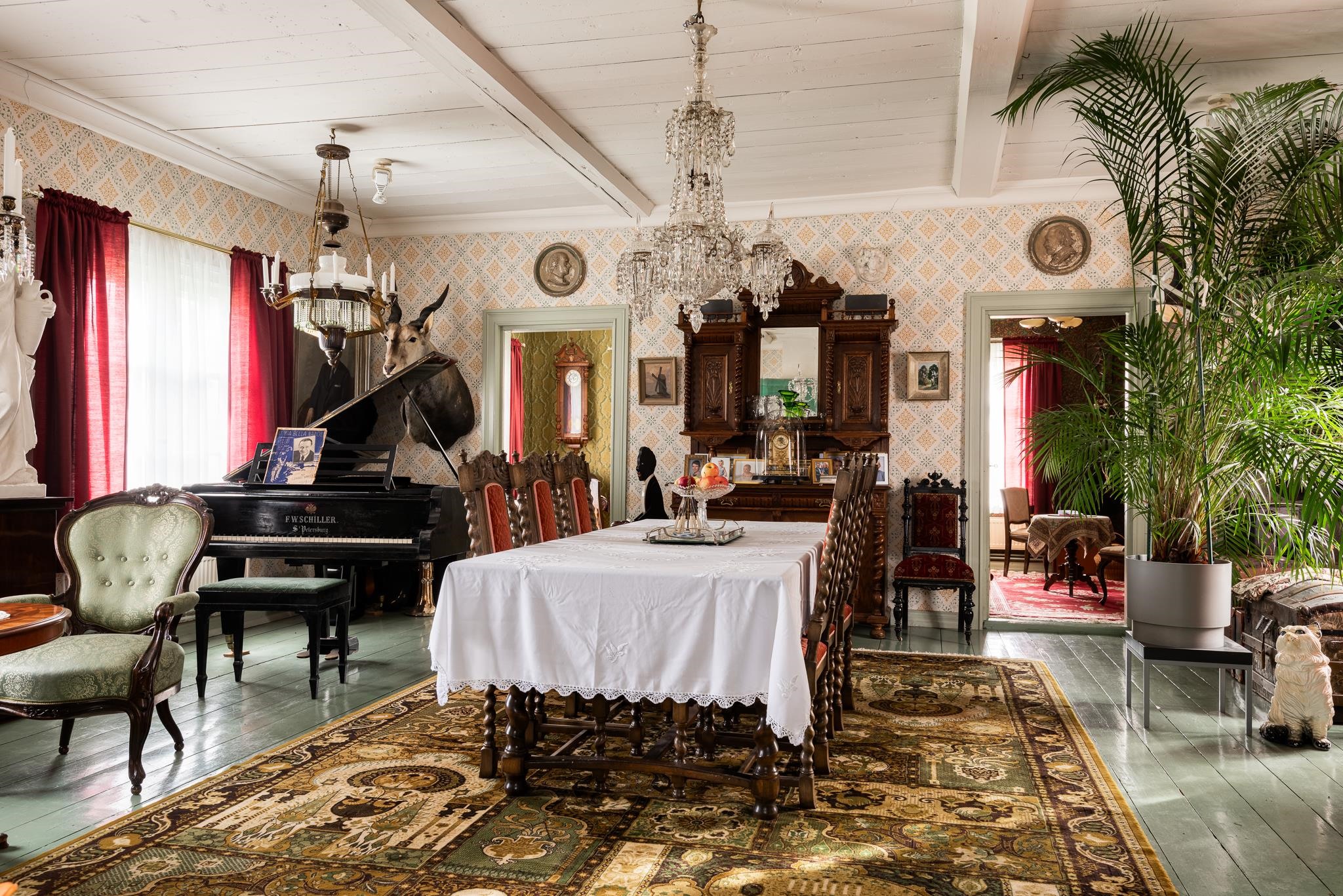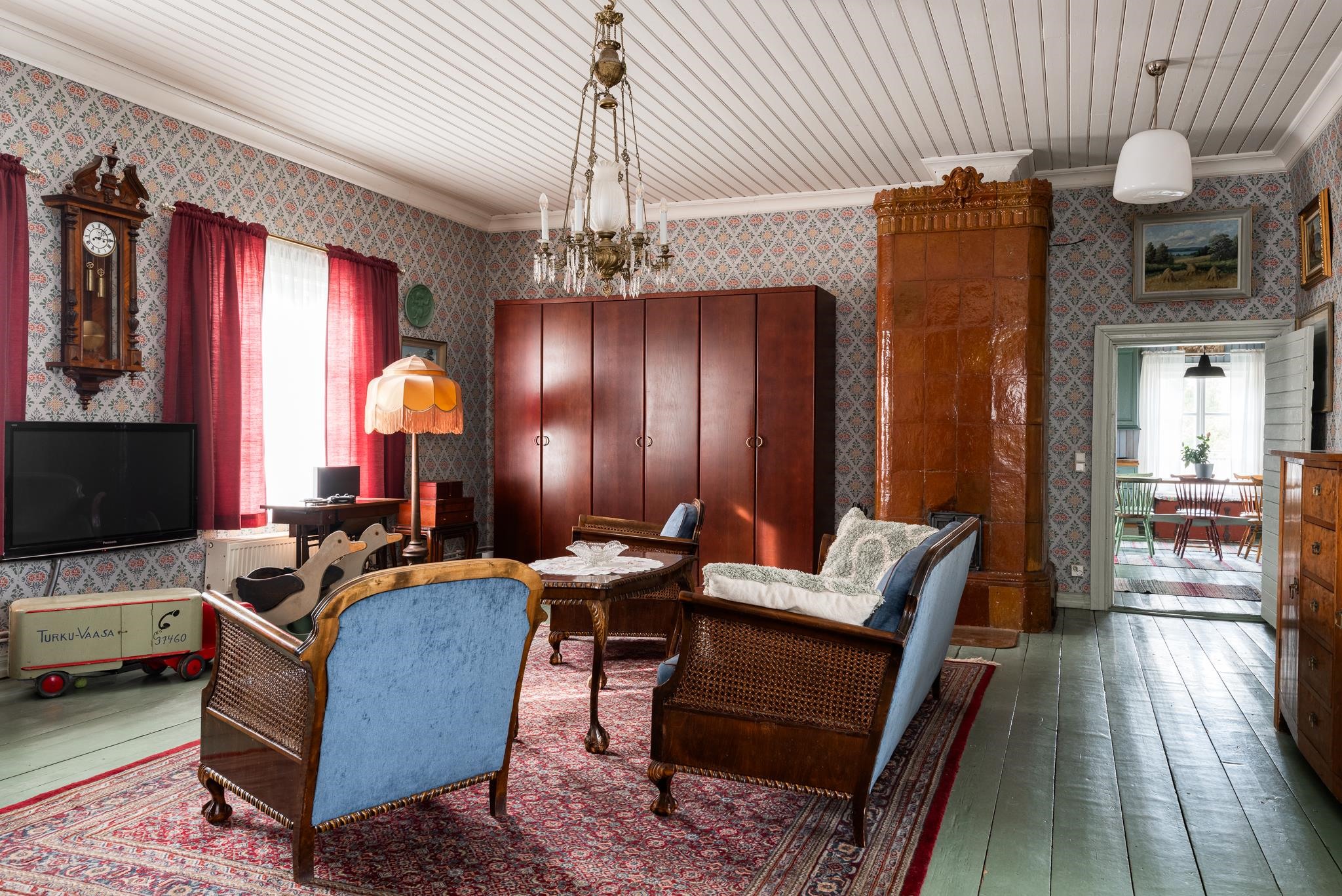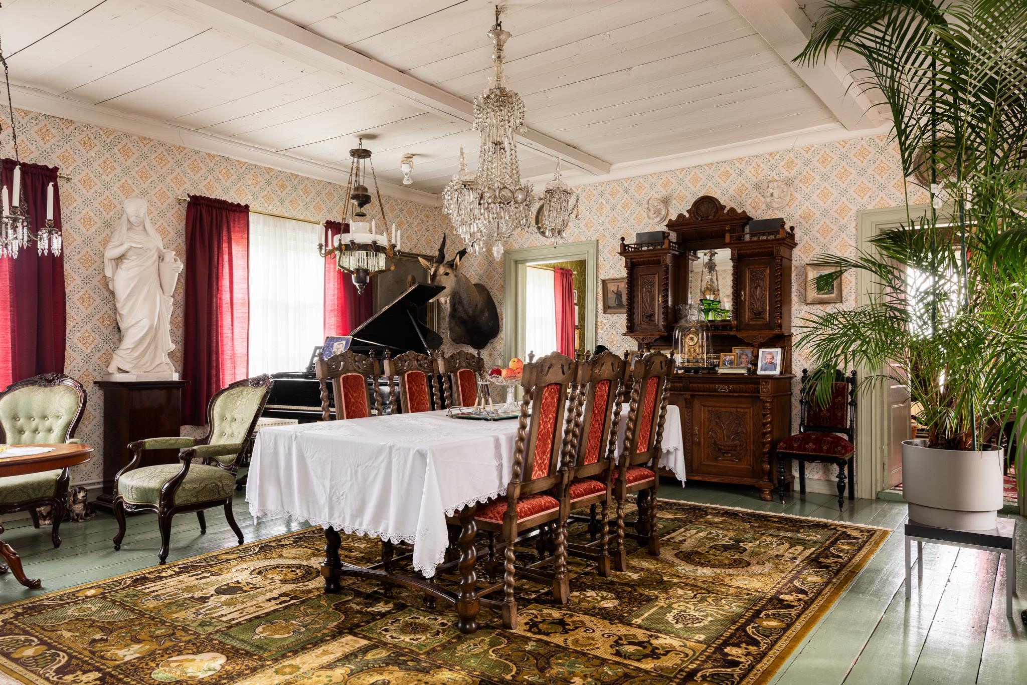 Bonuksena pienemmästä talousrakennuksesta löytyy vieraille täyden palvelun renkitupa - oma huone ja kylpyhuone. Rakennuksessa on myös paljon muita, kylmiä tiloja, kaikki aikakautensa asussa.
