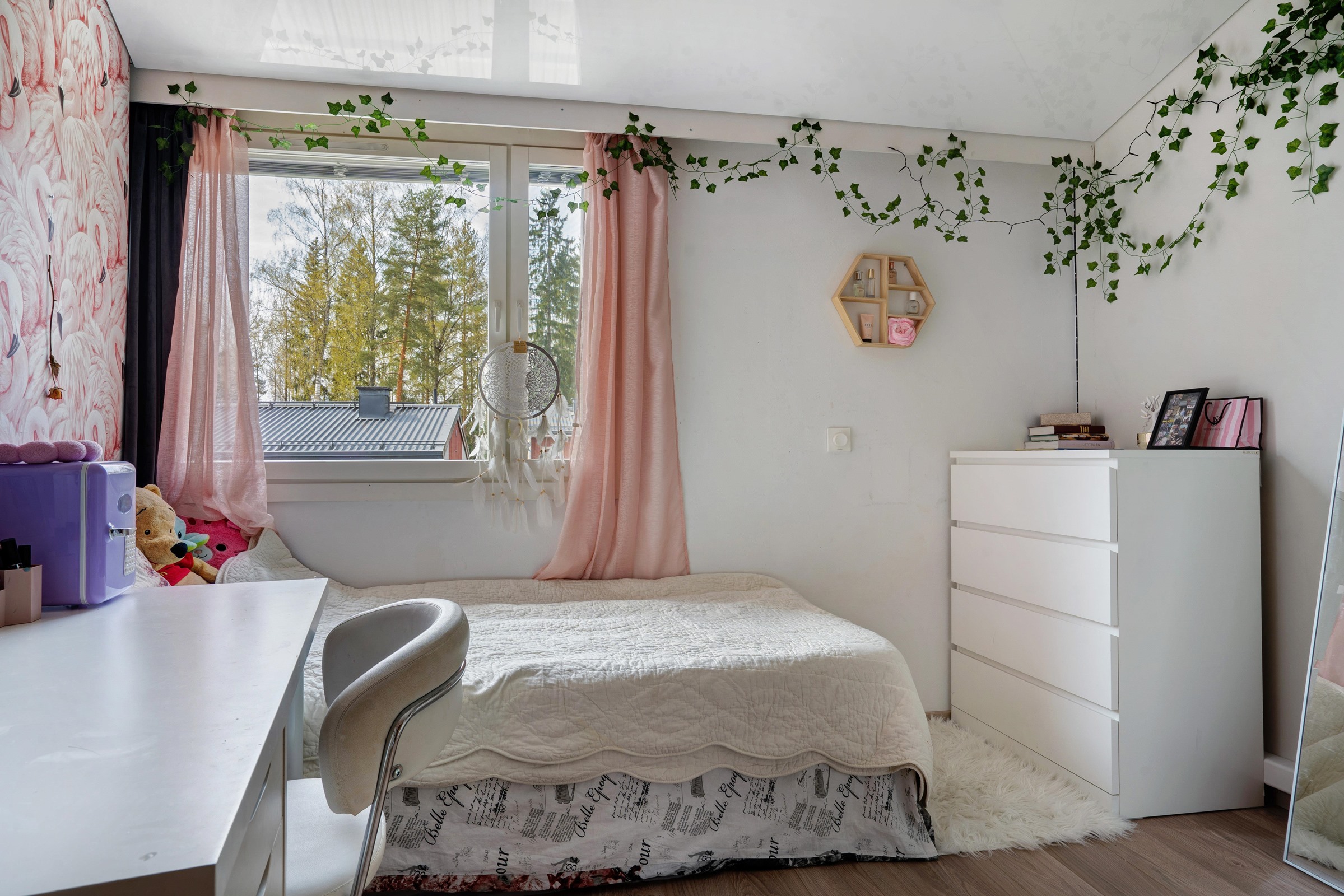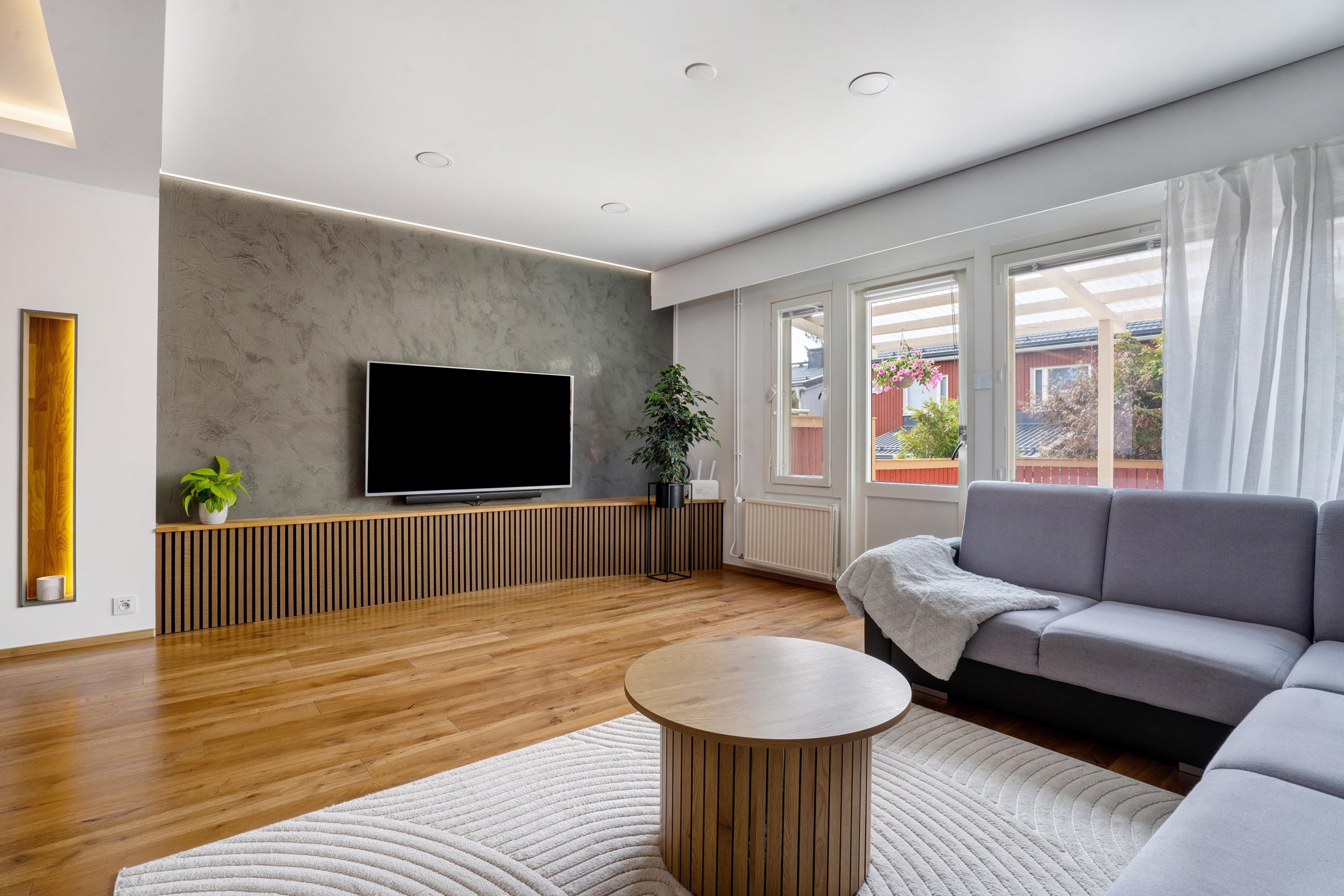 Muuttovalmis ja näyttävä kolmen makuuhuoneen koti on kauttaaltaan uudistettu laadukkailla materiaaleilla ja hyvällä maulla ammattilaisen toimesta. Tämä siisti koti on kahdessa kerroksessa, alakerrassa on moderni keittiö, laajennettu wc sekä näyttävä olohuone seinäupotuksineen ja valoineen. Olohuoneen katto on Stetch-kangasta led-nauhalla, sohvaseinä akustopaneelia ja lattia kunnon tammiparkettia. Olohuoneesta pääset suojaiselle ja laadukkaasti rakennetulle, suojaiselle 34m2 terassille. Keittiö on kaikin puolin upea ja varustettu kaikin puolin laadukkailla laitteilla mm. induktiotaso liesituulettimella. Alakerran uudistettu wc on samaa upeaa työtä ja laatua, putket uusittu ja pinnat mikrosementtiä. Yläkerran uudistetuissa makuuhuoneissa katot ovat Stetch-kangasta led-nauhalla, yläkertaan menevät betoniportaat päällystetty Non-slip mikrosementillä. Yläkerran kylpyhuone ja sauna kaikkineen on myös uusittu putkineen moderniksi, pinnat mikrosementtiä. Taloyhtiön pieni kuntosali on välittömästi asunnon vieressä, sinne pääset urheilemaan heti kotiovelta ja muutoinkin viereiset hienot metsät ja ulkoilureitit ovat vierelläsi. Taloyhtiön keskellä on suojaisa ja tilava leikkipaikka lapsille temmeltää. Taloyhtiö on hyvin ylläpidetty, isompia remontteja ei ole suunnitteilla lähivuosina. Taikatie sijaitsee omassa rauhassaan päättyvän pikkutien päässä, alue on todella rauhallinen ja siisti kaikin puolin. Kävelymatkan päässä on koulut, päiväkodit, lähikauppa ja Keravan kaikki palvelut upeine harrastusmahdollisuuksineen. Asunnolta on muutaman sadan metrin matka bussiyhteydelle.