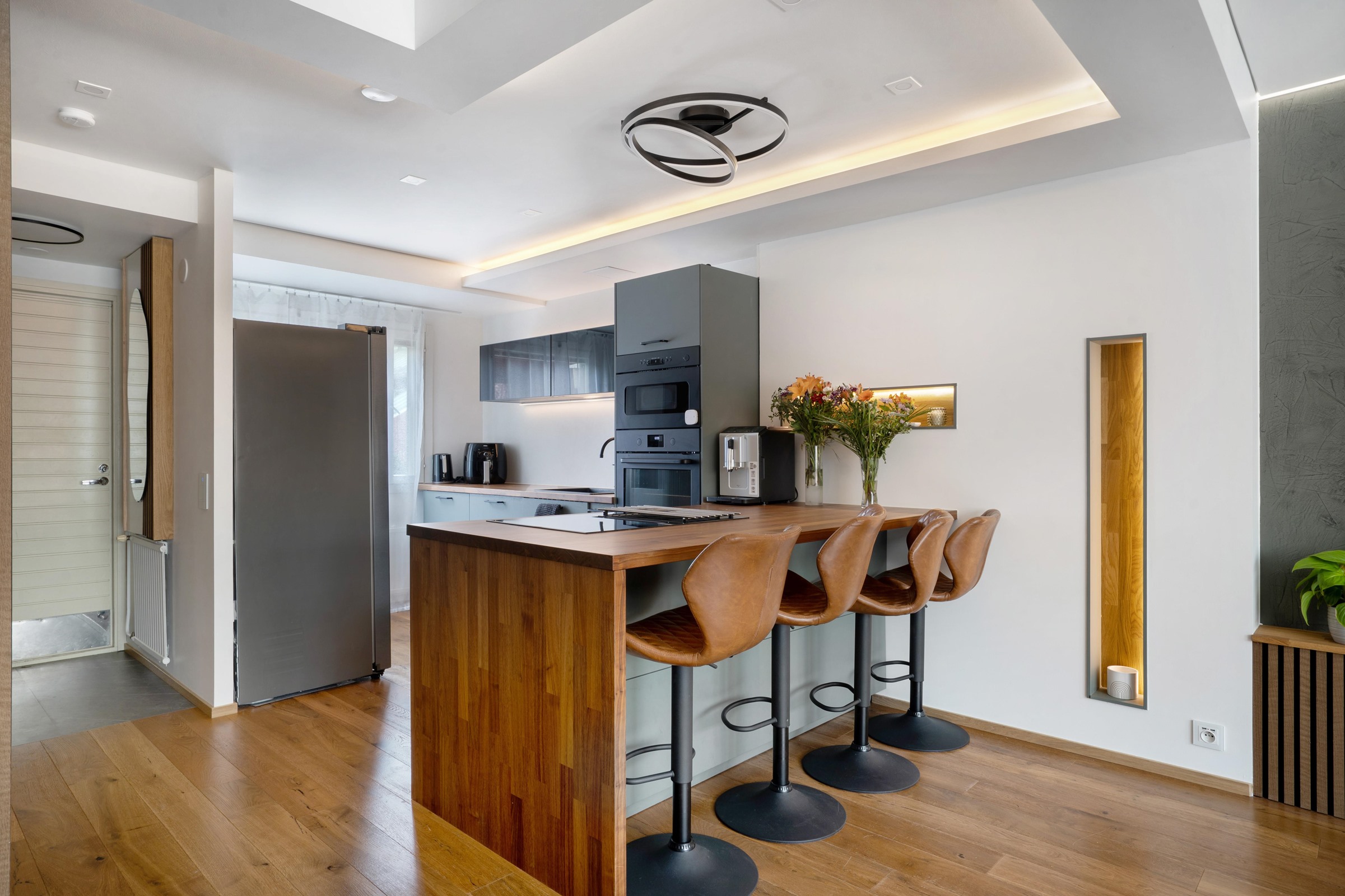 - Jääkaappipakastin 2022, sis. jääpalakone, erillisuuni 2022, induktioliesi 2022, integroitu liesituuletin, liesituuletin indukiolieteen integroitu, mikroaaltouuni 2022, astianpesukone 2022, kaapistot, kiinteät valaisimet. Työtasovalot . Keittiö täysin uusittu 2022