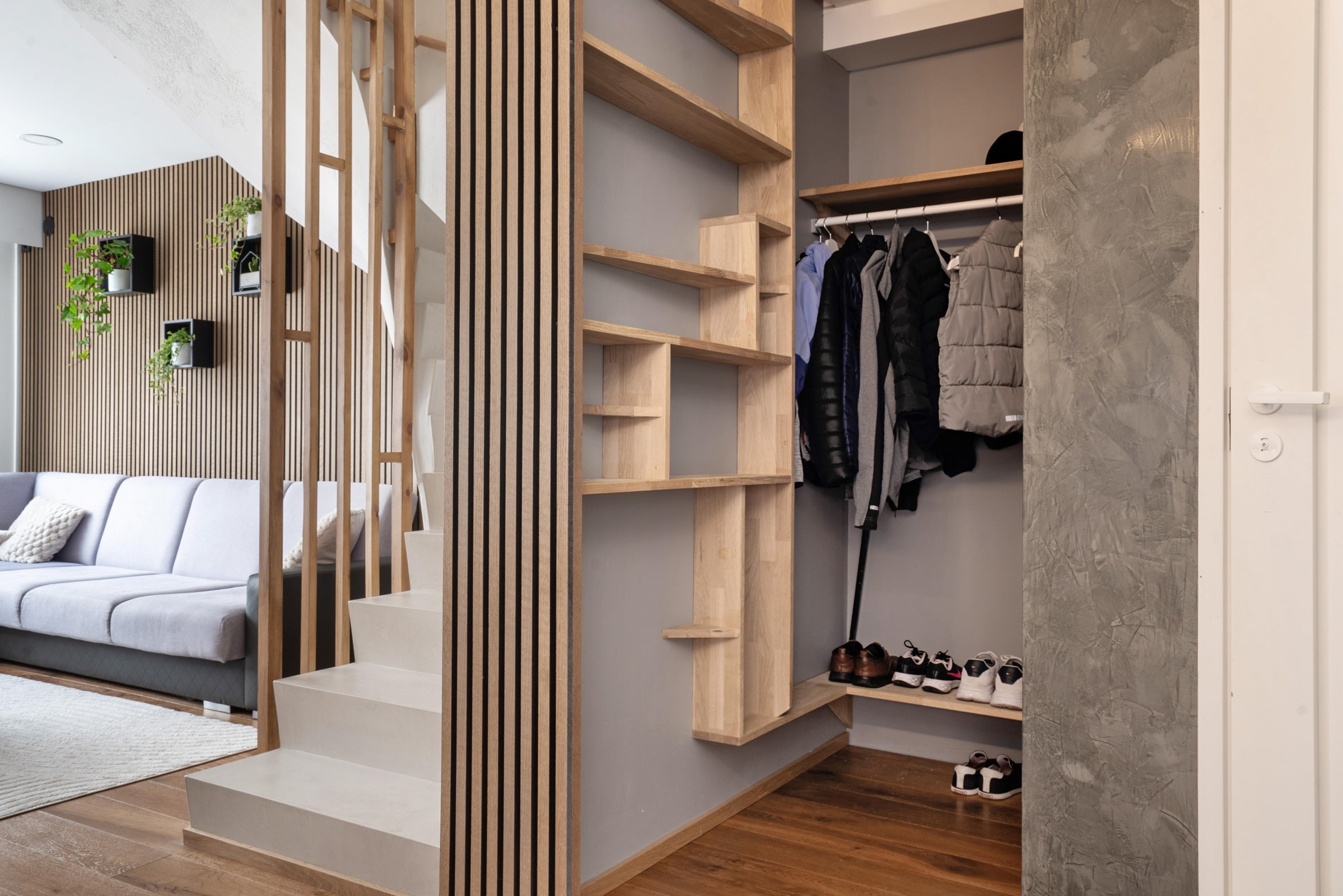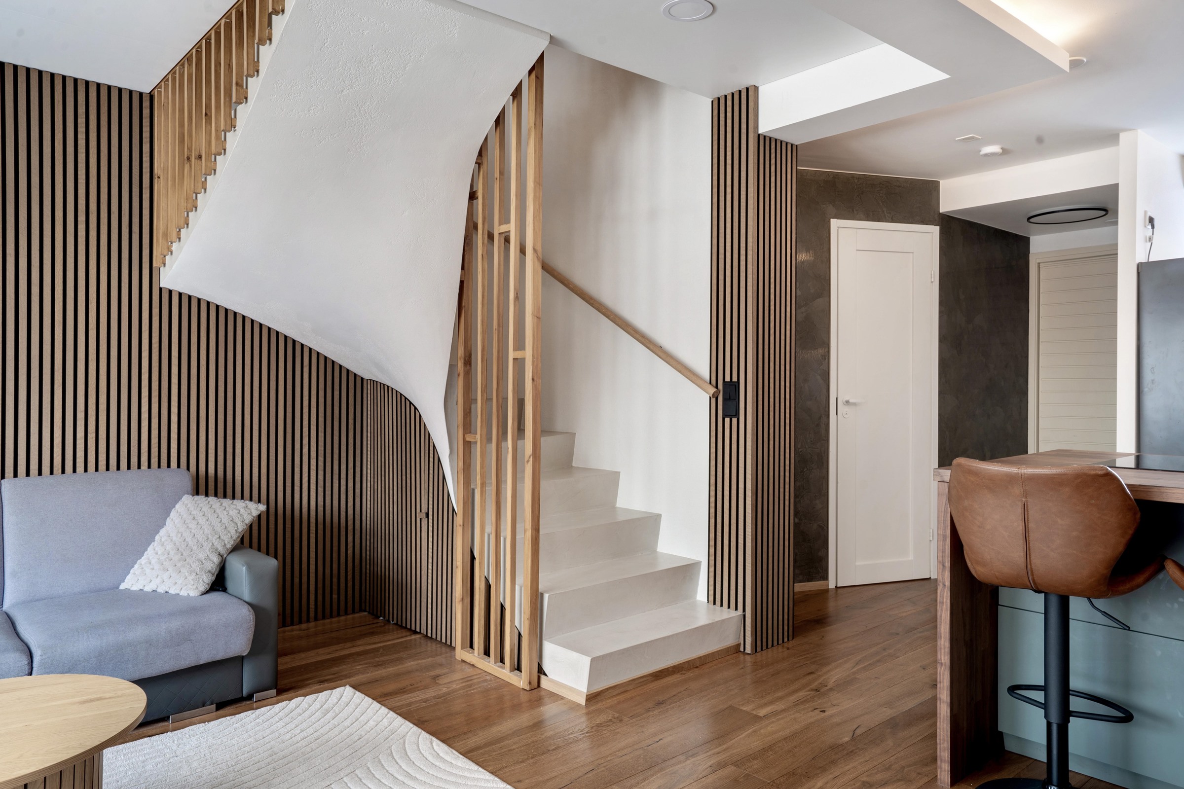 Keittiö: Tammiparketti, seinät maalattu, osin mikrosementti. Olohuone: Tammiparketti, seinät maalattu, osin tammi-akustopaneli, osin mikrosementti.. Makuuhuone 1: Makuuhuone 1: seinät maalattu, osin tapetti, osin mikrosementti.. Makuuhuone 2: Makuuhuone 1: seinät maalattu, osin tapetti, osin mikrosementti.. Makuuhuone 3: Makuuhuone 1: seinät maalattu, osin tapetti, osin mikrosementti.. Sauna: Lattia mikrosementti, seinät paneli.. Kylpyhuone: Lattia ja seinät mikrosementti, katto musta Stretch.. Eteinen: Lattia laatta, seinät maali.. Wc: Lattia mikrosementti, seinät maali ja mikrosementti.. Portaat: Sementti, pinta non-slip mikrosementti..