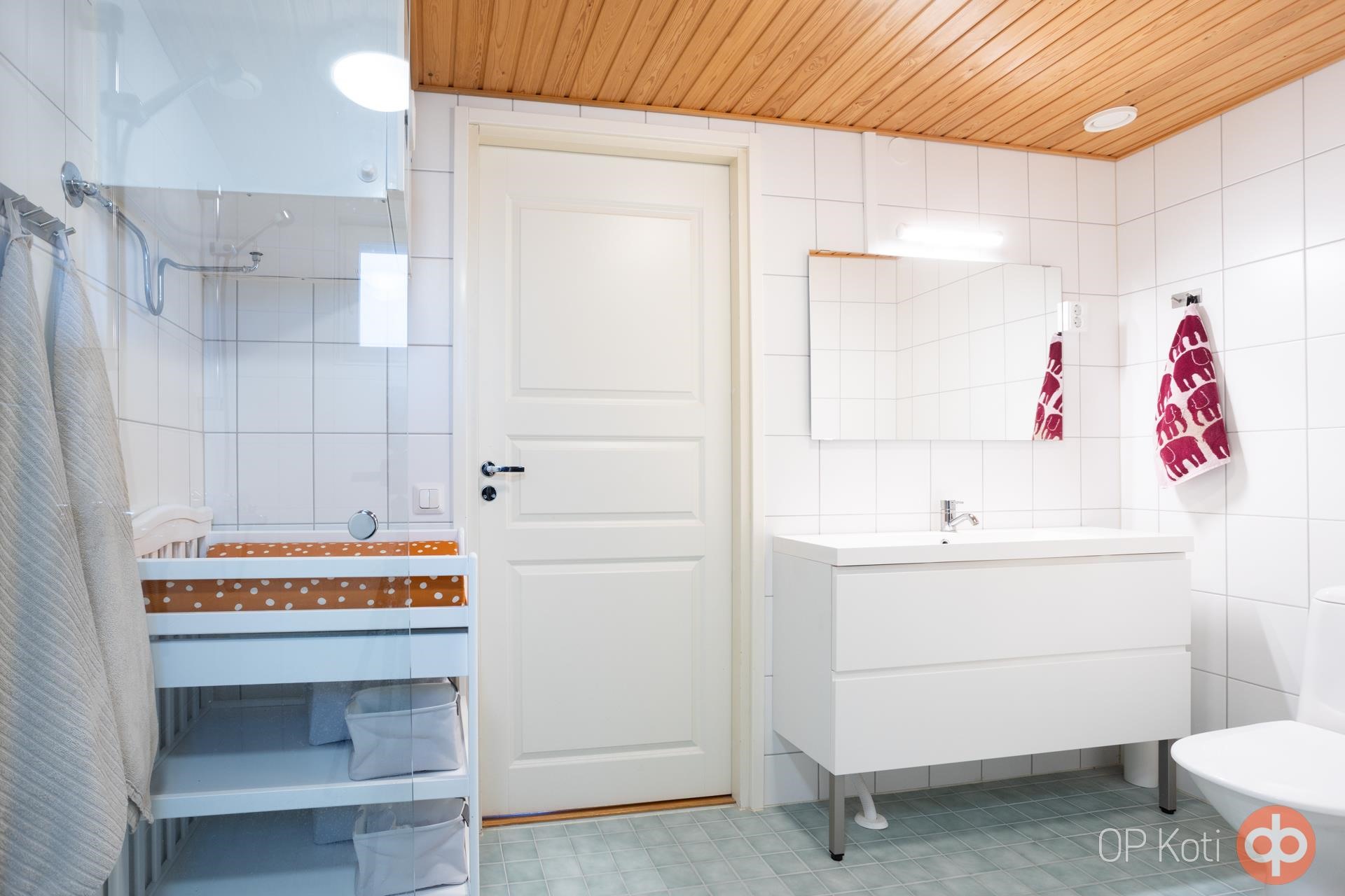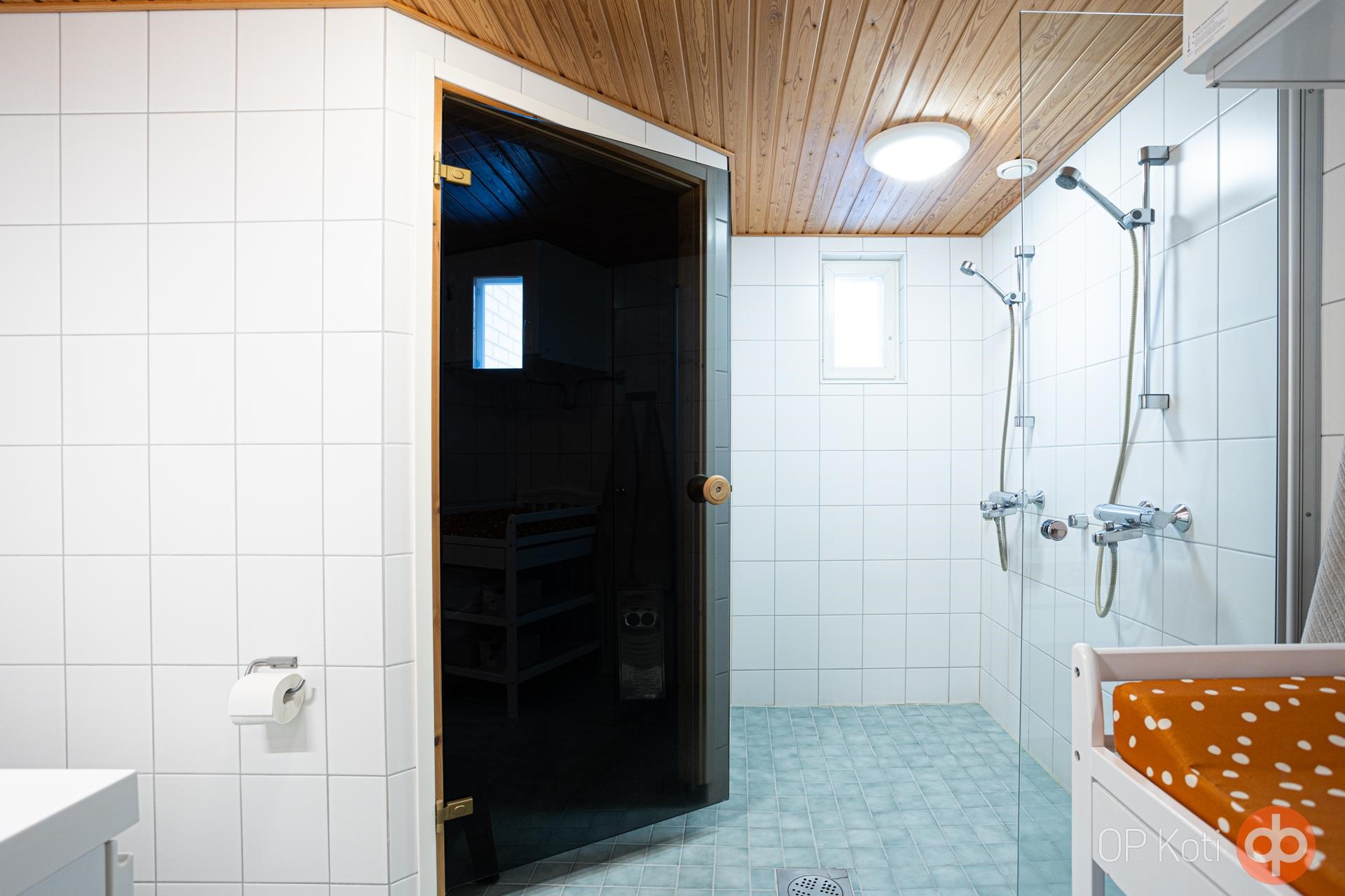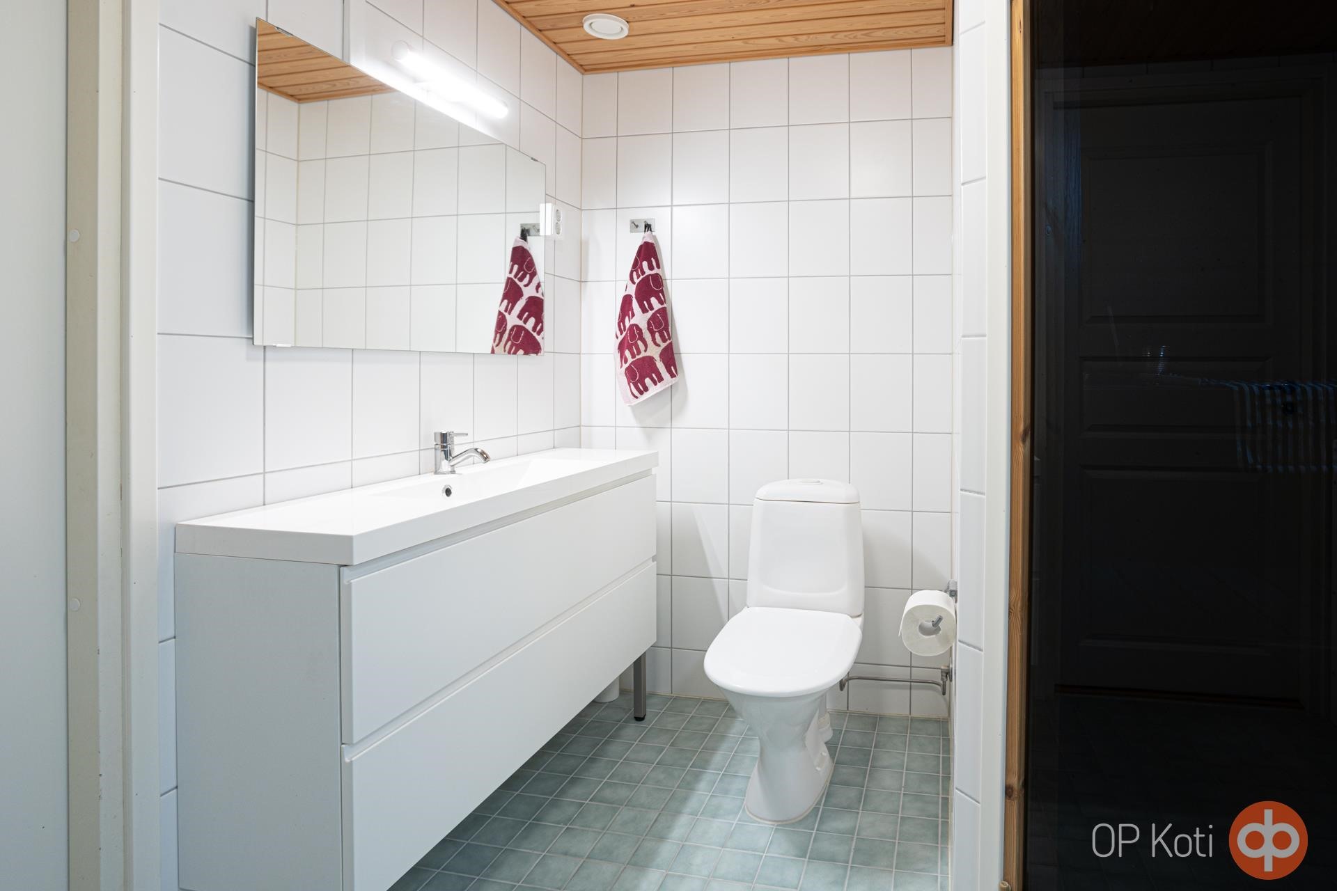 - Sauna, sähkökiuas, kylpyhuone, erillinen wc, suihku 2 kpl, suihkuseinä, peilit, peilikaappi, allaskaappi, pesukoneliitäntä khh, lattialämmitys, kiinteät valaisimet.