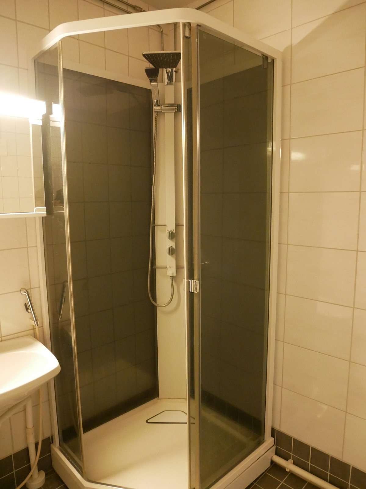 - Kylpyhuone, suihkukaappi, peilikaappi, pesukoneliitäntä, kiinteät valaisimet.