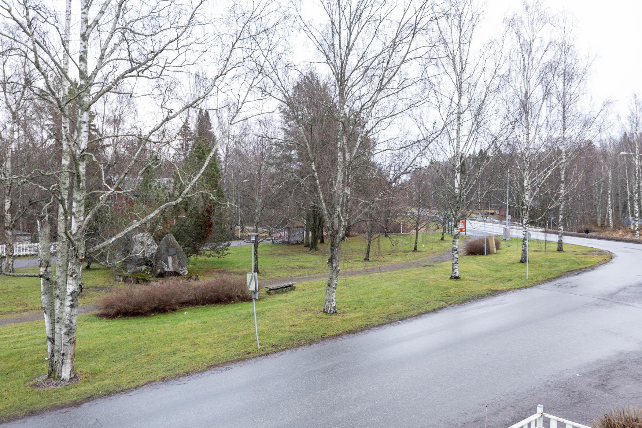 - Parvekkeelta näkymä Haikan puistoon. Itä