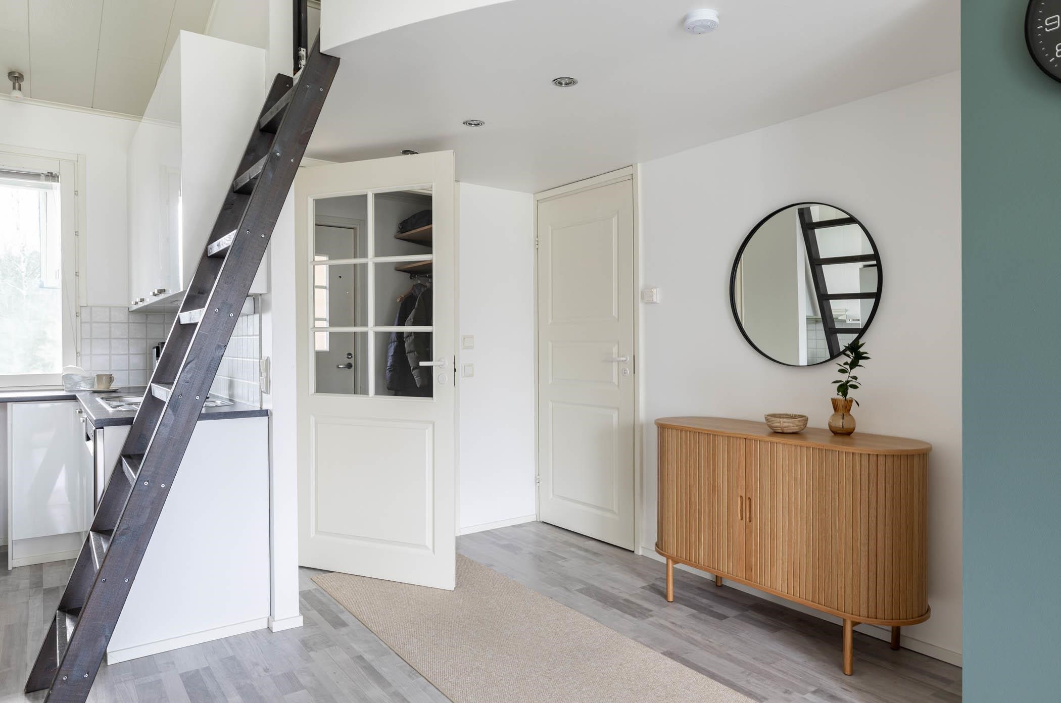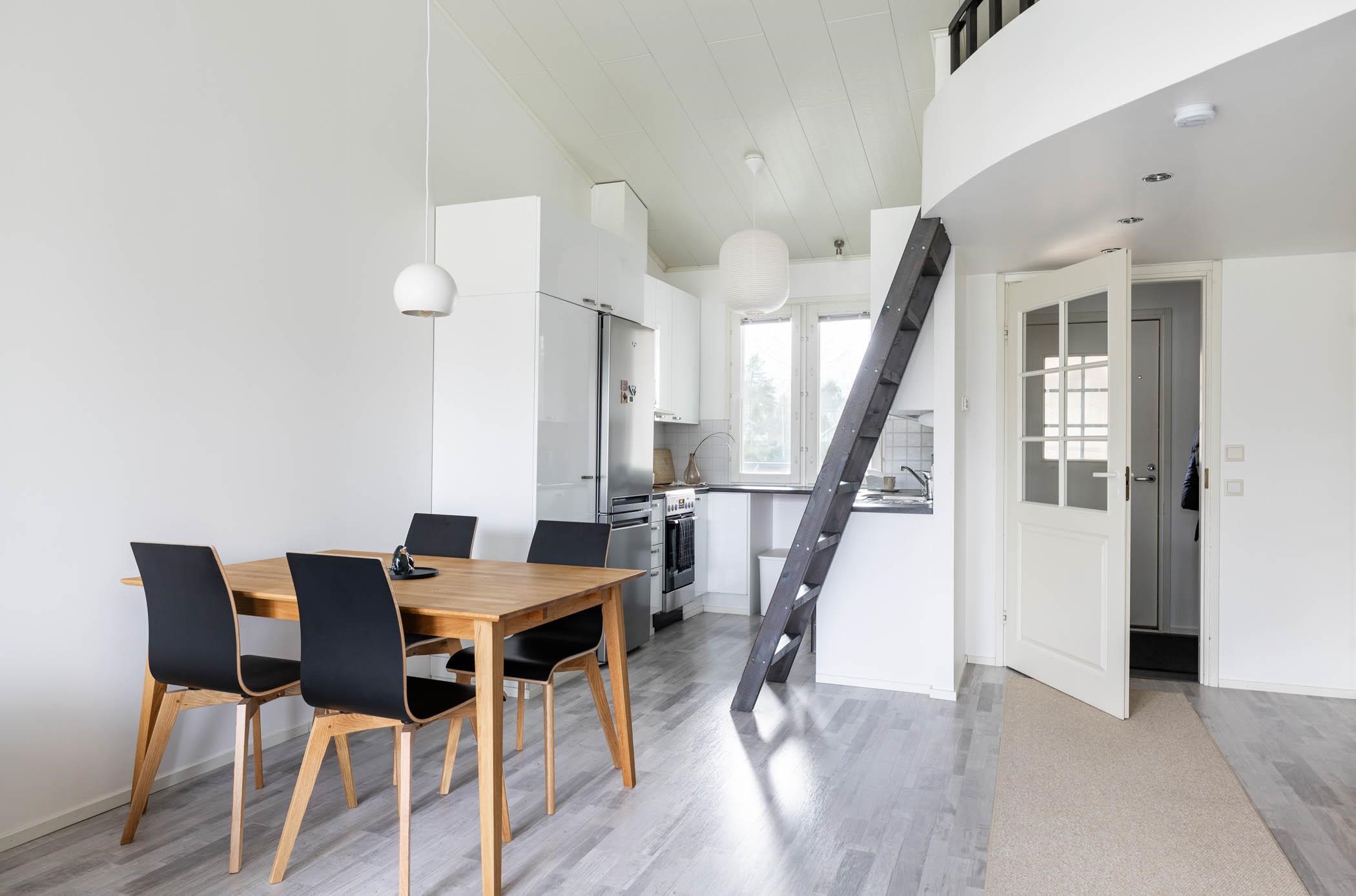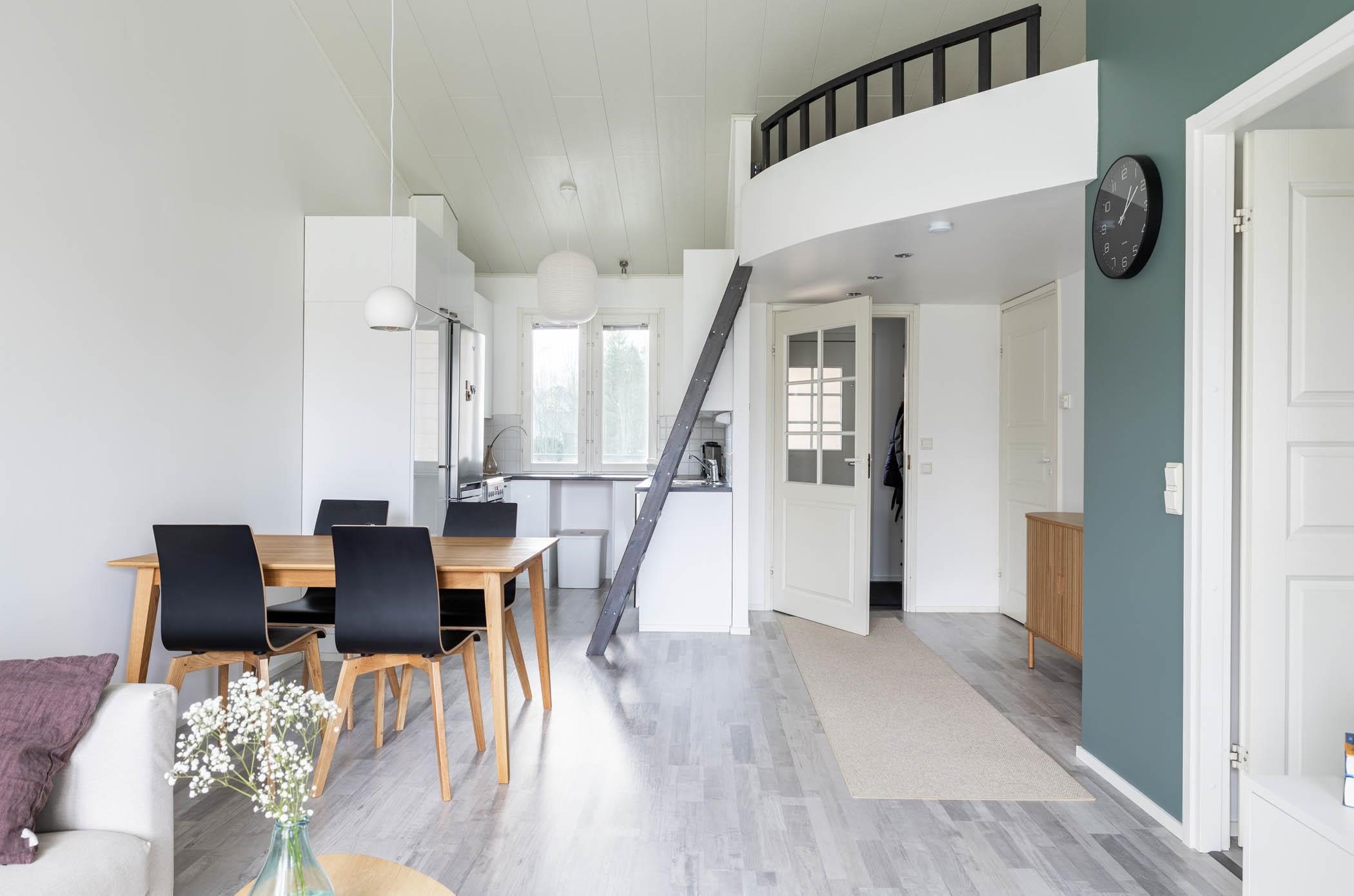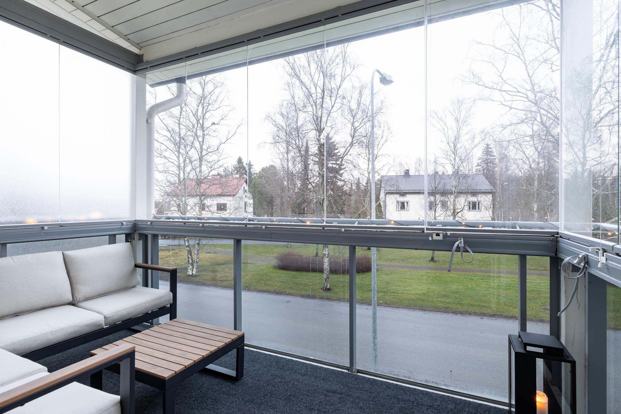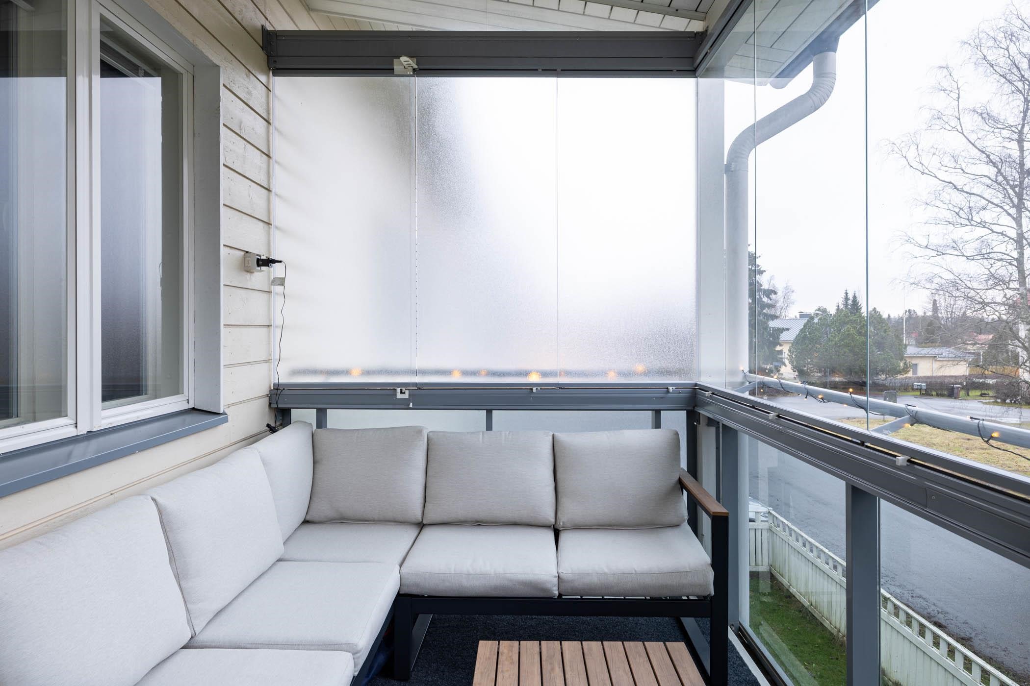 Lisätilaa tarjoaa parvi, joka soveltuu mainiosti esimerkiksi vierasmajoitukseen tai rentoutumisnurkaksi. Lasitettu parveke toimii viihtyisänä lisähuoneena lähes ympäri vuoden.