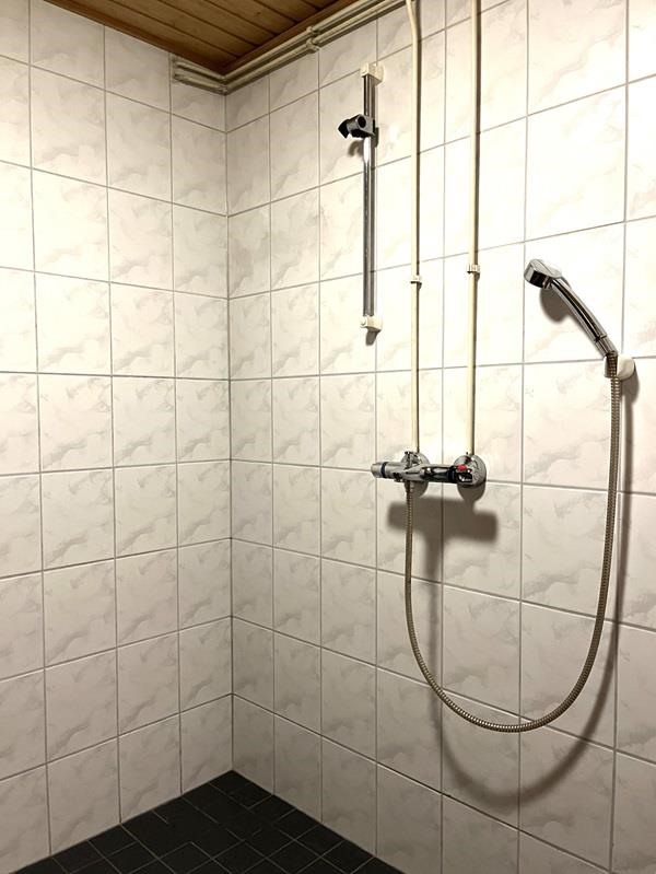 - Saunaosasto on remontoitu 2008. Kylpyhuoneessa on suihku. Saunassa on sähköllä lämpiävä kiuas. Wc-tiloja on kaksi kappaletta. Tilava tekninen tila toimii myös kodinhoitohuoneena. Siellä on kaapistoja, työtasoa kodin vaatehuollolle, iso lavuaari ja hyvät paikat pyykinpesukoneelle ja kuivurille. Kodinhoitohuoneesta on myös käynti ulos katokseen. Kylpyhuoneessa on laatoitus sekä lattiassa että seinissä. Saunassa on laatoitus lattiassa ja seinissä paneeli. Kylpyhuoneessa ja kodinhoitohuoneessa on lattialämmitys sähköllä.