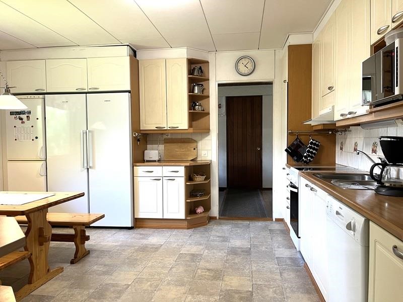 - Tilavassa keittiössä on jääkaappi, pakastekaappi, keraaminen sähköliesi, liesituuletin, astianpesukone ja todella mukavasti työtasoa ja kaapistoja.