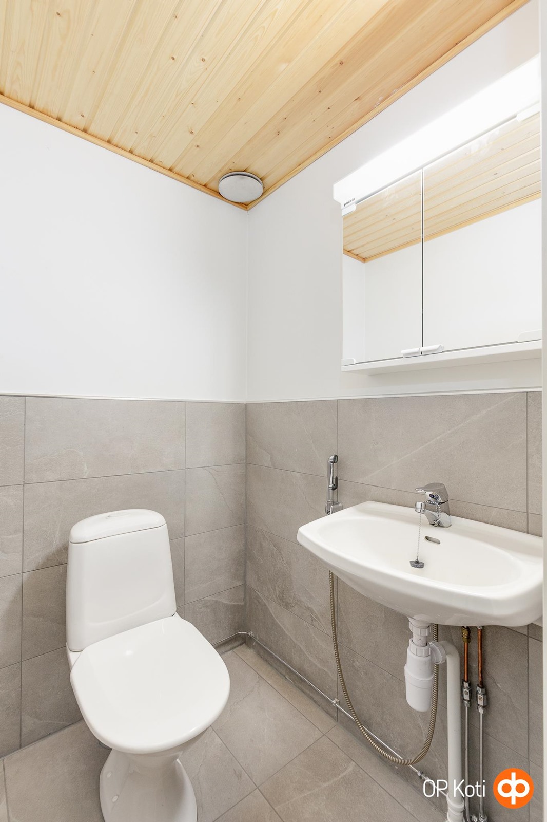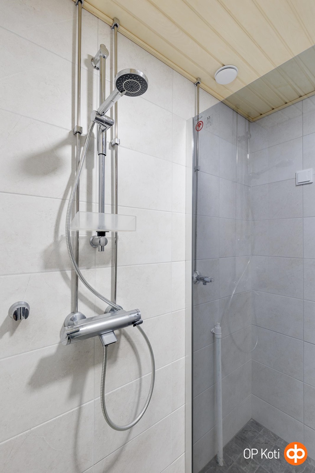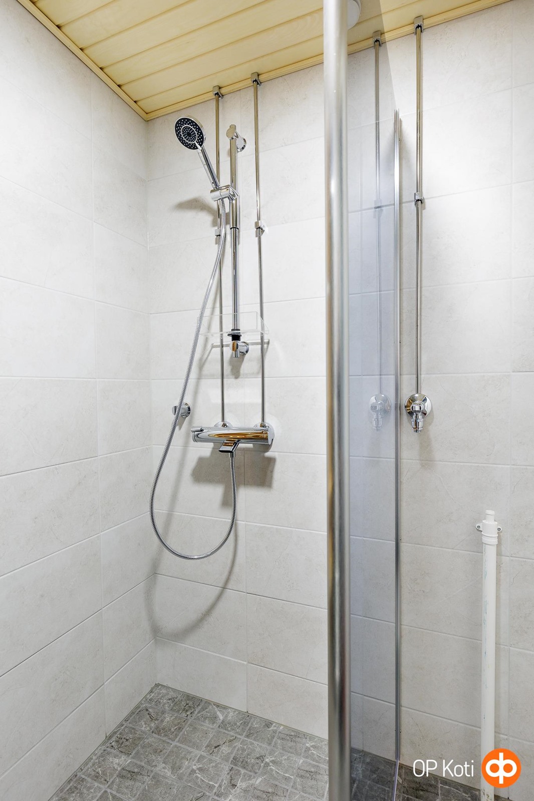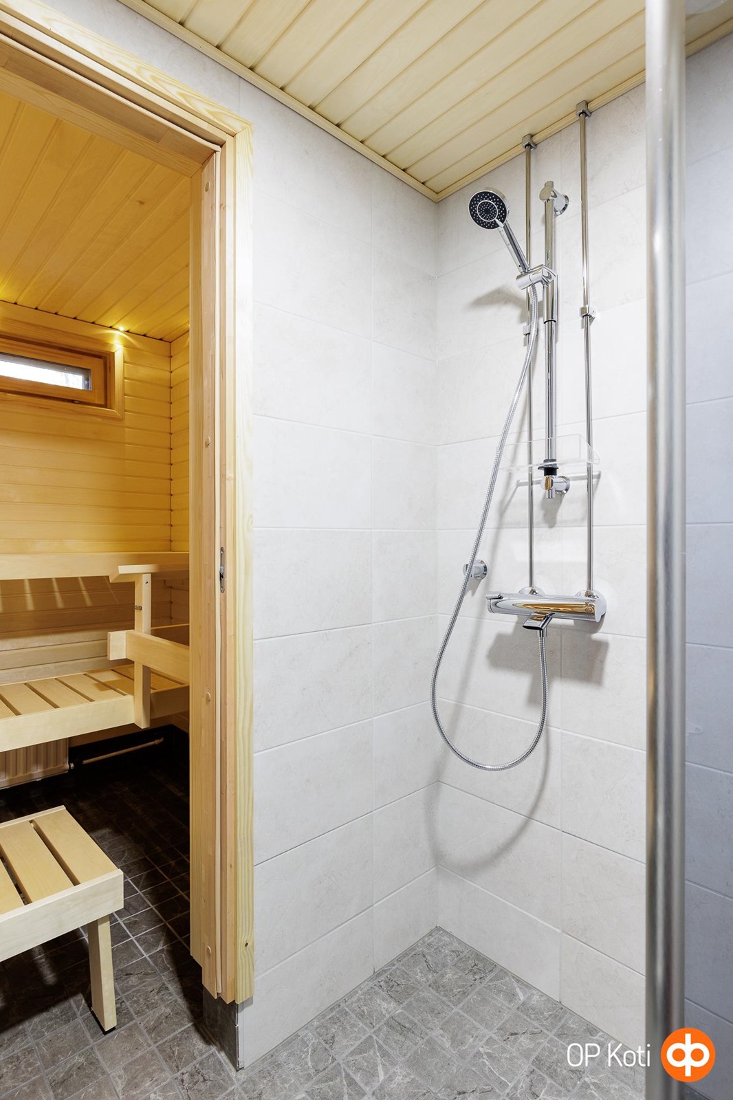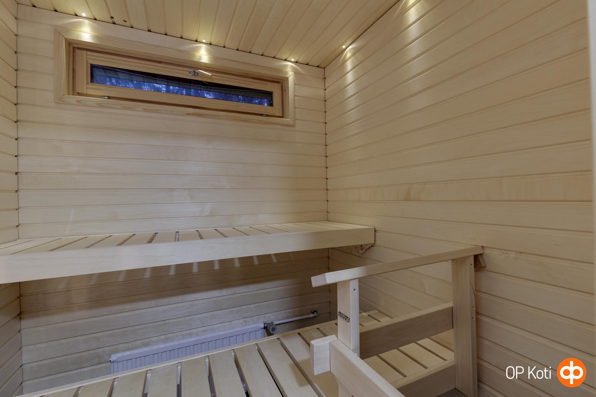- Sauna, sähkökiuas, kylpyhuone, erillinen wc, suihku, suihkuseinä, peilikaappi, pesukoneliitäntä, lattialämmitys, kiinteät valaisimet.