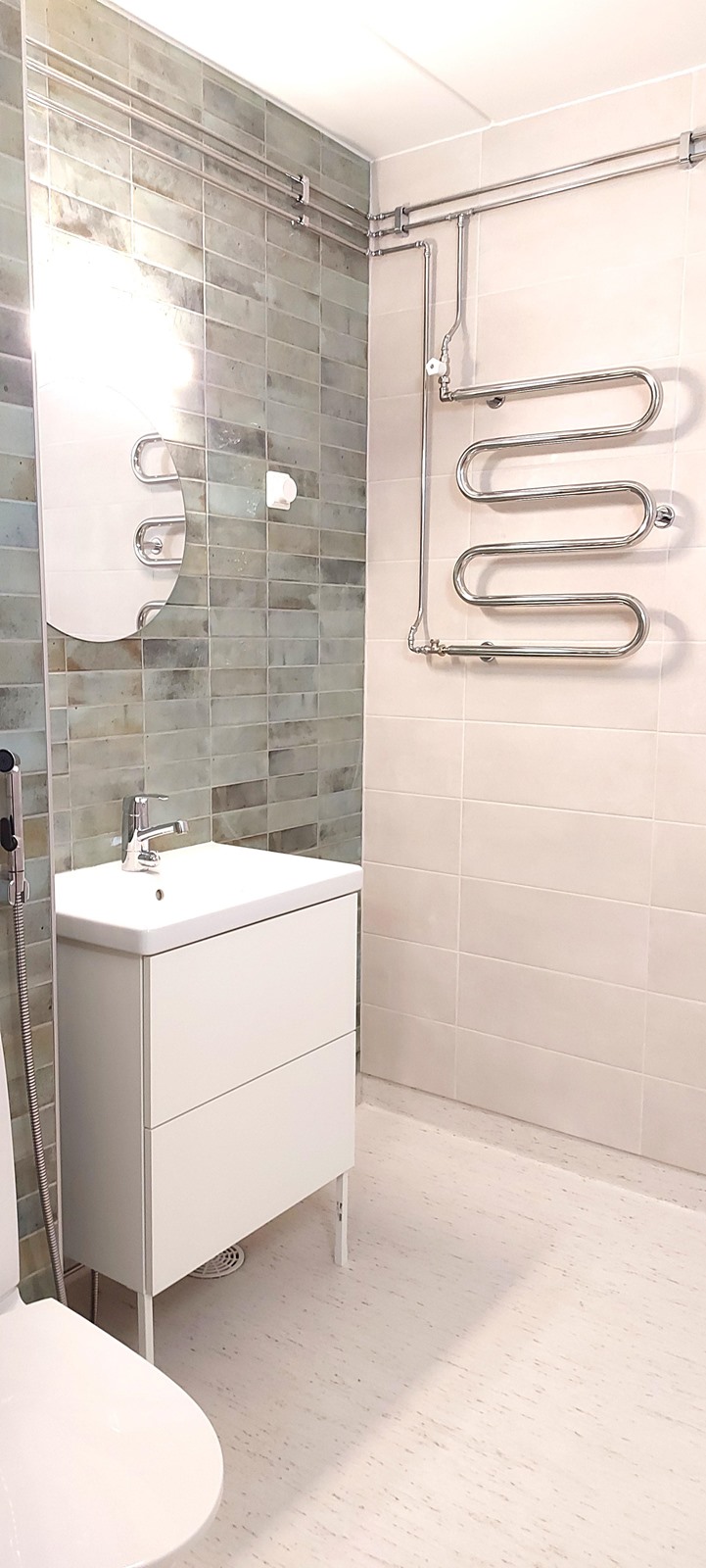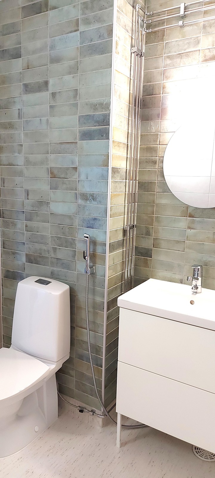 - Suihku, peilit, pesukoneliitäntä.