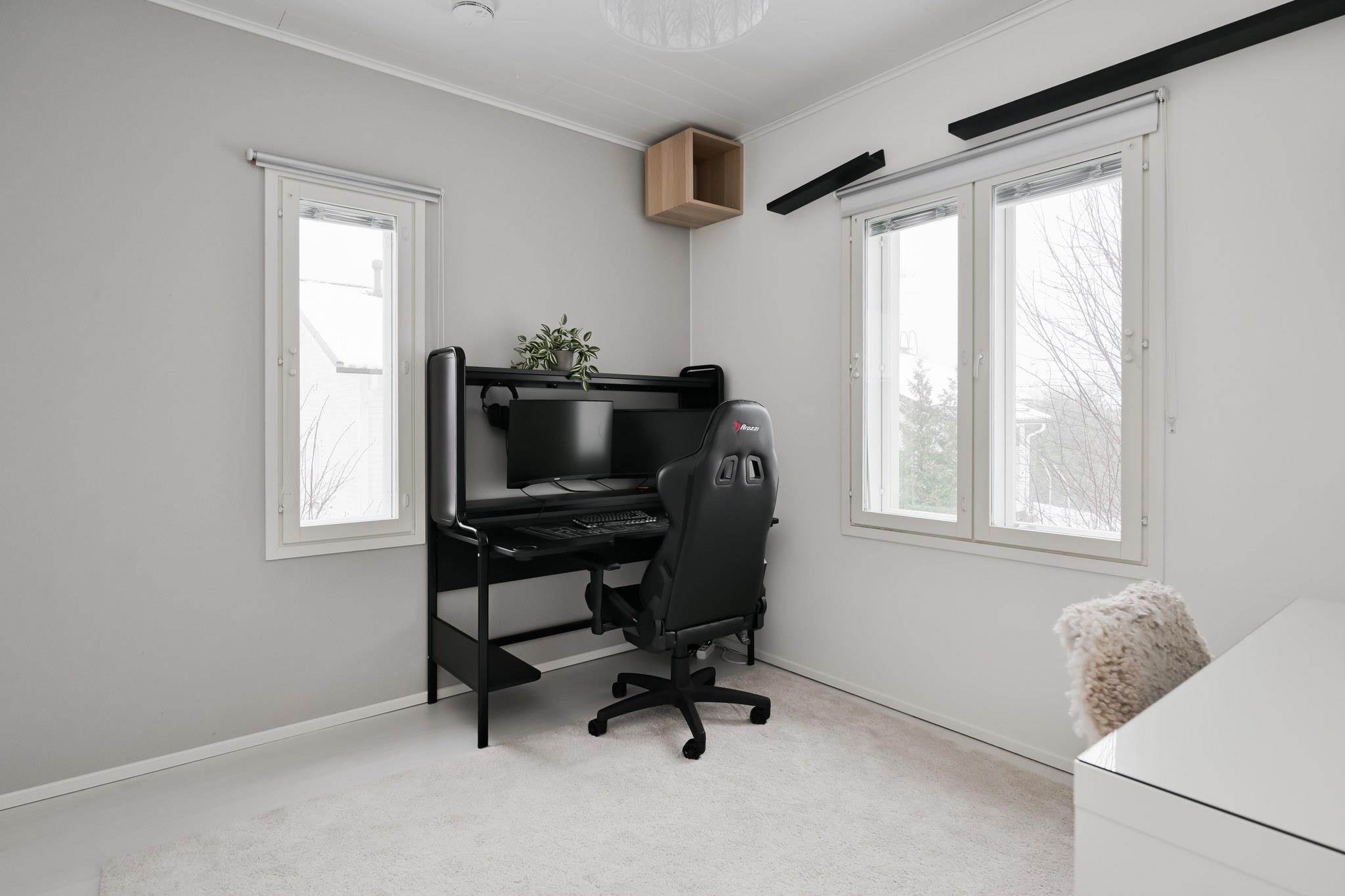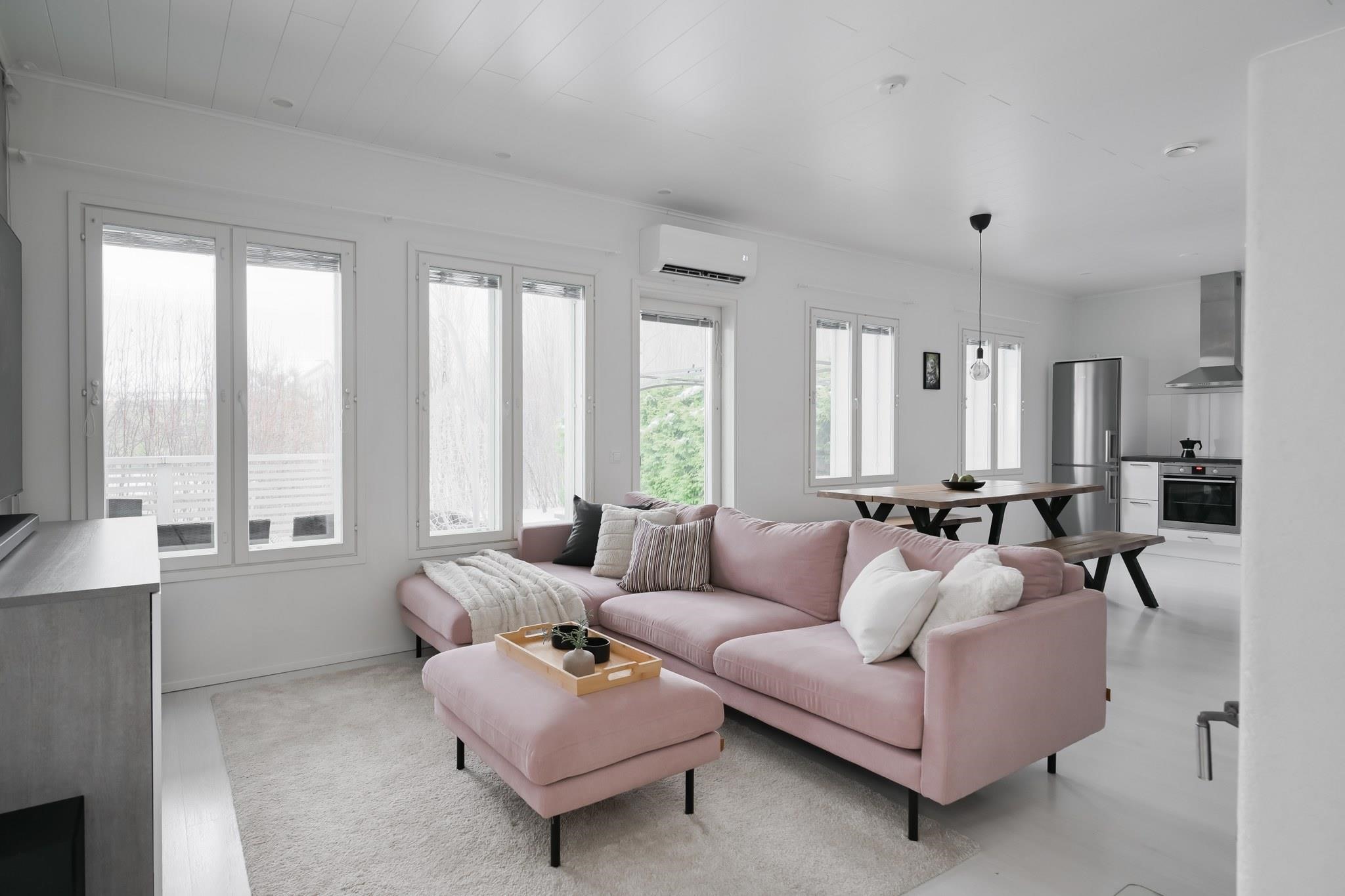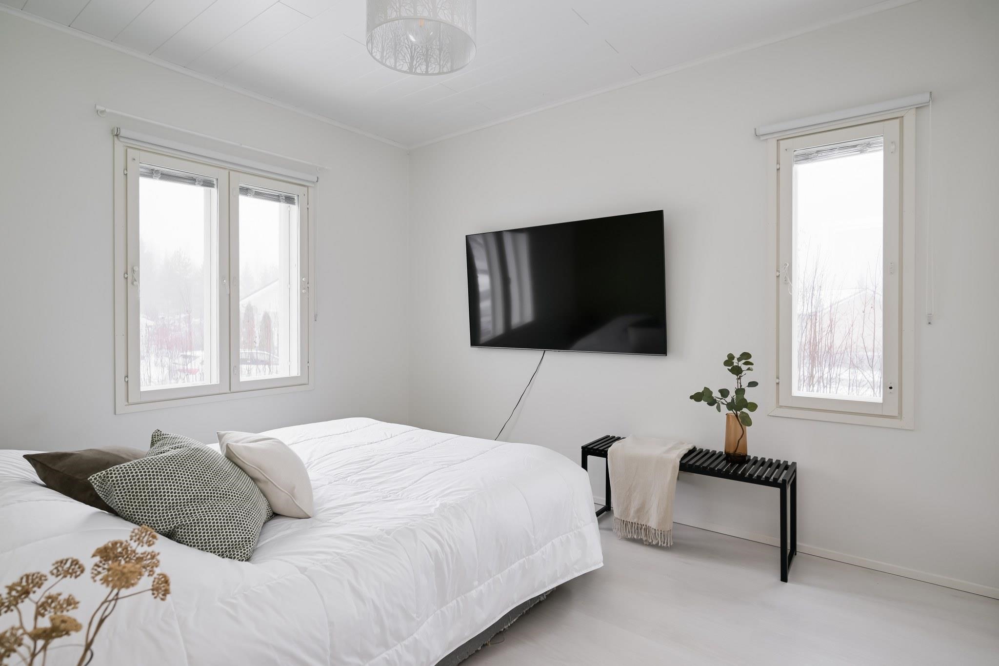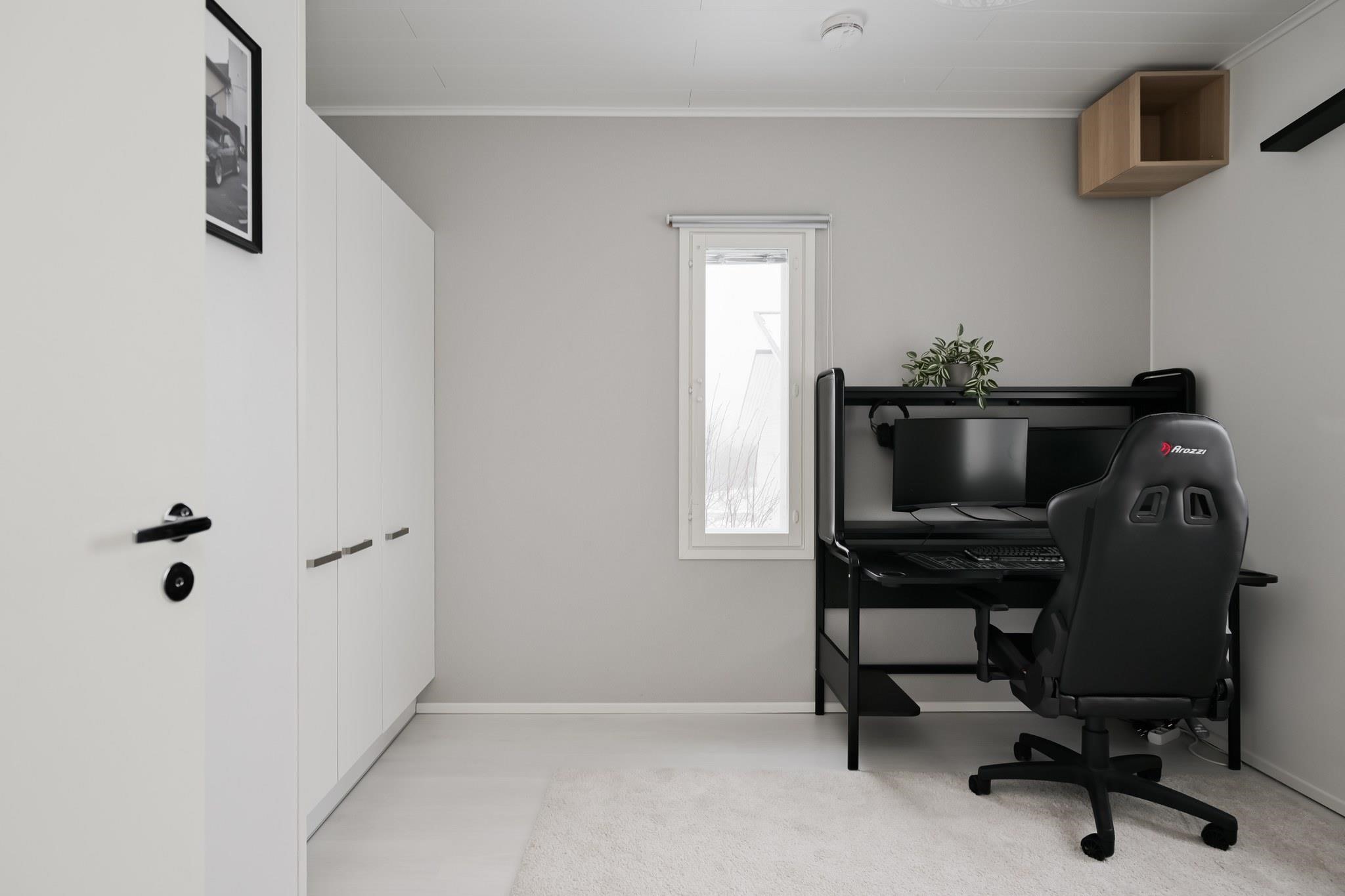 Tässä kodissa on kolme makuuhuonetta, valoisa olohuone, hyvin varusteltu keittiö ja kodinhoitohuone, joka tekee arjesta vaivatonta. Lattiat ovat laminaattia, ja keittiön sekä kylpyhuoneen pinnat ovat helppohoitoista laattaa. Varusteluun kuuluu induktioliesi, erillisuuni, astianpesukone ja jääkaappipakastin. Tunnelmaa luo varaava takka, ja ilmavesilämpöpumppu tuo energiatehokkuutta asumiseen. Koneellinen ilmanvaihto lämmön talteenotolla pitää sisäilman raikkaana.